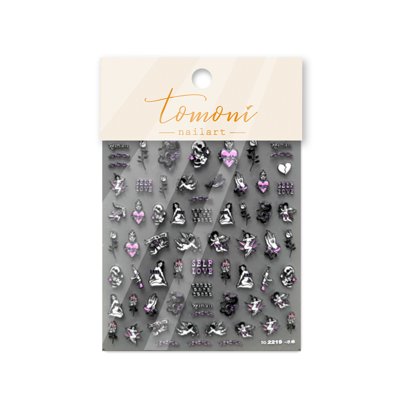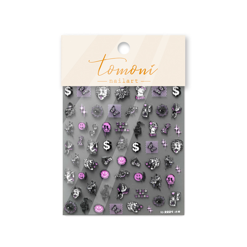 Tomoni 양각 네일 아트 스티커 뜨거운 일본 복고풍 5D 네일 스티커 재미있는 요소 네일 아트 보석 도매