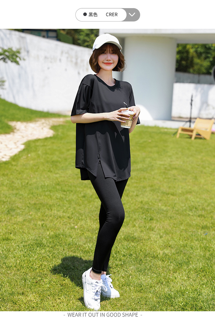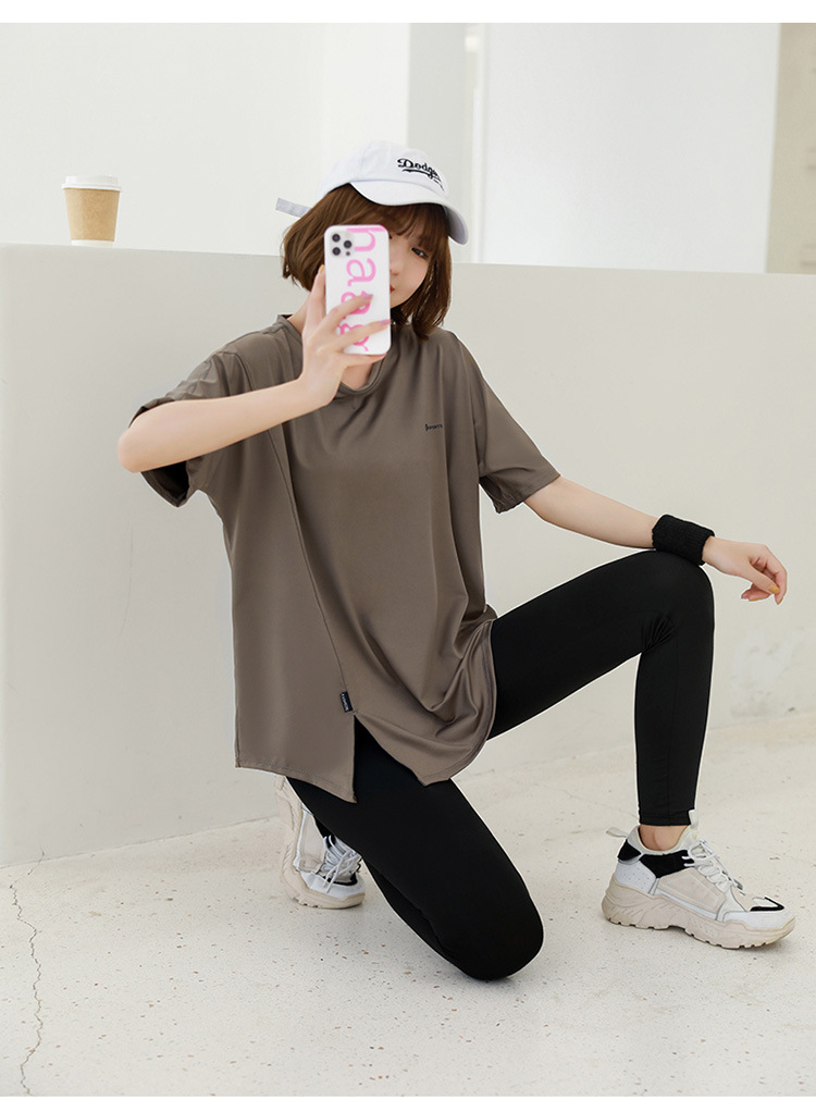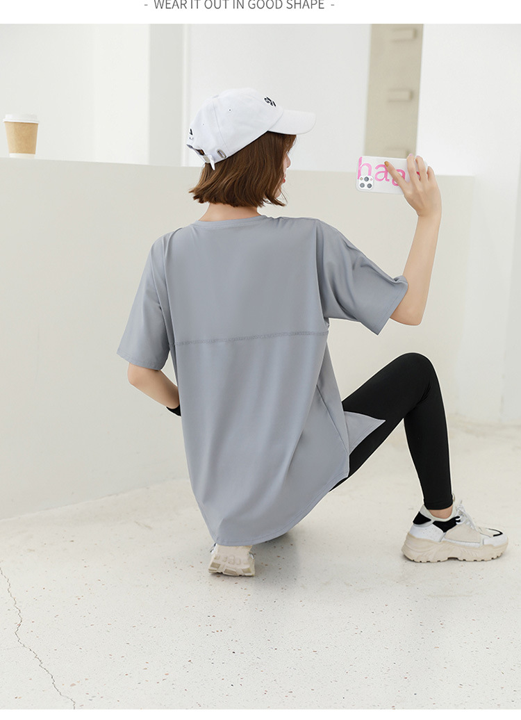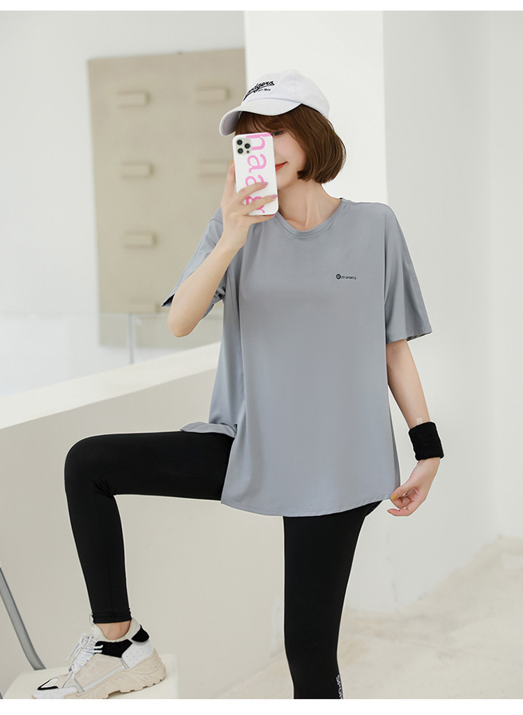 여성을위한 대형 요가 의류 여름 반팔 지방 mm 100kg 여성을위한 단색 중간 길이 스포츠 피트니스 의류스토어 가기
