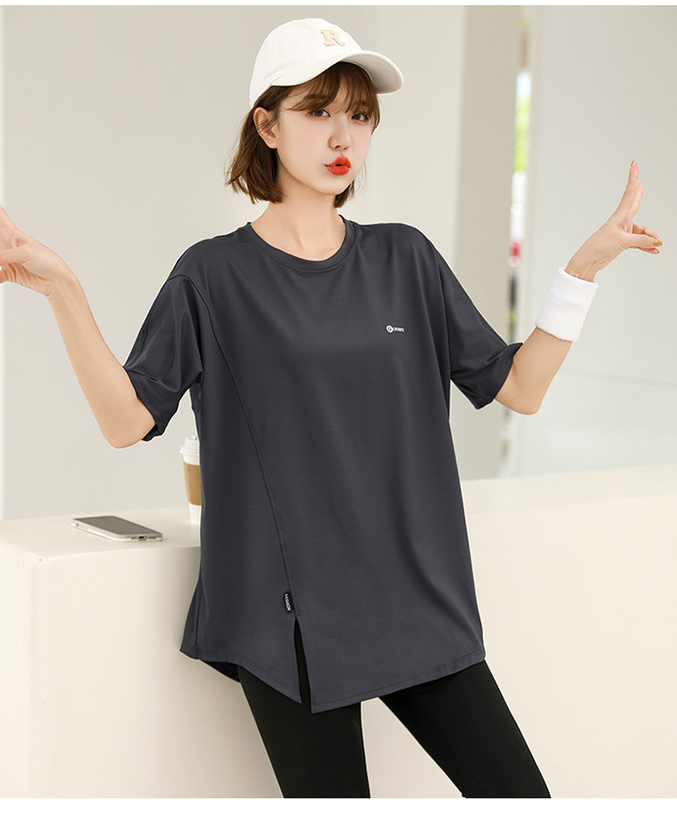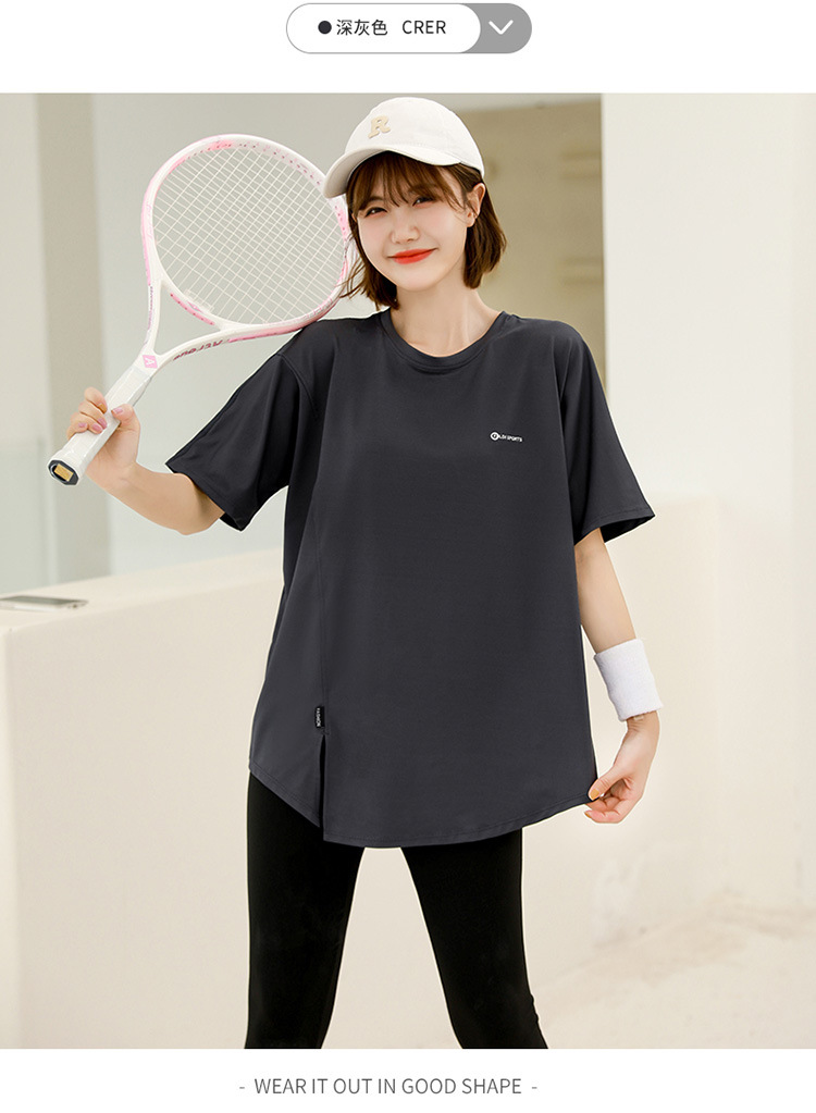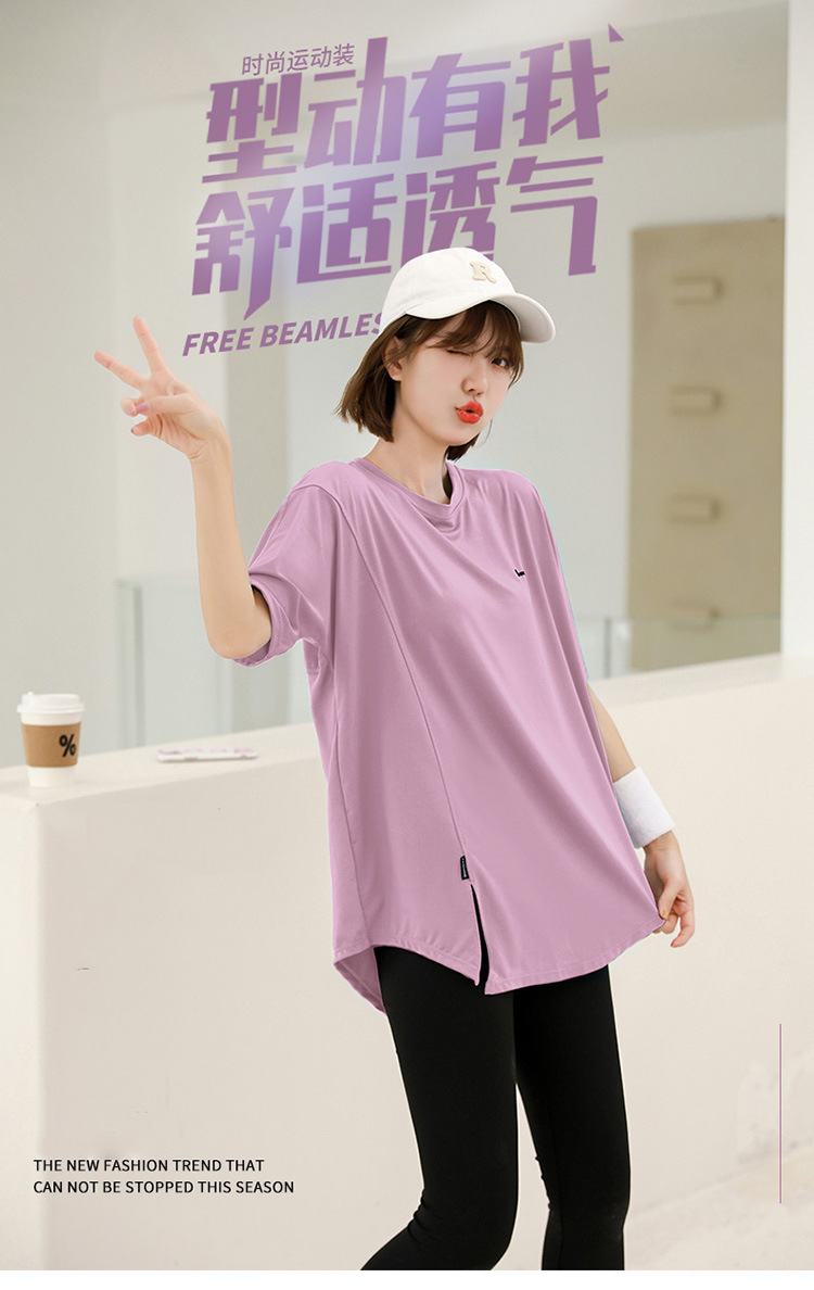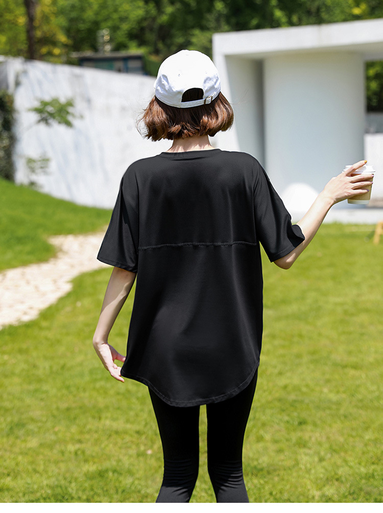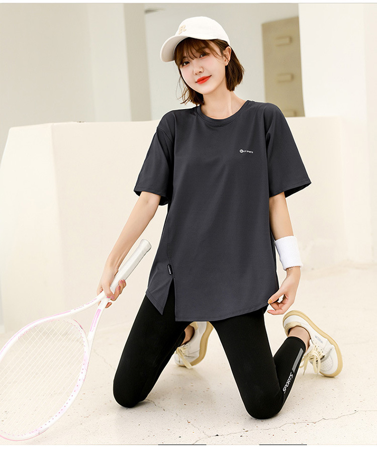 여성을위한 대형 요가 의류 여름 반팔 지방 mm 100kg 여성을위한 단색 중간 길이 스포츠 피트니스 의류스토어 가기