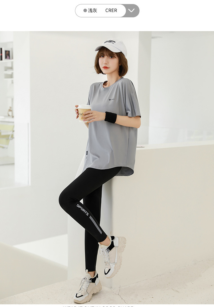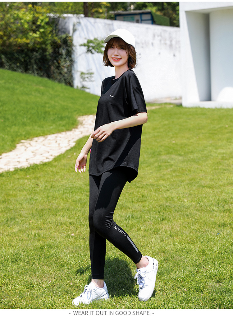 여성을위한 대형 요가 의류 여름 반팔 지방 mm 100kg 여성을위한 단색 중간 길이 스포츠 피트니스 의류