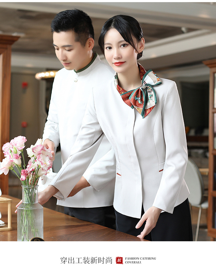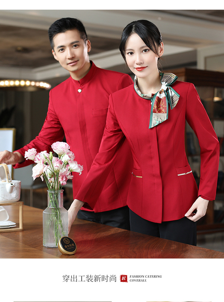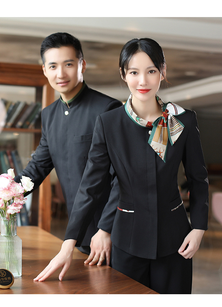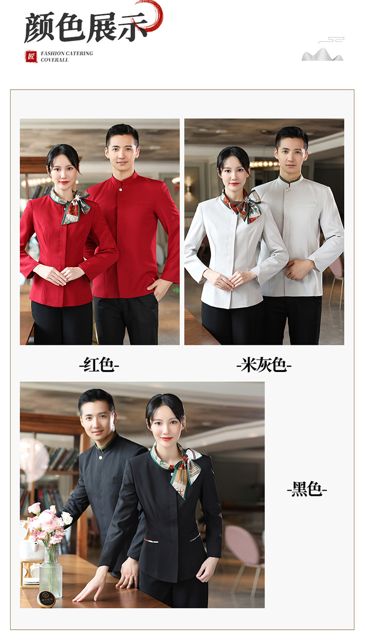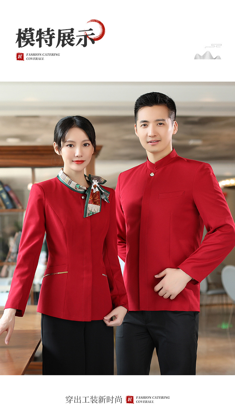 호텔 참석자 전체 긴 소매 여성용 중국 레스토랑 핫팟 호텔 프론트 오피스 작업복 통기성 자수 캐릭터 인쇄스토어 가기