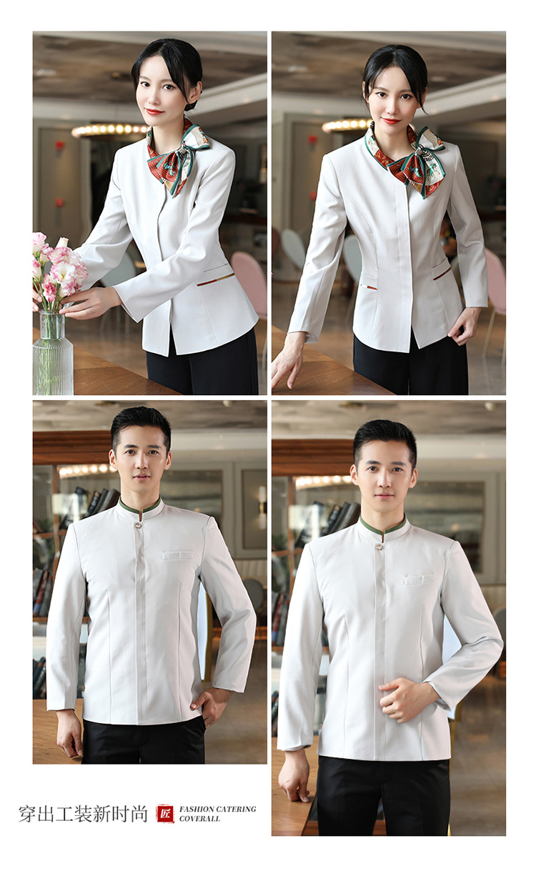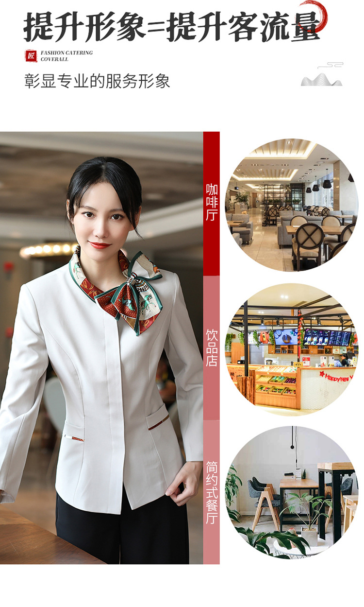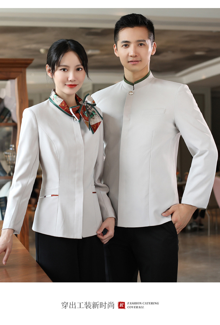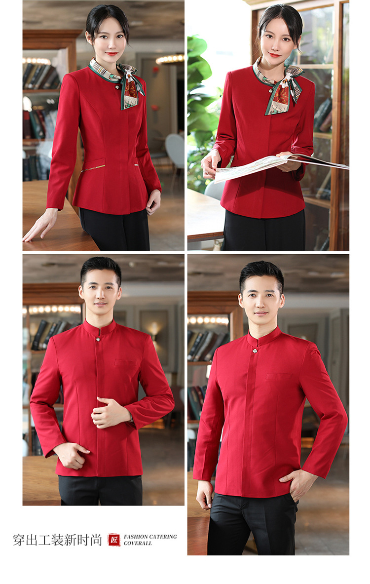 호텔 참석자 전체 긴 소매 여성용 중국 레스토랑 핫팟 호텔 프론트 오피스 작업복 통기성 자수 캐릭터 인쇄스토어 가기