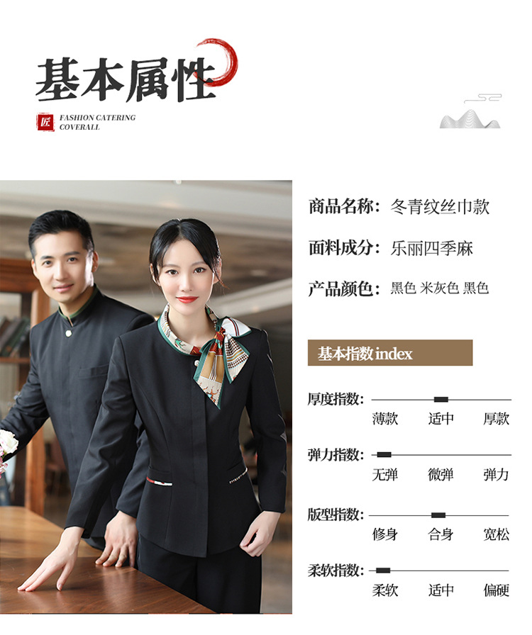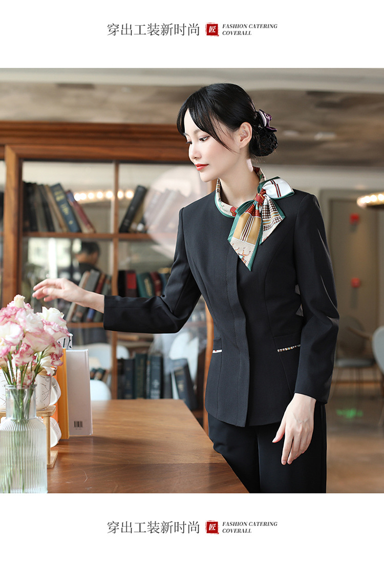호텔 참석자 전체 긴 소매 여성용 중국 레스토랑 핫팟 호텔 프론트 오피스 작업복 통기성 자수 캐릭터 인쇄