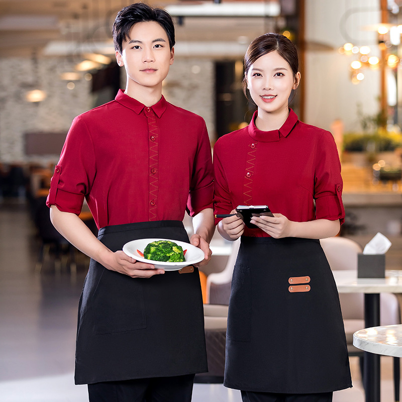레스토랑 웨이터 작업복 가을과 겨울 옷 냄비 레스토랑 레스토랑 찻집 중국 스타일 호텔 취사 긴 소매 여성스토어 가기