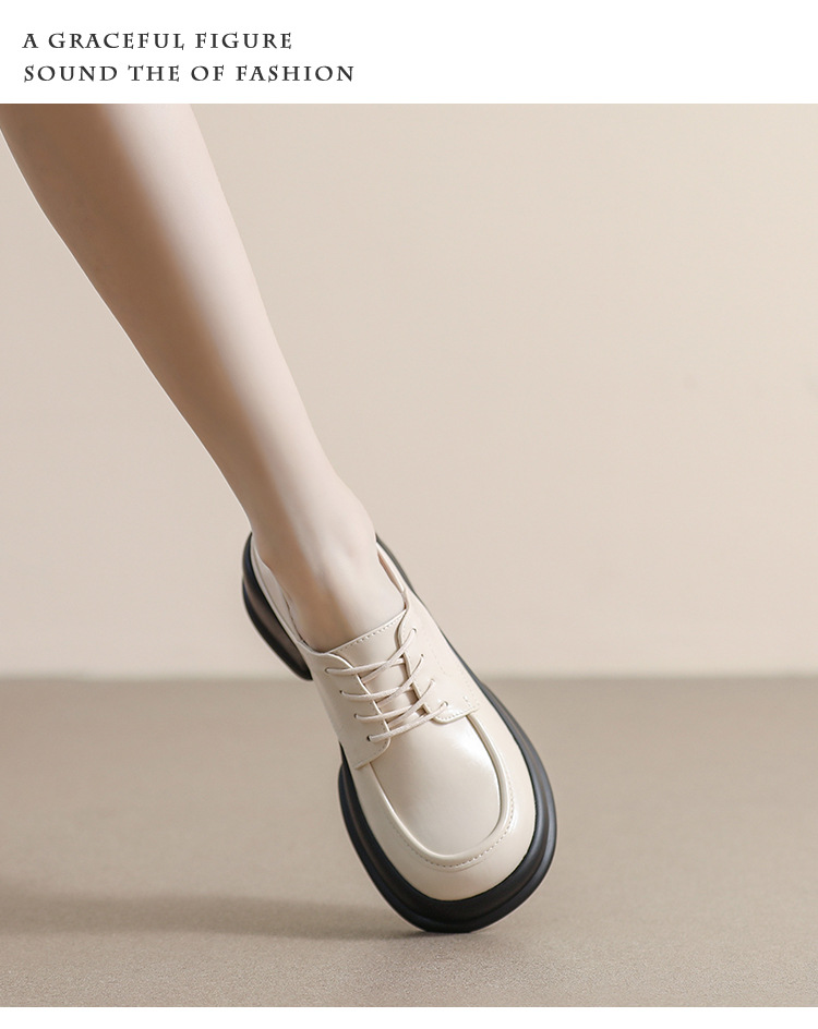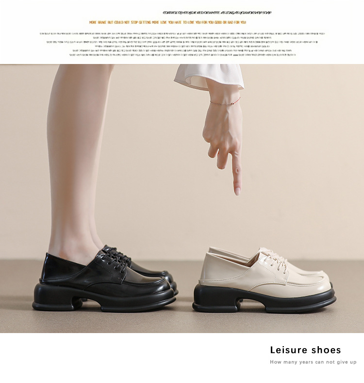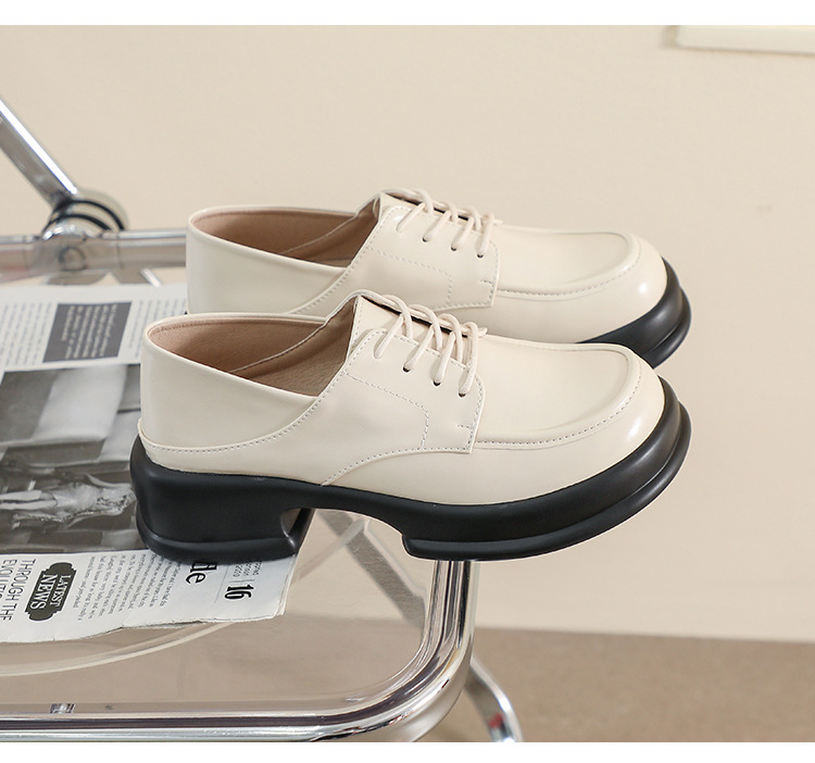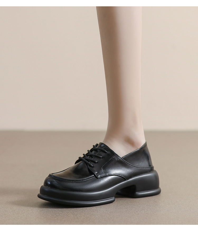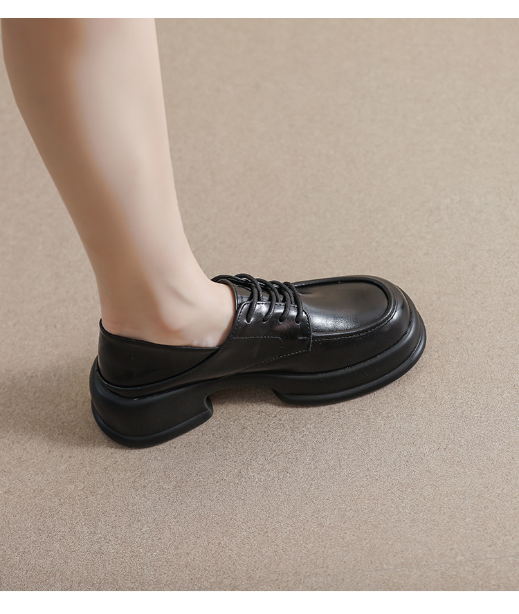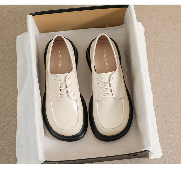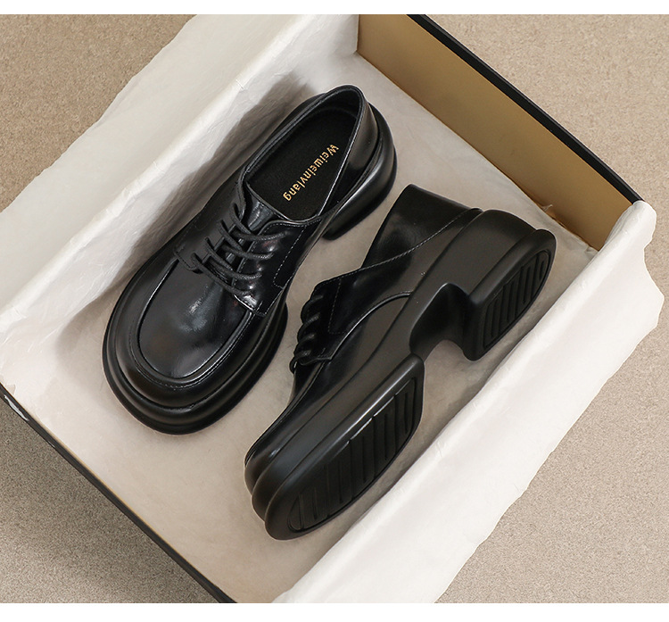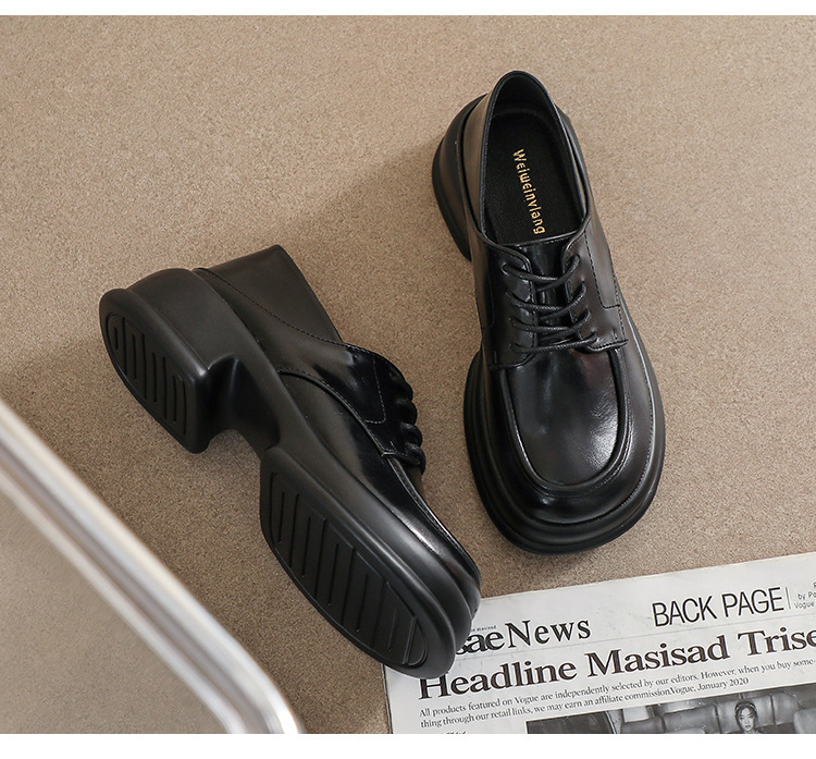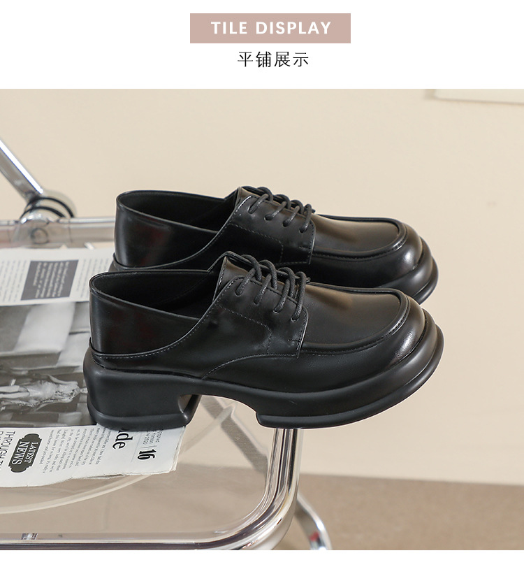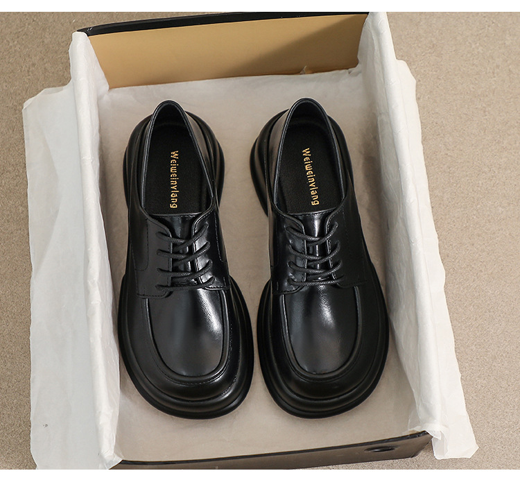 Weiwei Girl 23-2 두꺼운 밑창 로퍼 여성용 봄과 가을 레이스 업 싱글 레이어 신발 두꺼운 굽 복고풍 영국 스타일 가죽 신발 여성