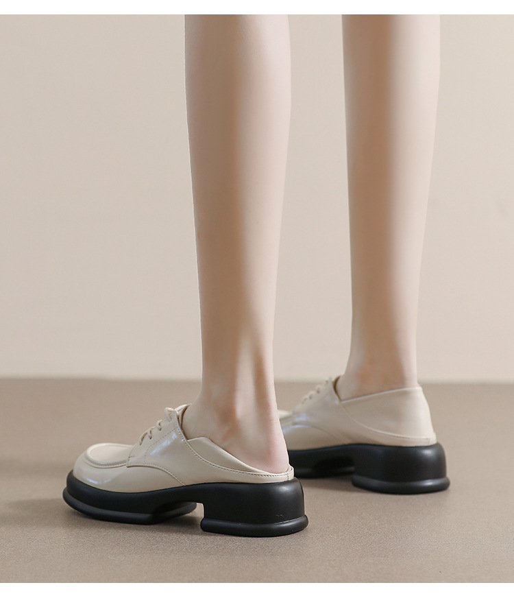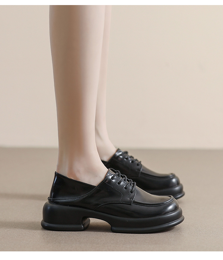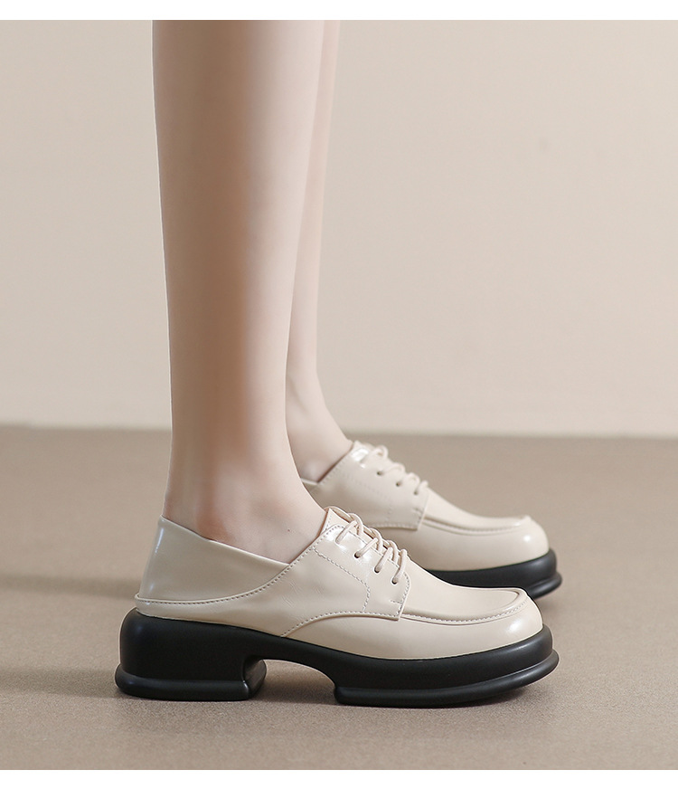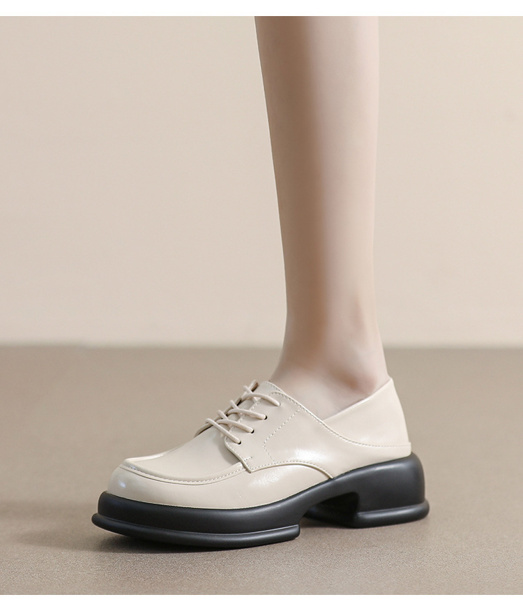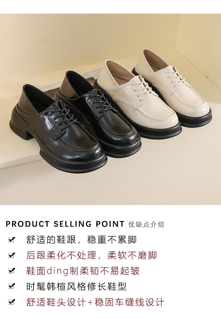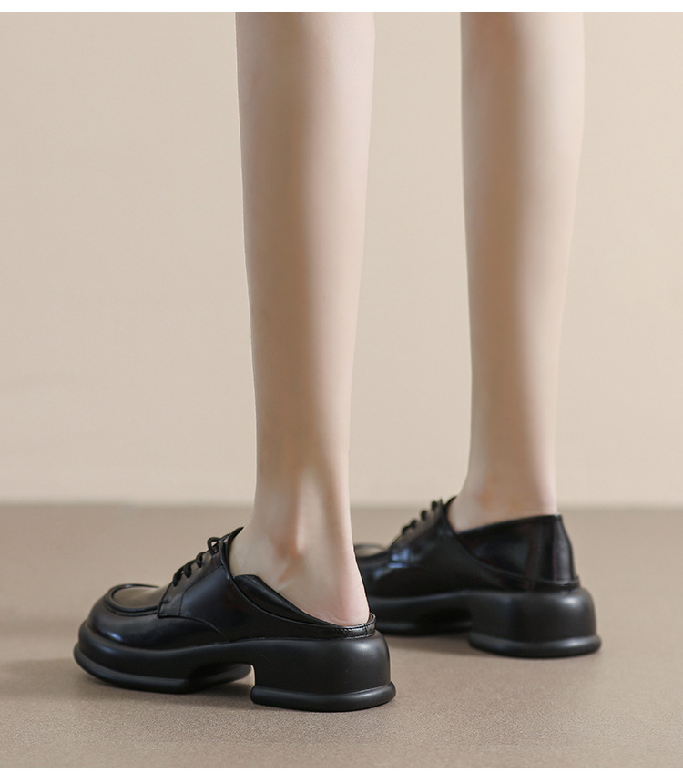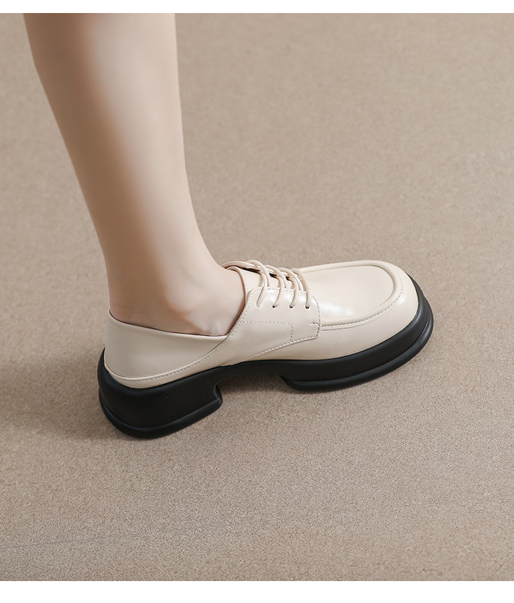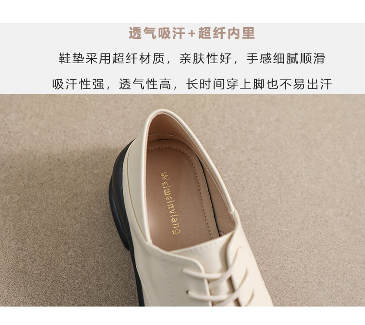 Weiwei Girl 23-2 두꺼운 밑창 로퍼 여성용 봄과 가을 레이스 업 싱글 레이어 신발 두꺼운 굽 복고풍 영국 스타일 가죽 신발 여성