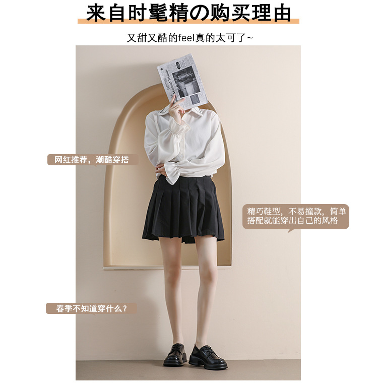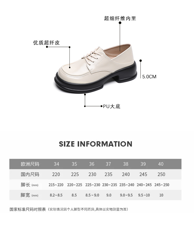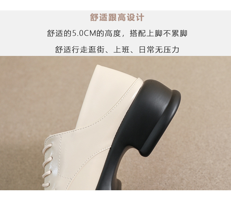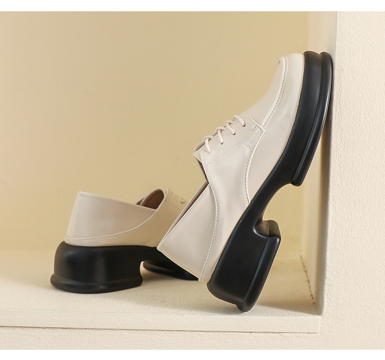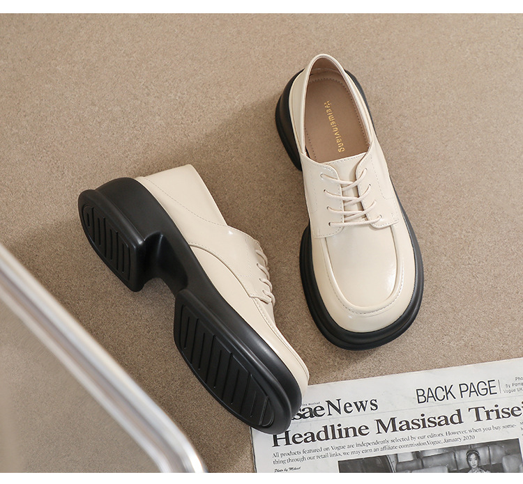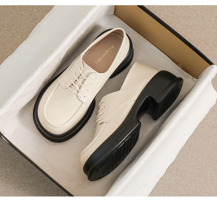 Weiwei Girl 23-2 두꺼운 밑창 로퍼 여성용 봄과 가을 레이스 업 싱글 레이어 신발 두꺼운 굽 복고풍 영국 스타일 가죽 신발 여성스토어 가기