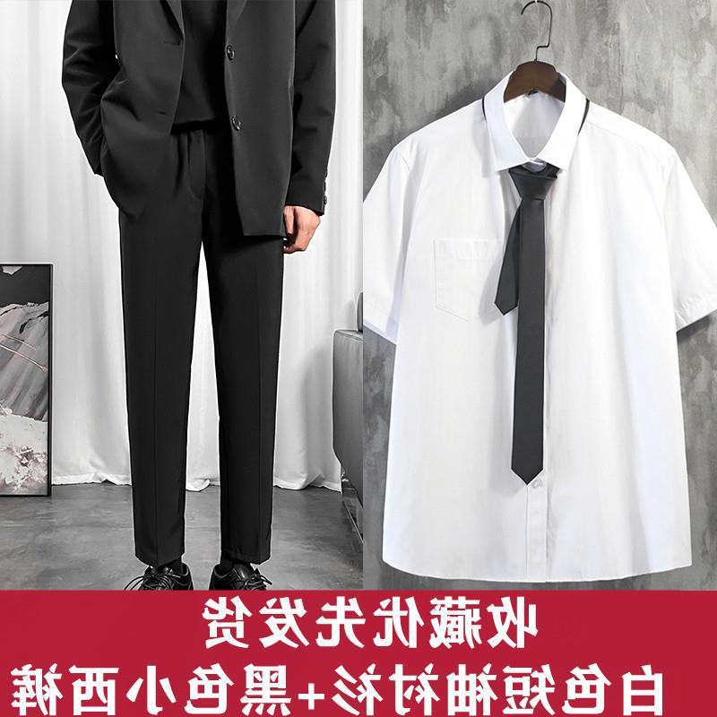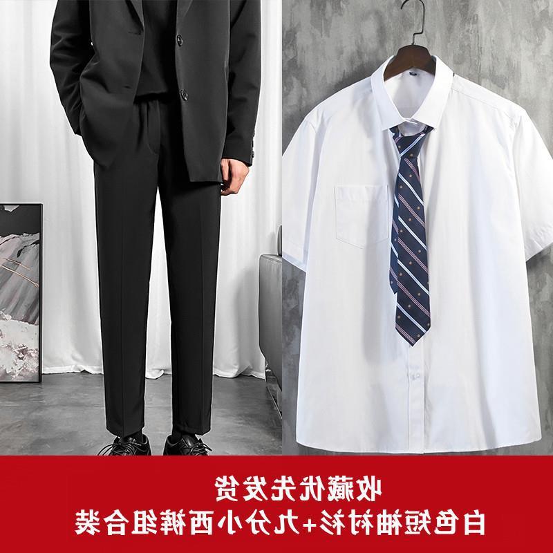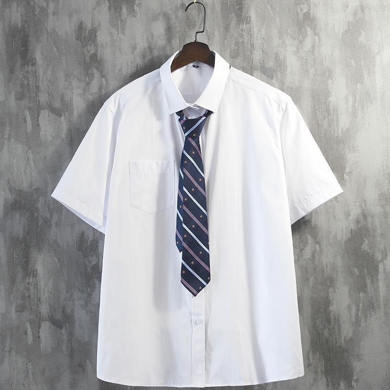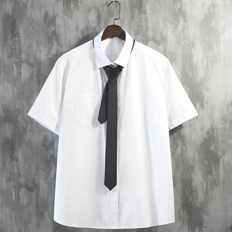 흰색 셔츠 남자의 짧은 소매 여름 얇은 캐주얼 흰색 셔츠 넥타이 대학 스타일 플러스 사이즈 반소매 학생 패션 탑