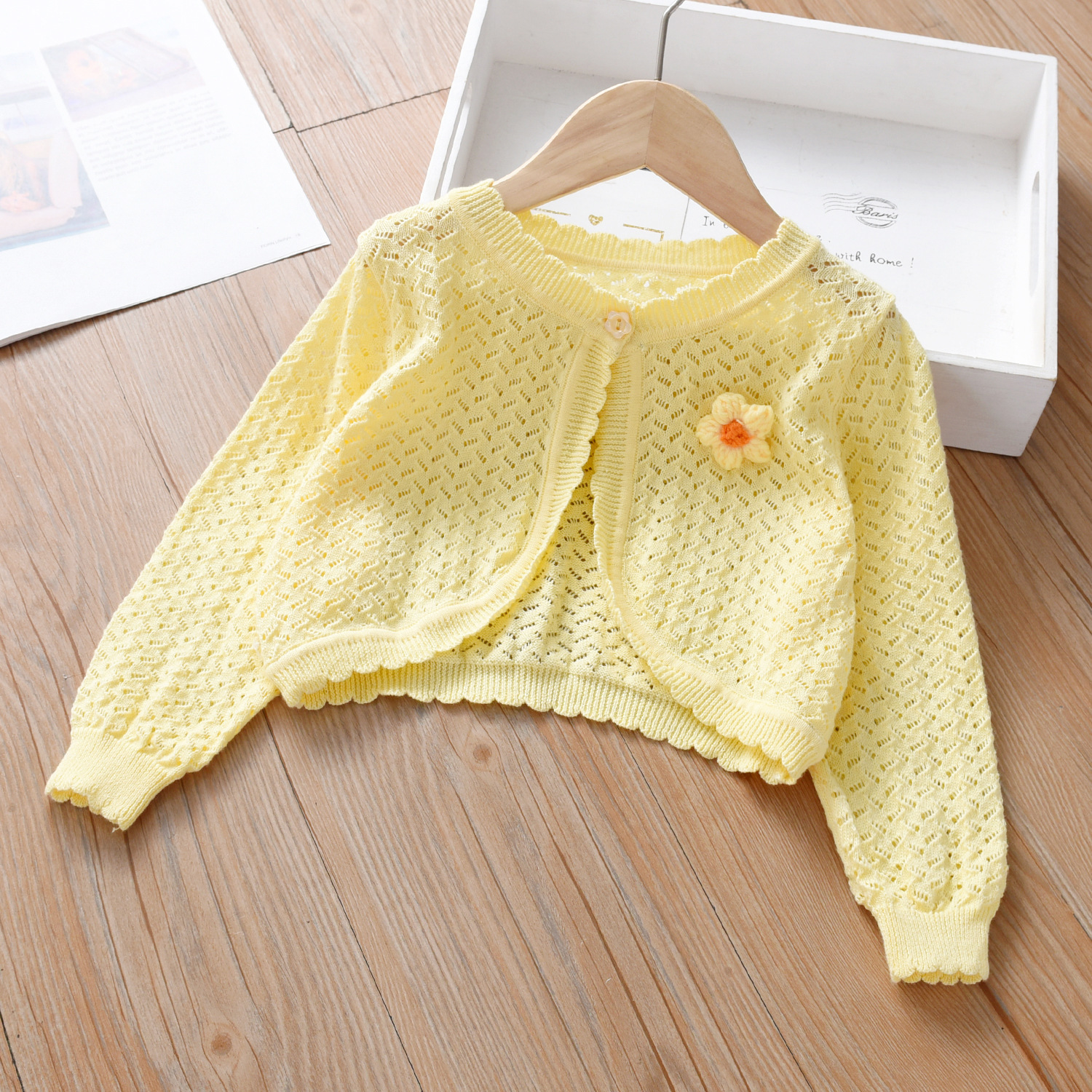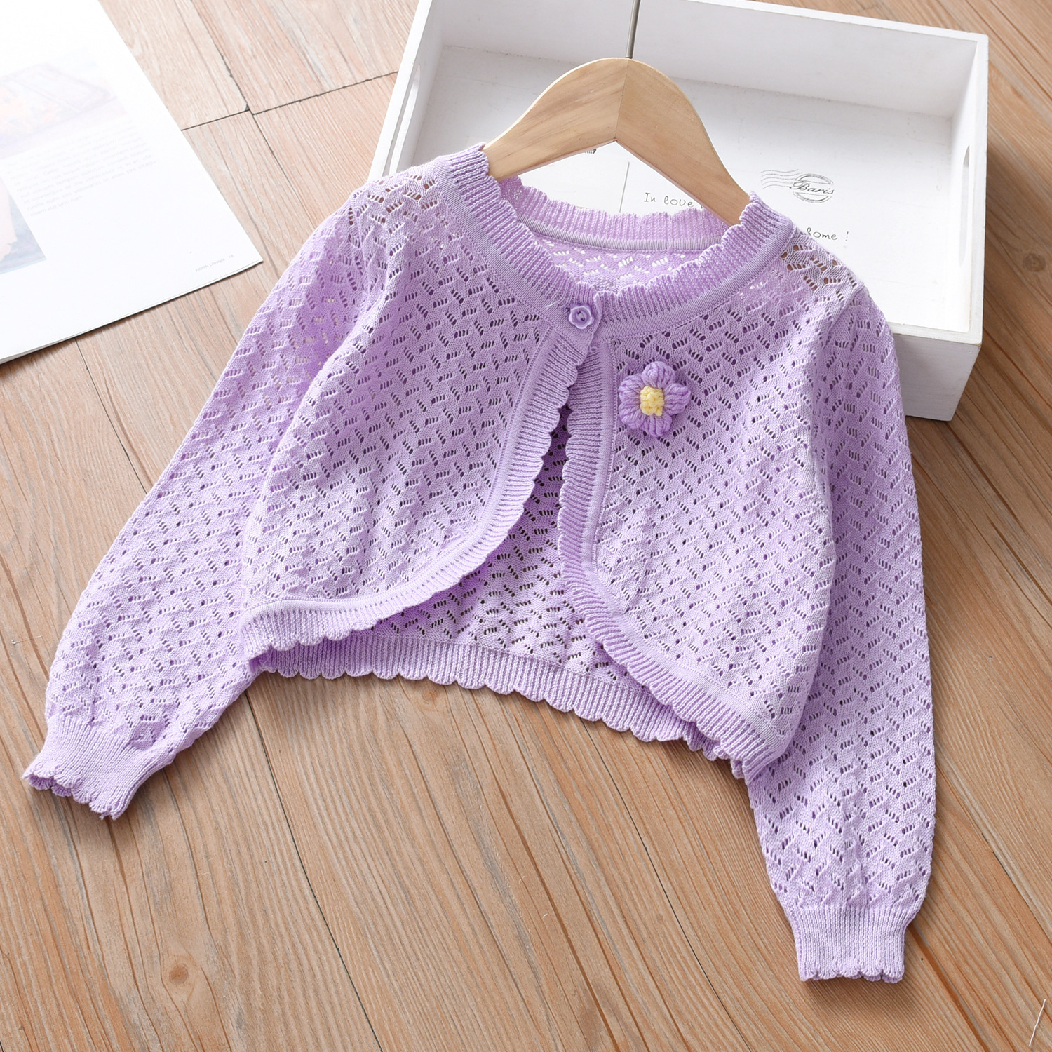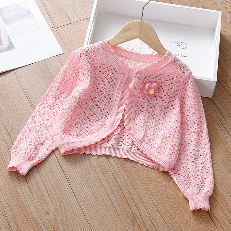 여아 니트 가디건 2022 큰 어린이를위한 새로운 아동용 긴팔 스몰 숄 짧은 스웨터 봄과 가을 서양식 겉옷