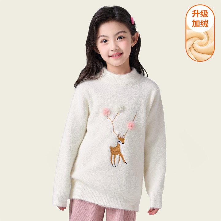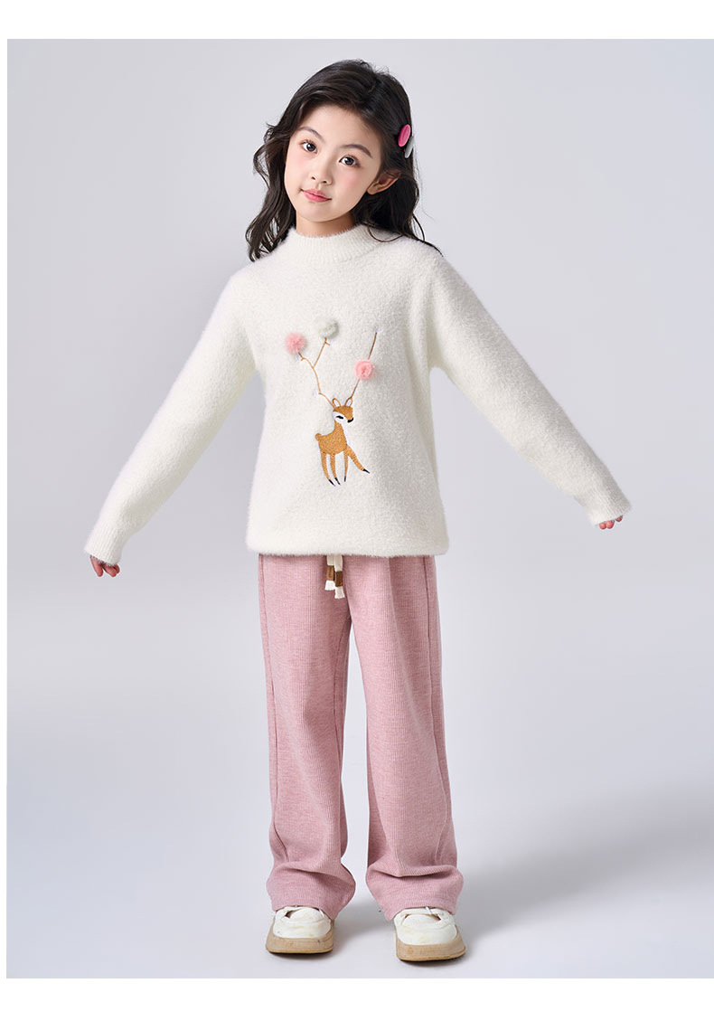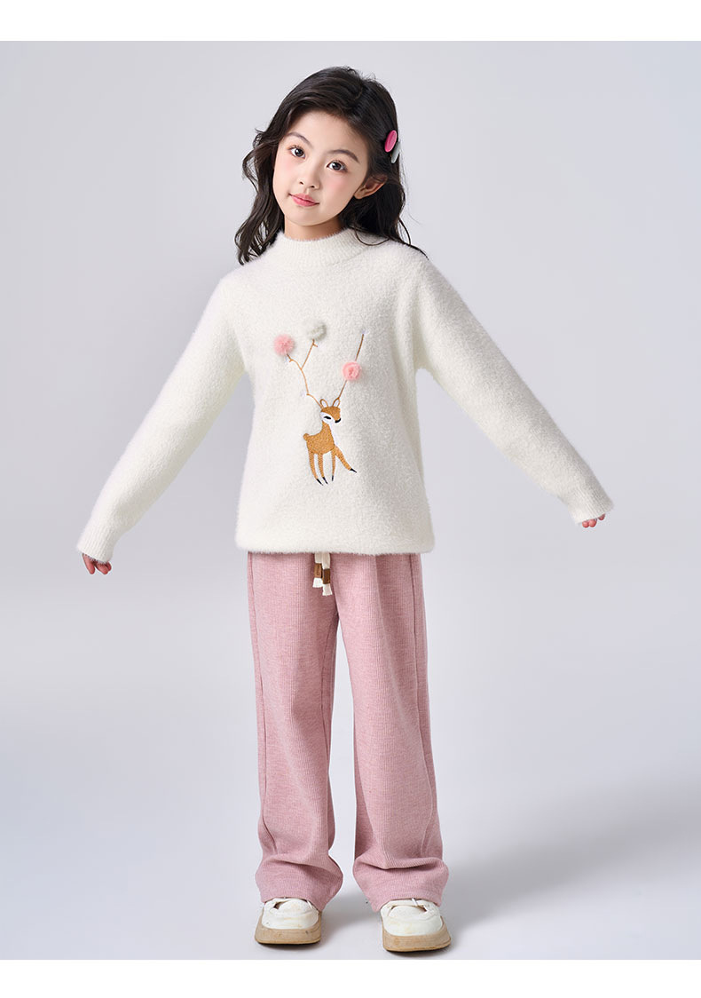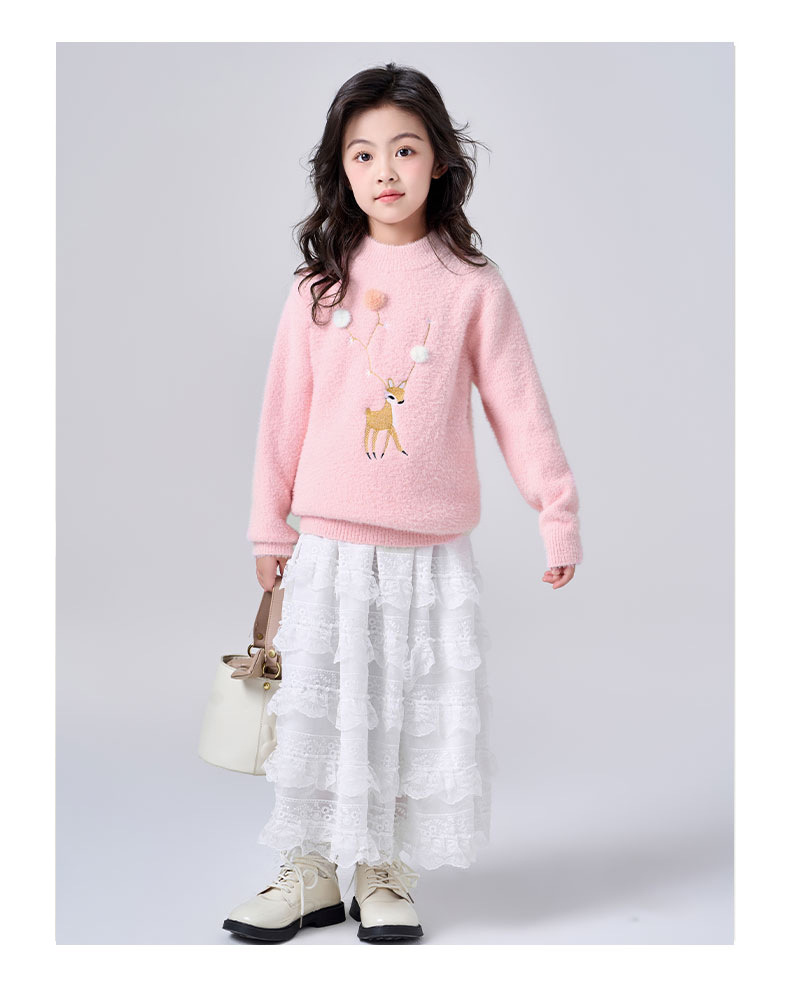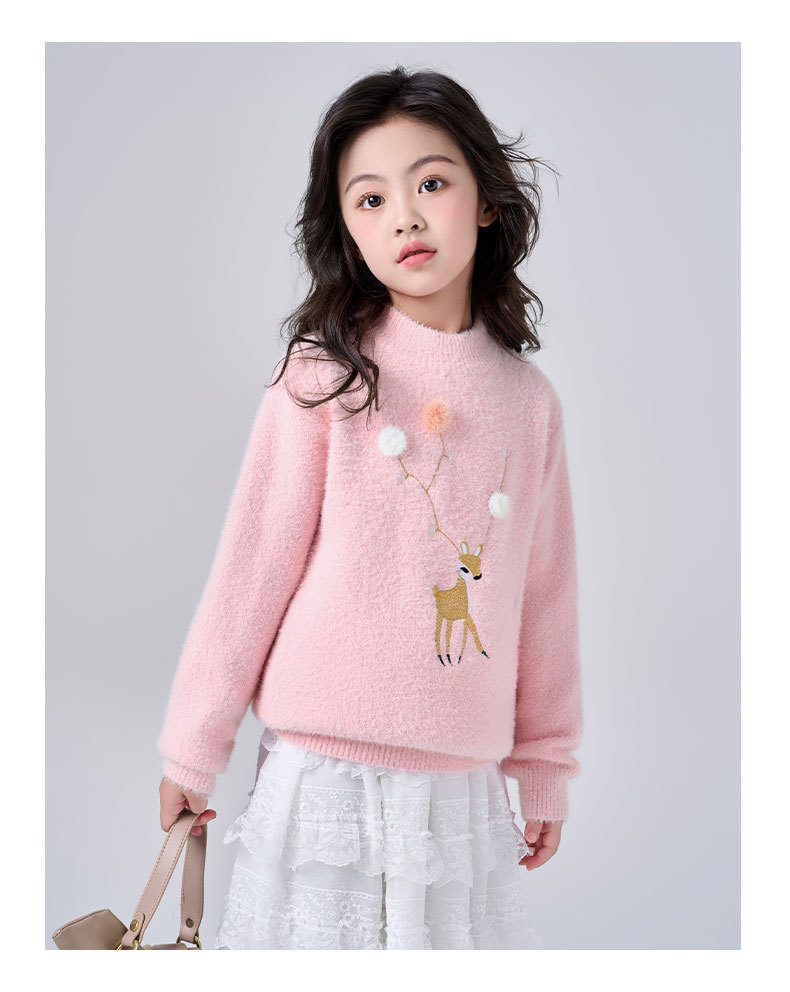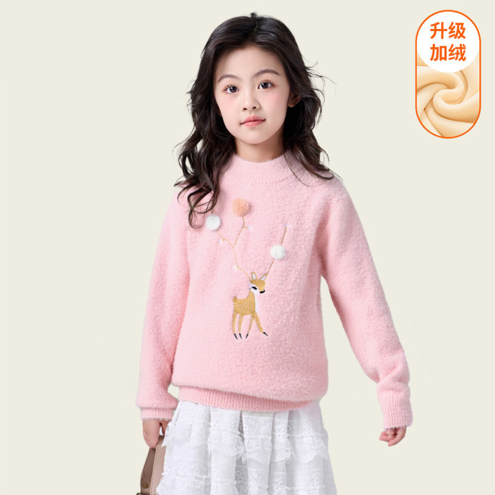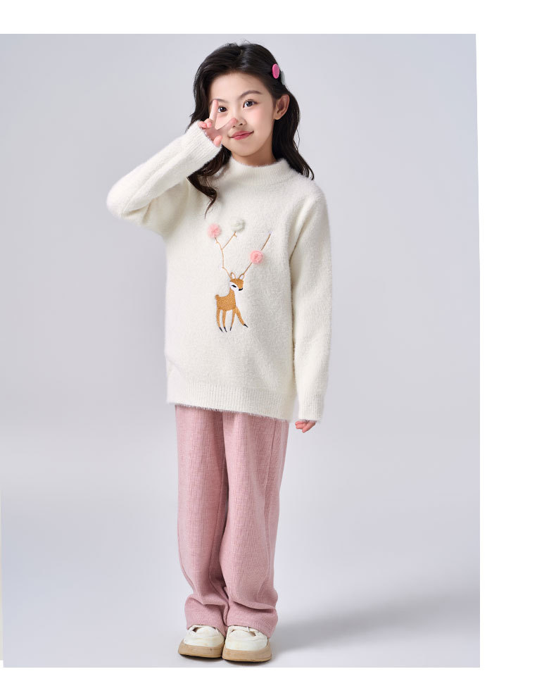 여아용 사슴 자수 니트 스웨터 2025 가을 겨울 신상품 라운드넥 두꺼운 아동복 도매스토어 가기