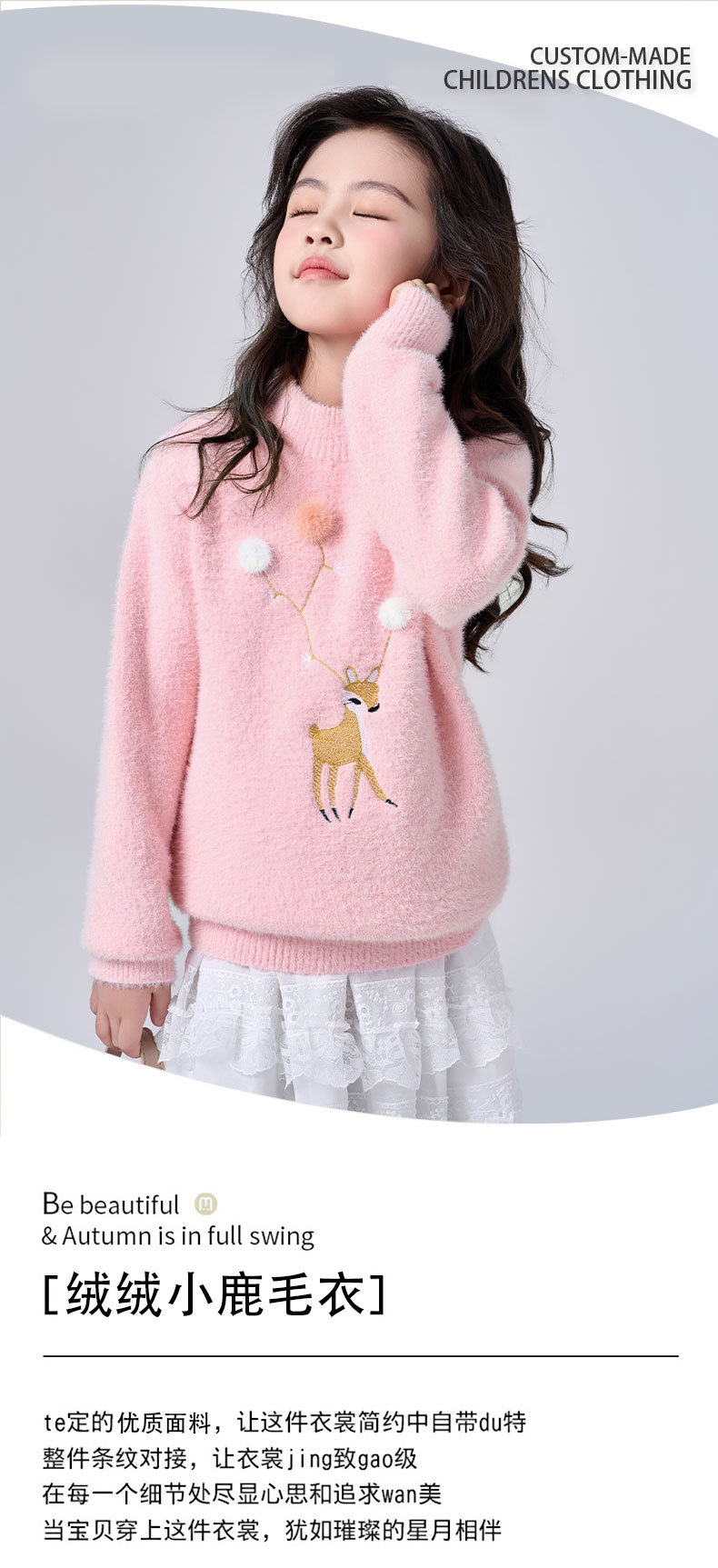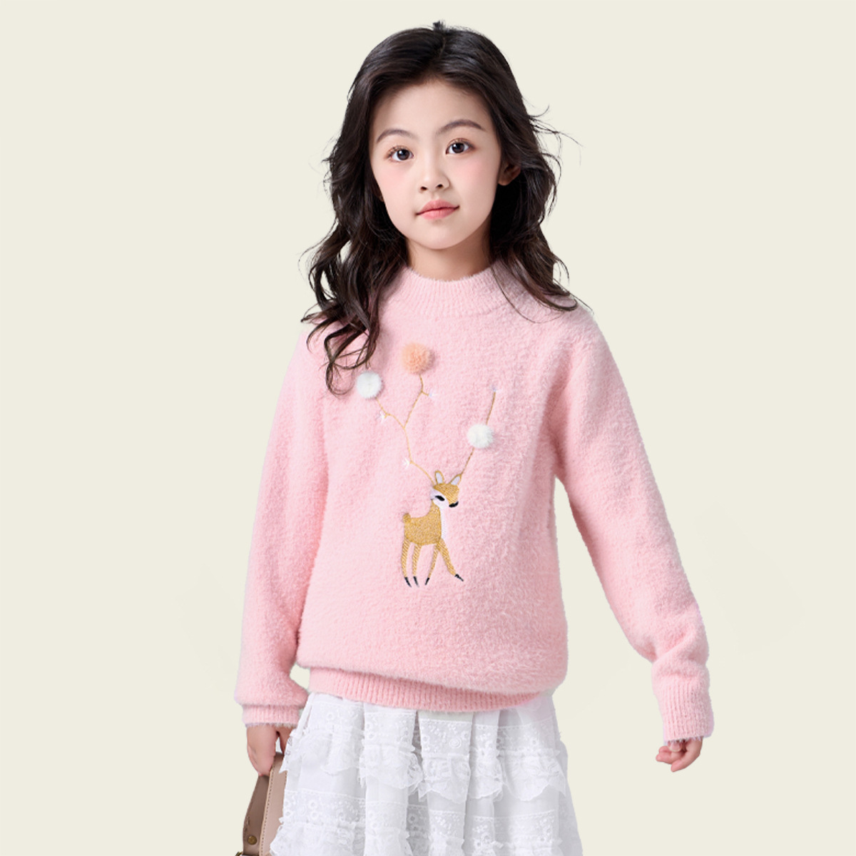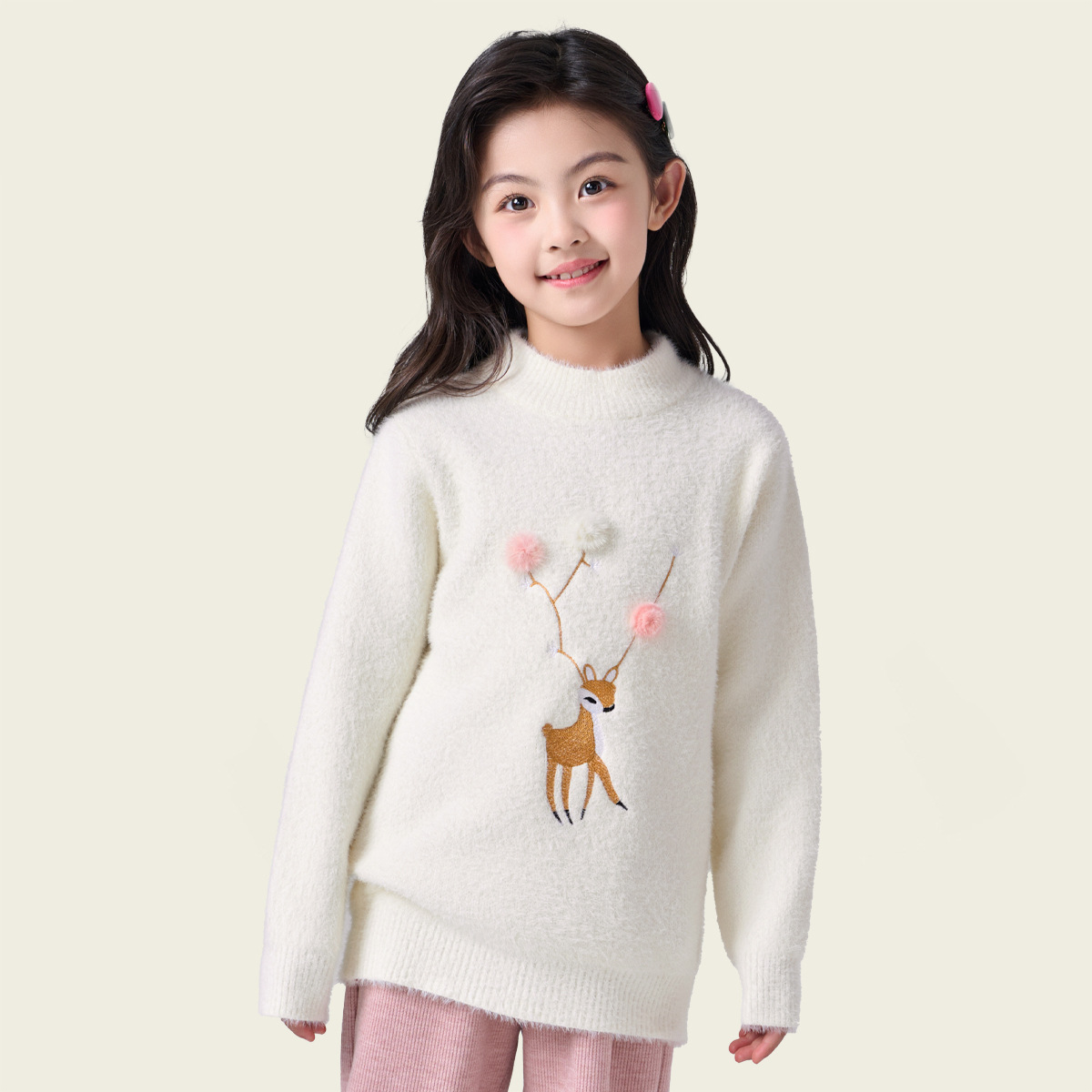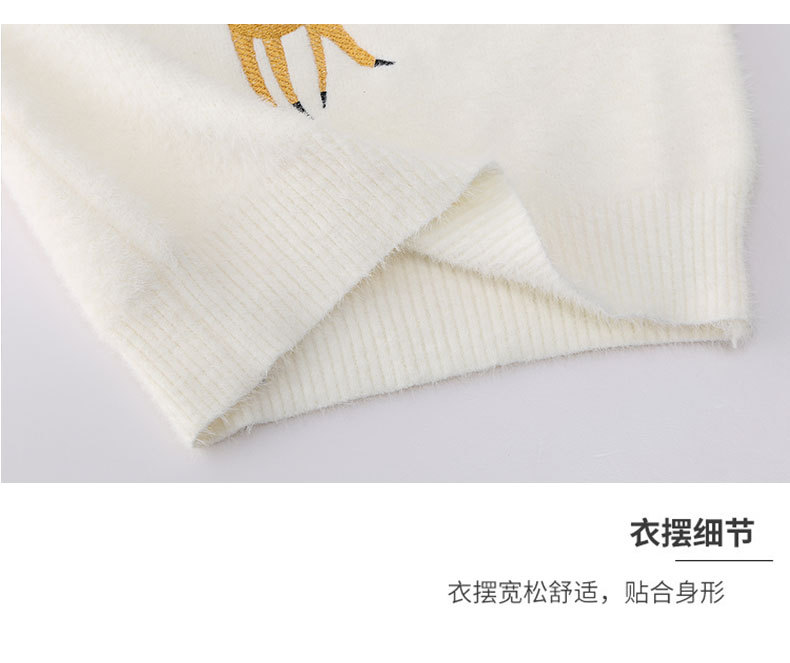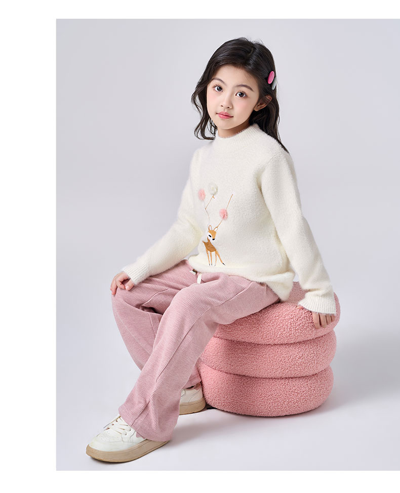 여아용 사슴 자수 니트 스웨터 2025 가을 겨울 신상품 라운드넥 두꺼운 아동복 도매스토어 가기
