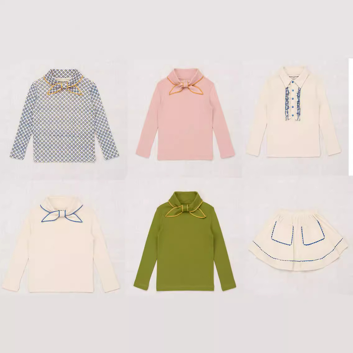 • Mp 우유 흰색 파란색 나비 넥타이 긴 소매 상단