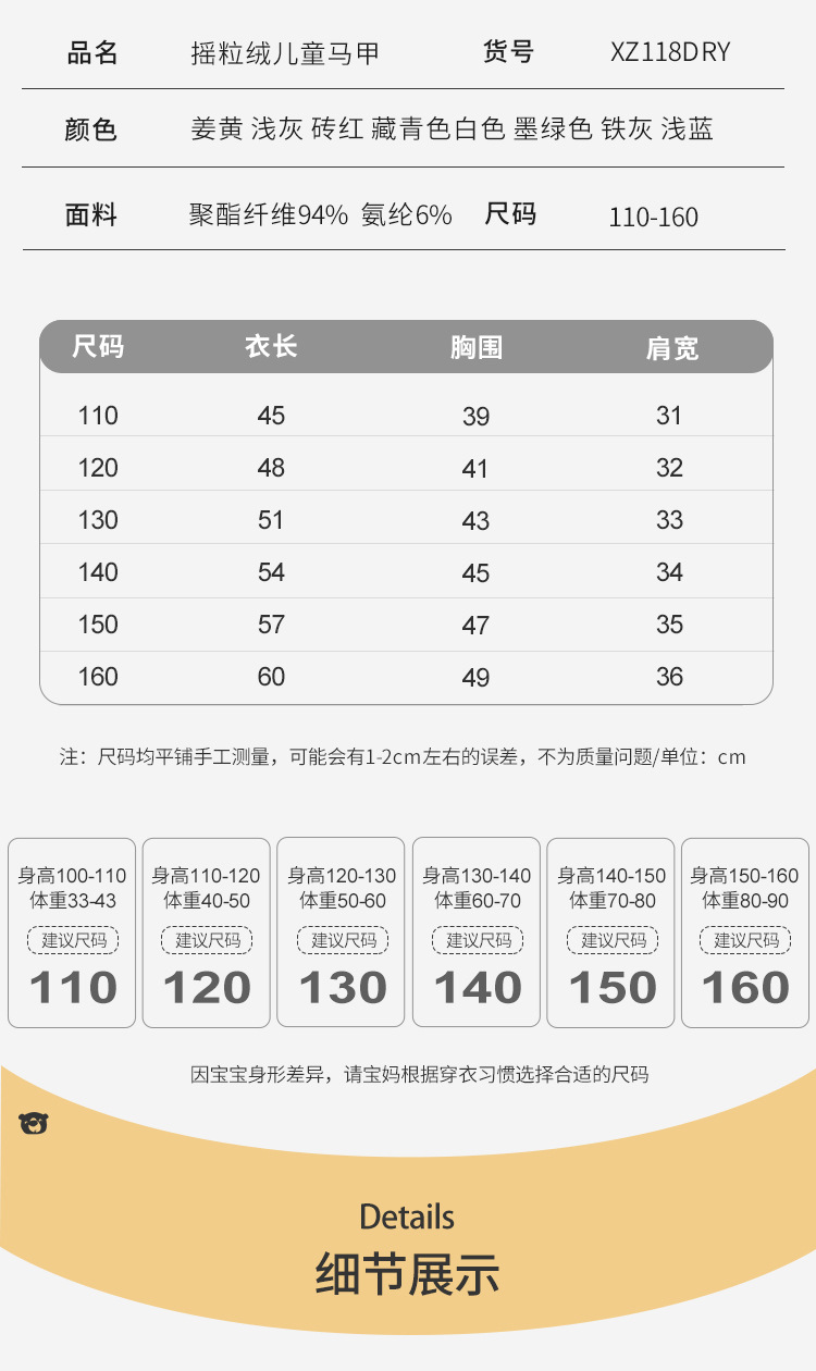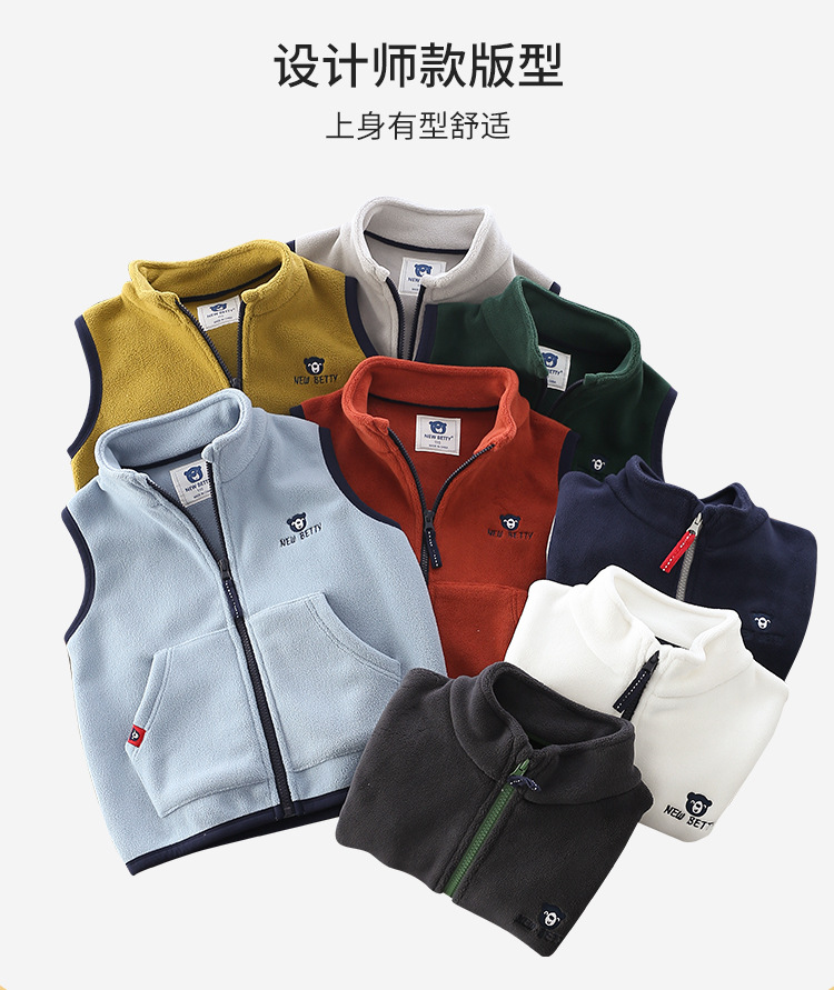 Xiong Zai Home 2023 가을 겨울 어린이 양털 조끼 반 높이 칼라 지퍼 조끼 두꺼운 외장 허리 코트 아동복스토어 가기