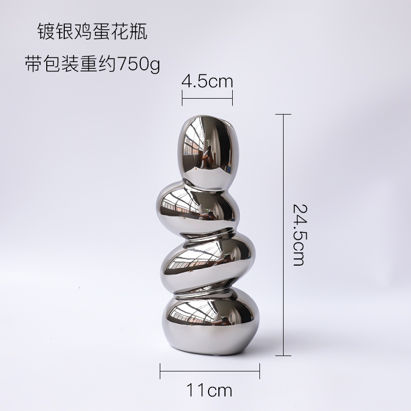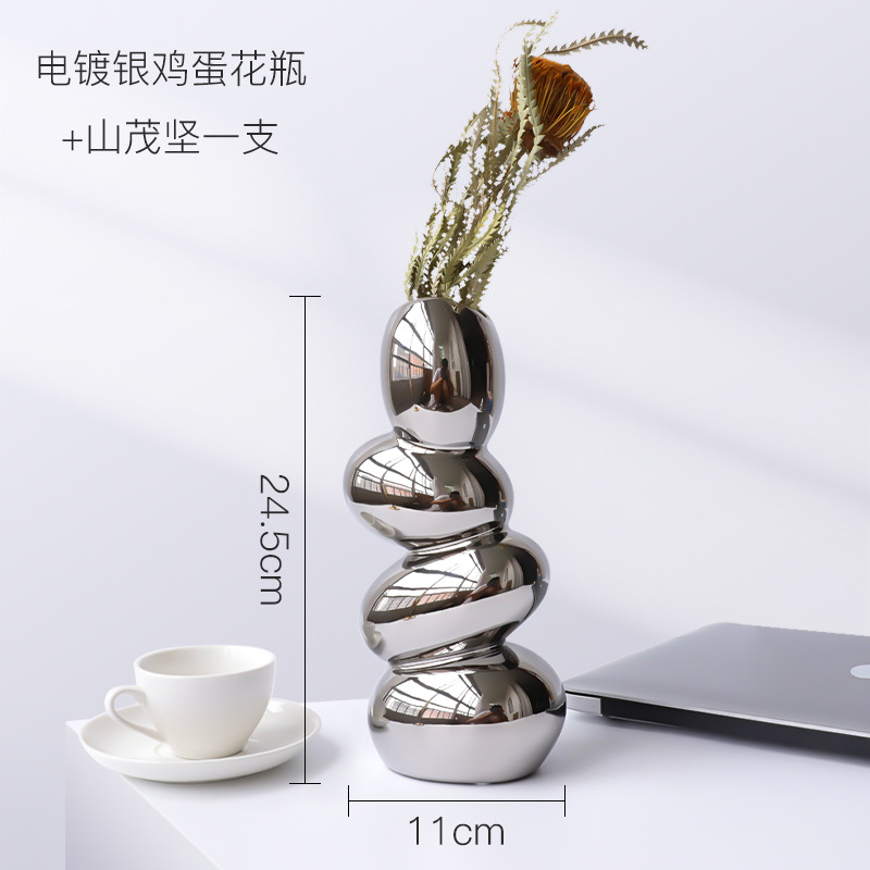 북유럽 빛 럭셔리 전기도금 실버 특별한 모양의 세라믹 꽃병 장식품 거실 식당 빌라 모델 룸 디자이너 장식