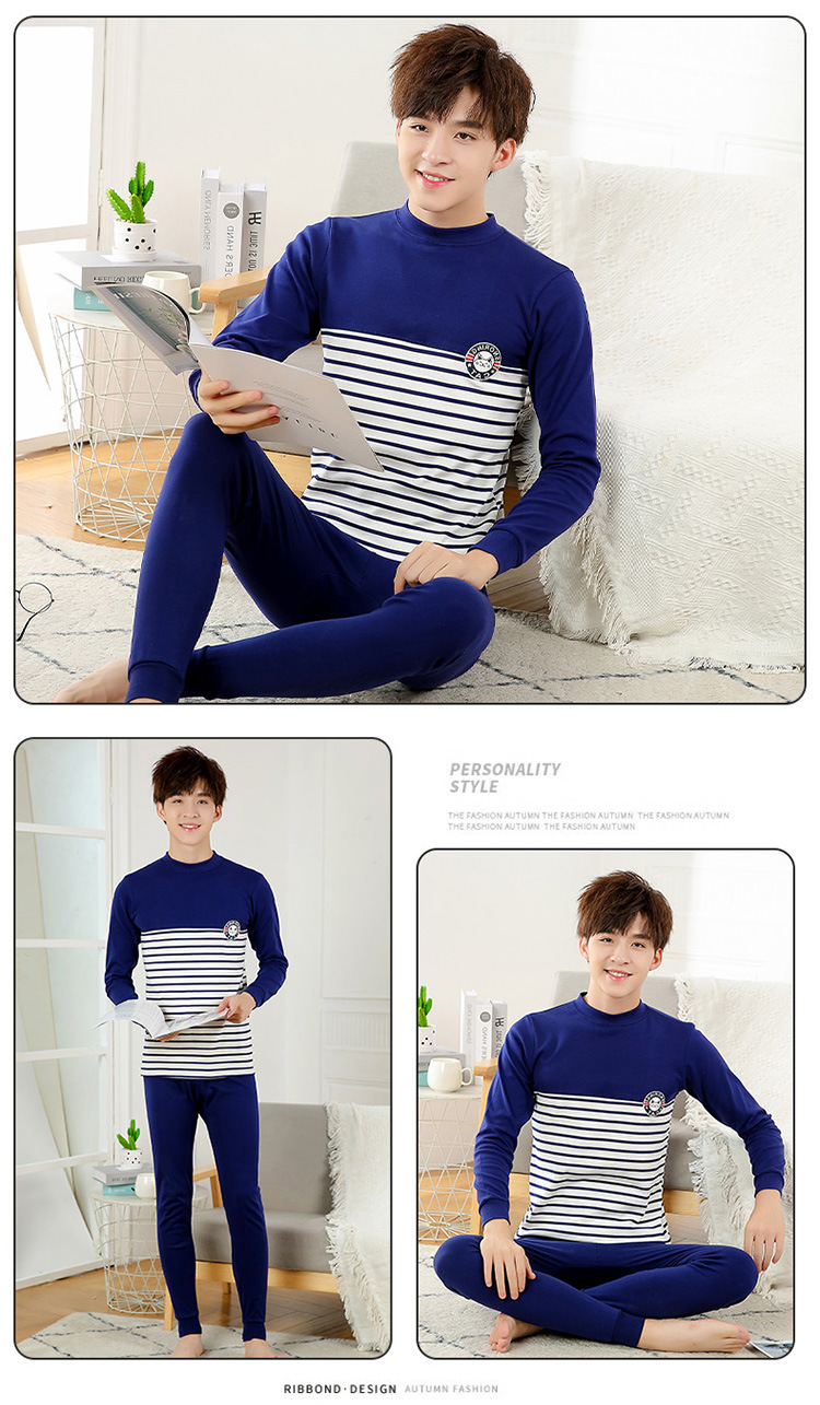 • HLM 속옷-중간 칼라 네이비 줄무늬