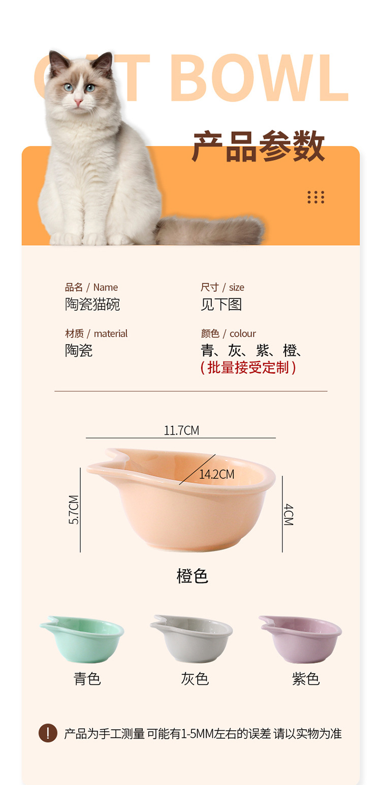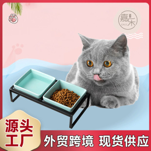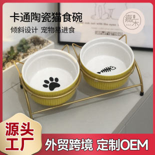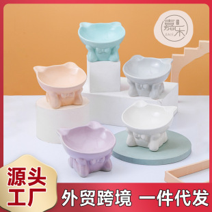 세라믹 고양이 그릇 도매 비스듬한 입 피더 자궁 보호 마시는 그릇 애완 동물 개 사료 그릇 창조적 인 세라믹 고양이 그릇