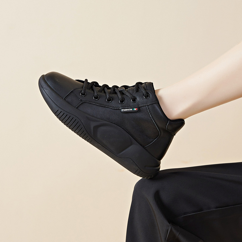 가을과 겨울 미끄럼 방지 출산 신발 정품 가죽 단층 신발 여성용 부드러운 밑창 러닝 여행 신발 편안한 중년 및 노인 어머니 운동화 여성스토어 가기