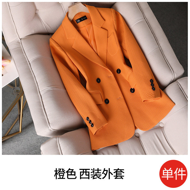오렌지 세트 재킷 여자의 2022 가을과 겨울 새로운 캐주얼 모든 매치 느슨한 패션 여신 팬 작은 세트스토어 가기
