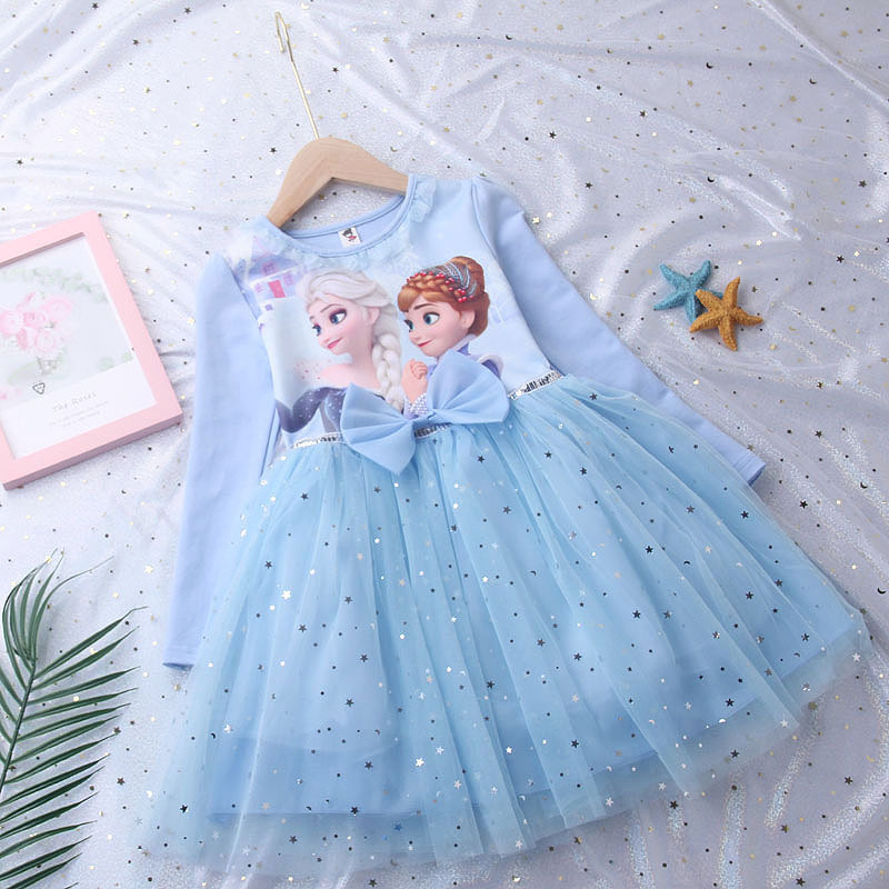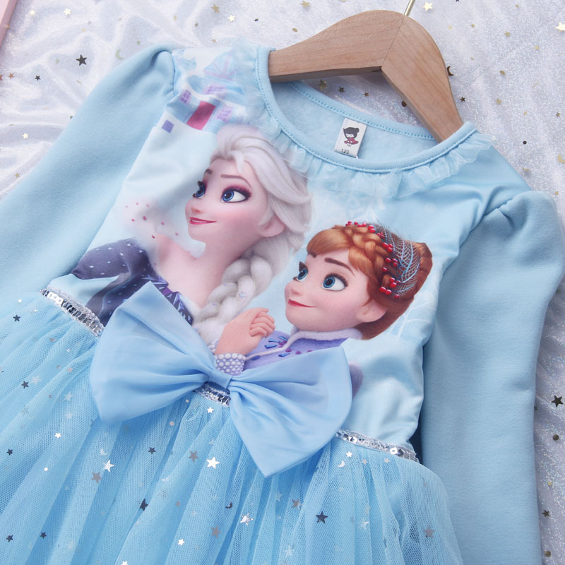 냉동 공주 원피스 소녀 엘사 긴 소매 아기 면 가을 어린이 푹신한 용기 원피스 생일 원피스 패션스토어 가기