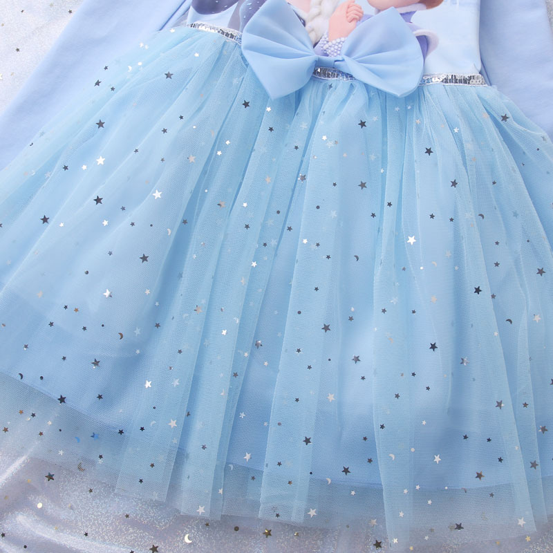 냉동 공주 원피스 소녀 엘사 긴 소매 아기 면 가을 어린이 푹신한 용기 원피스 생일 원피스 패션
