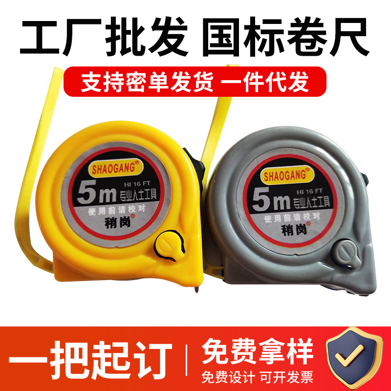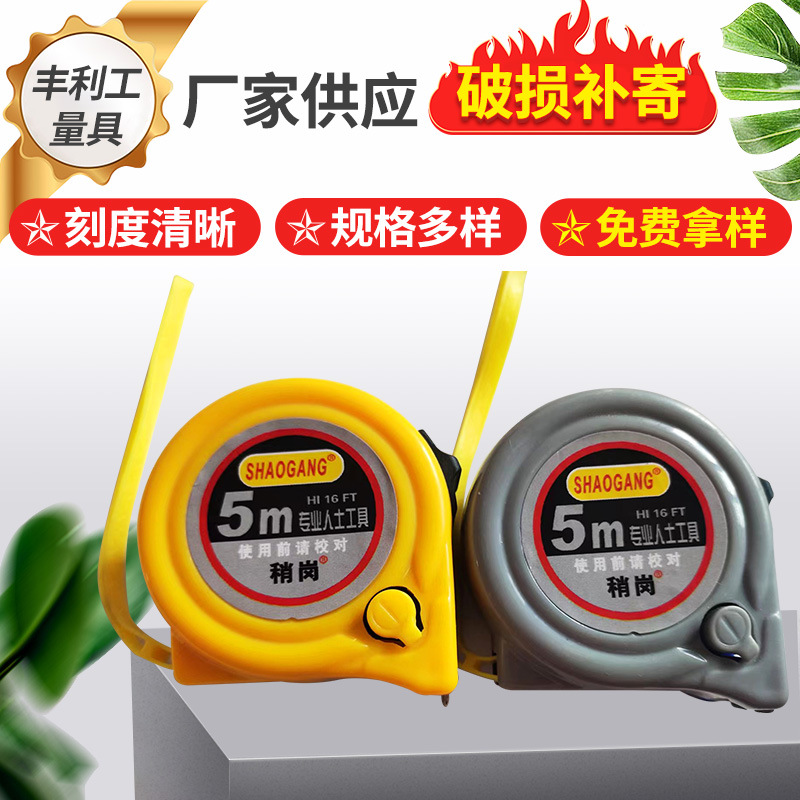 가정용 노란색 회색 두꺼운 강철 테이프 고정밀 엔지니어링 측정 통치자 상자 통치자 5 m 두께 자체 잠금 강철 테이프