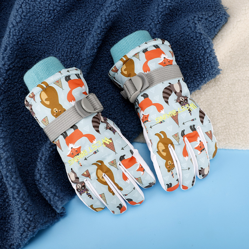 서부 자전거 어린이 따뜻한 장갑 스키 장갑 겨울 기모 귀여운 어린이 야외 방풍 장갑