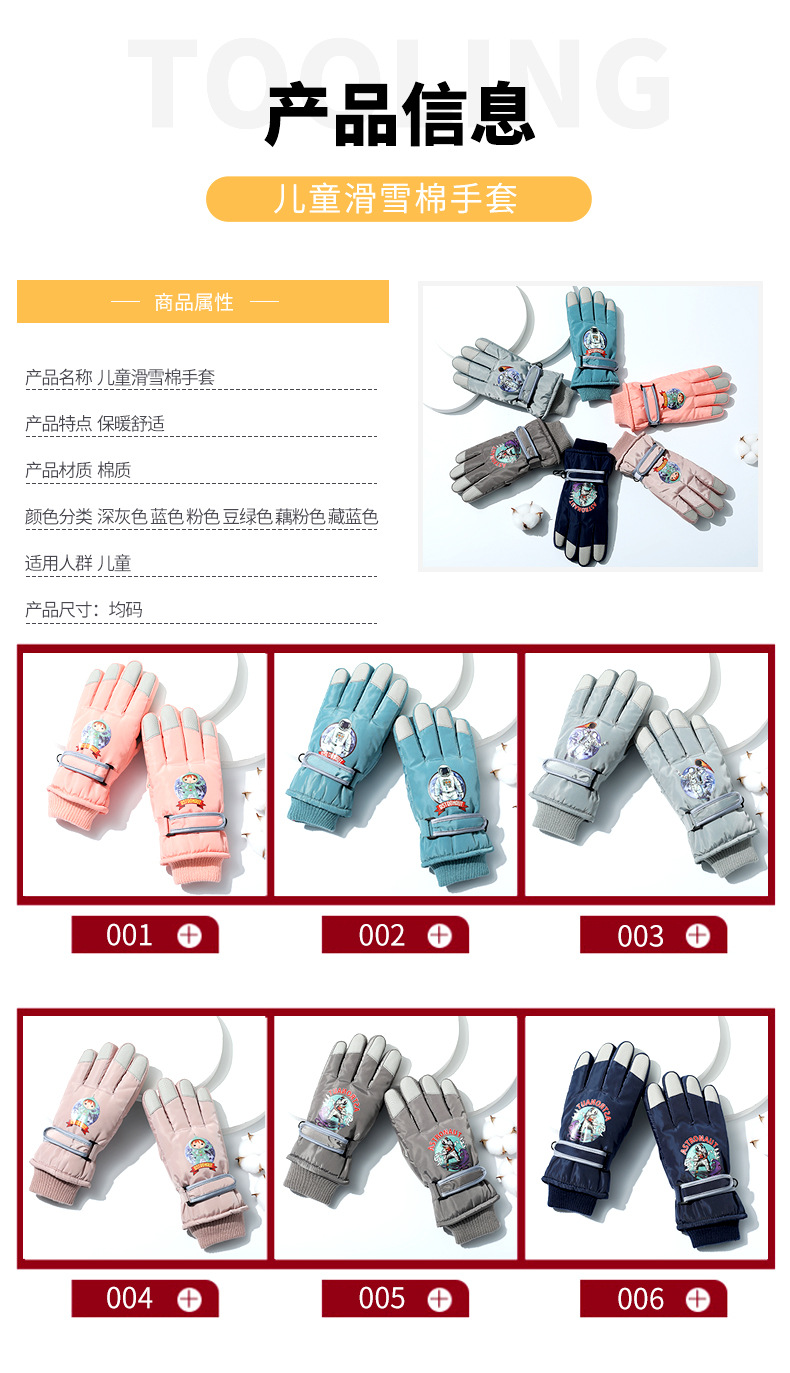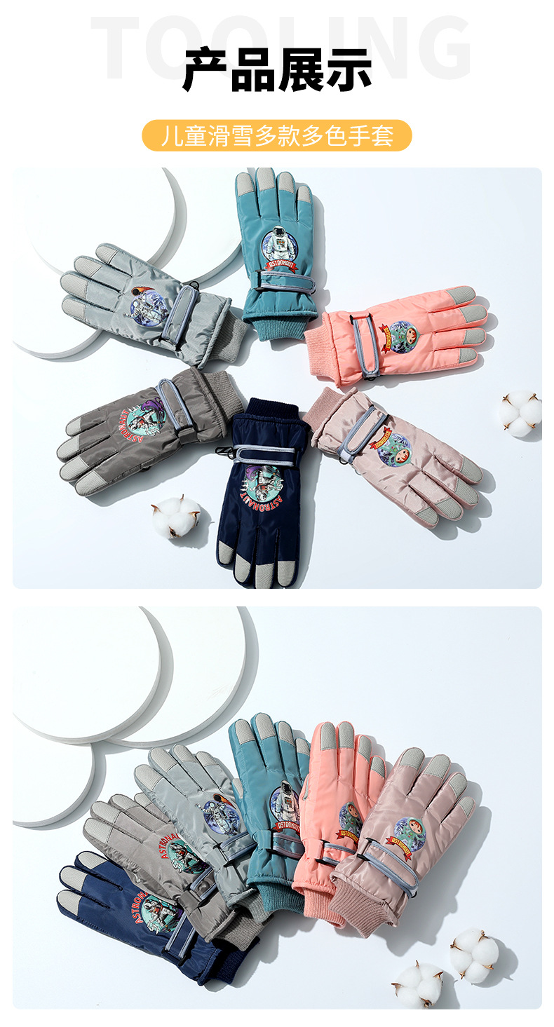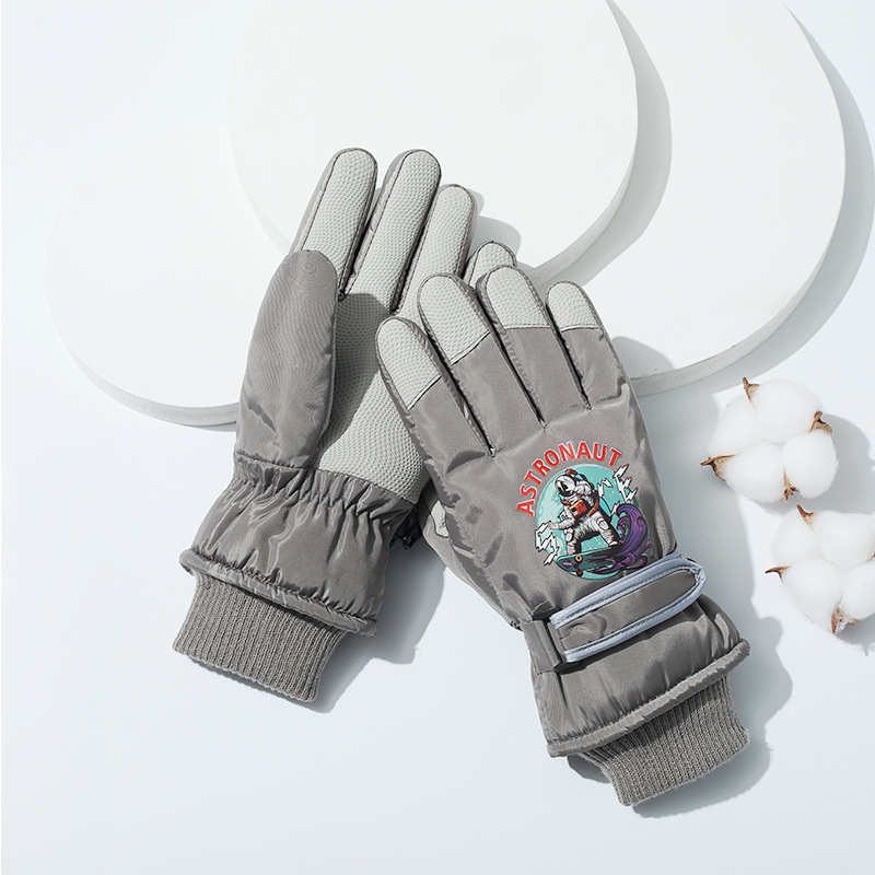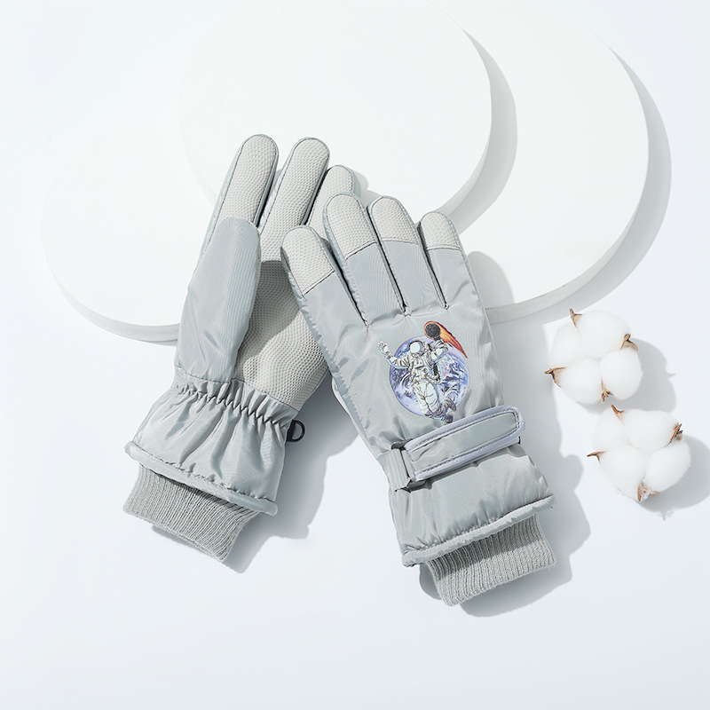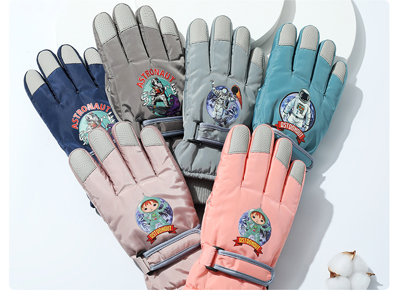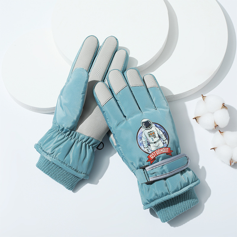 겨울 방수 손가락 장갑 어린이 스키 만화 장갑 따뜻한 머리 입 잠금 온도 기모 두꺼운 장갑