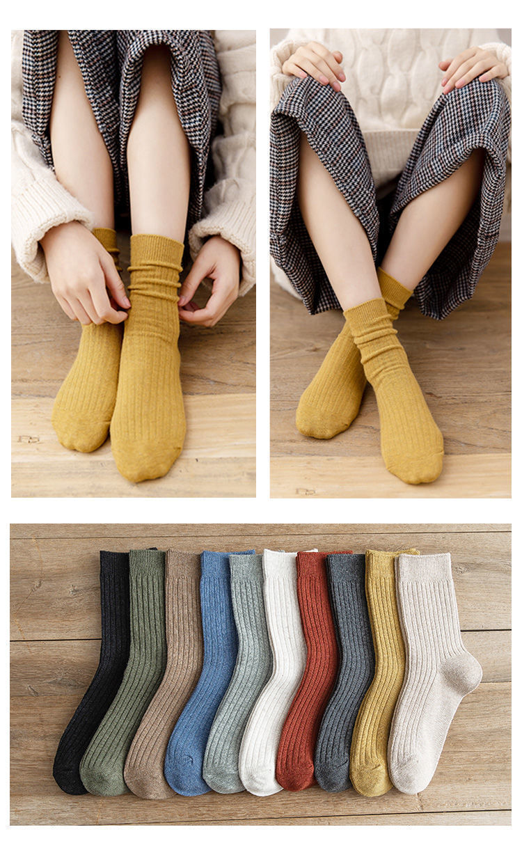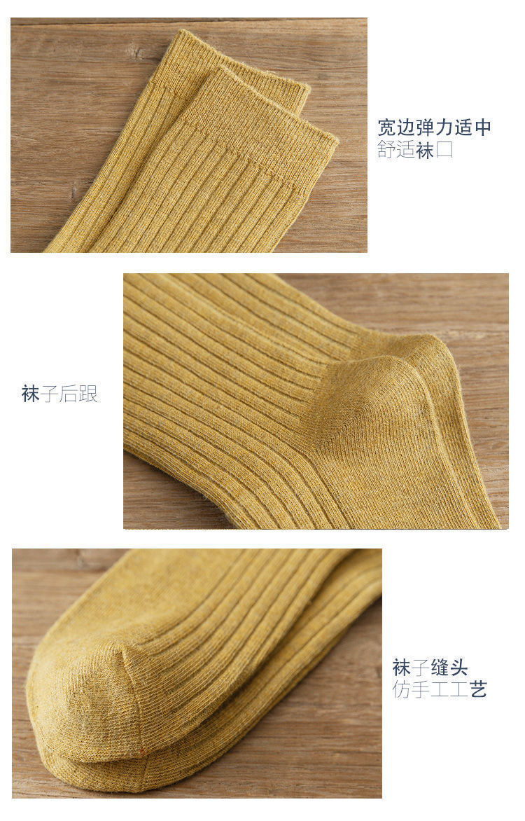 양말 여성용 가을 단색 중간 길이 양말 일본식 이중 바늘 수직 스타킹 트렌디 한국식 스타킹 스타킹 스타킹 여성 양말
