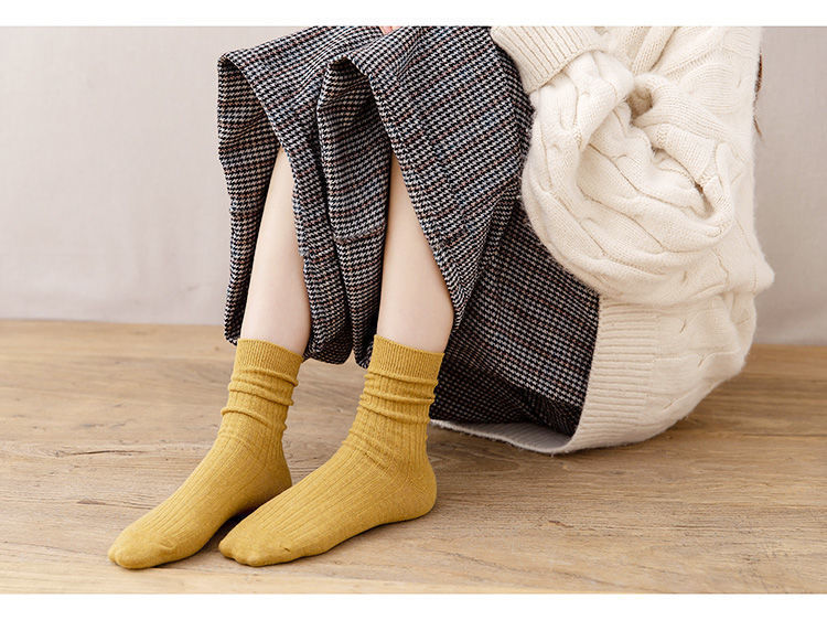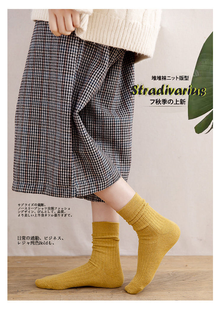 新品袜子女秋季纯色中筒袜日系长袜ins潮韩版堆堆袜长筒女士袜