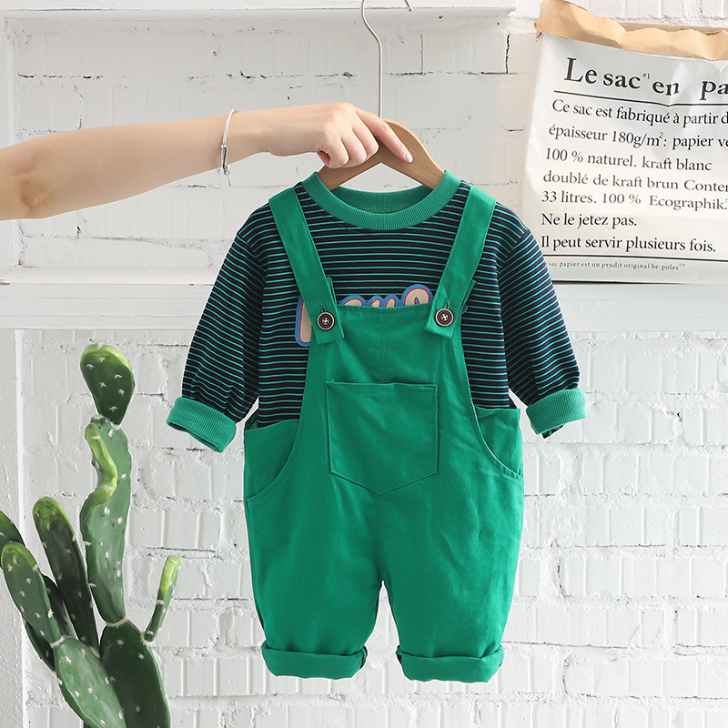 남성 아기 가을 줄무늬 긴 소매 2 2 개 세트 1-3 세 아동 멜빵 한국 아기 옷 봄과 가을 패션스토어 가기
