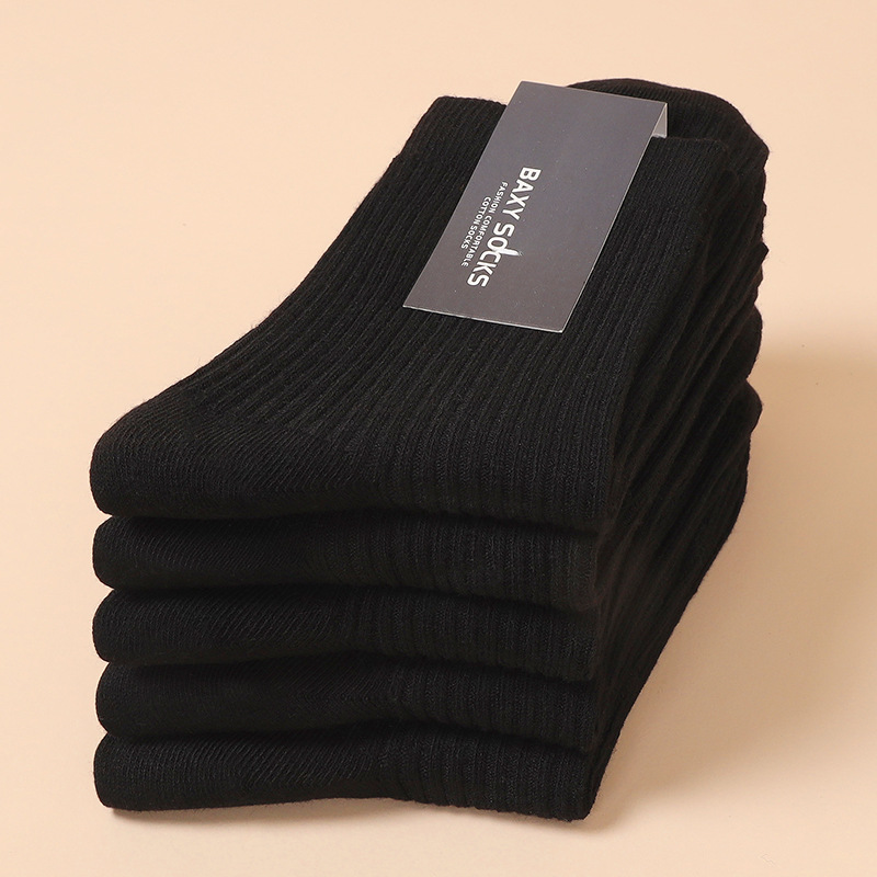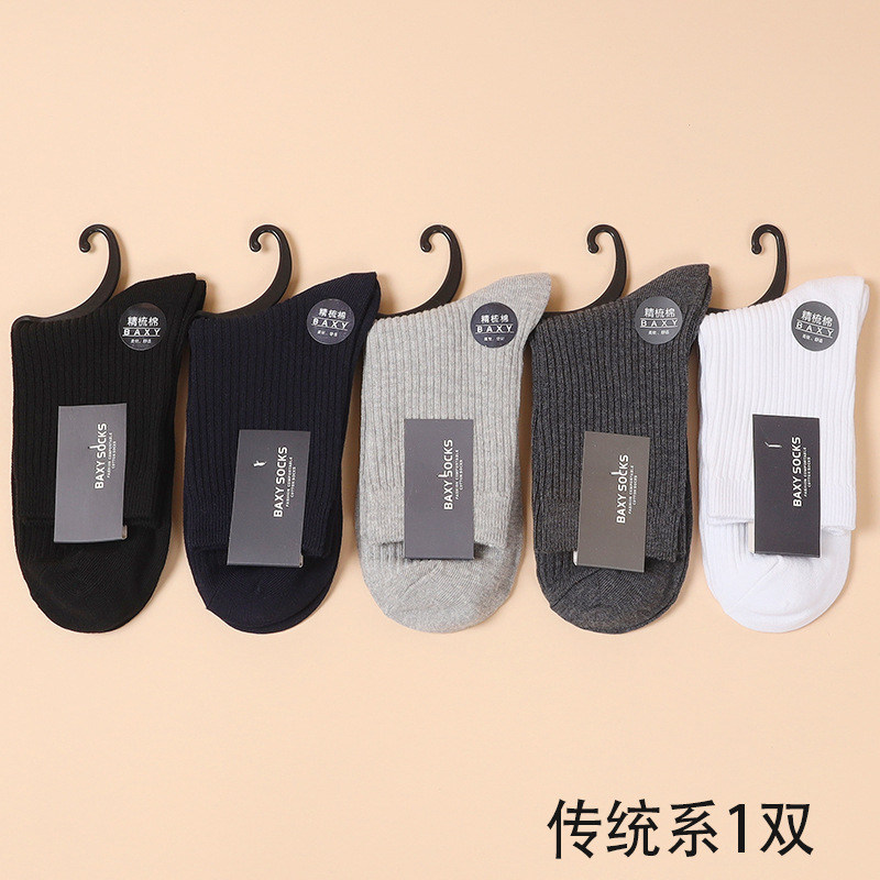 가을과 겨울 새로운 남성 양말 모든 매치 단색 더블 바늘 면 양말 면 비즈니스 캐주얼 졸라매는 끈 스타킹스토어 가기
