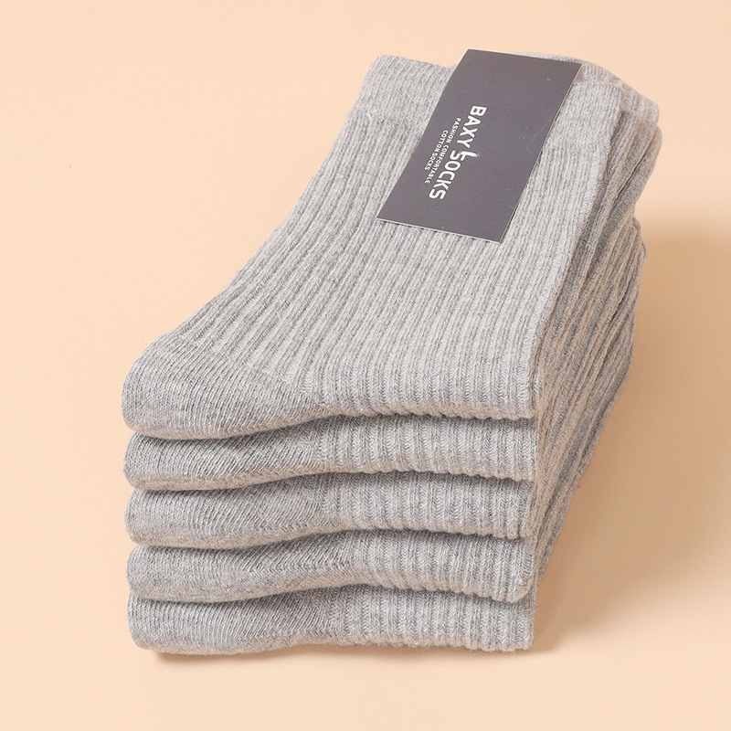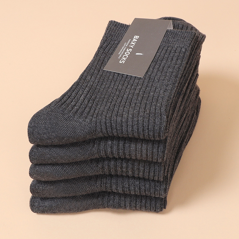 가을과 겨울 새로운 남성 양말 모든 매치 단색 더블 바늘 면 양말 면 비즈니스 캐주얼 졸라매는 끈 스타킹