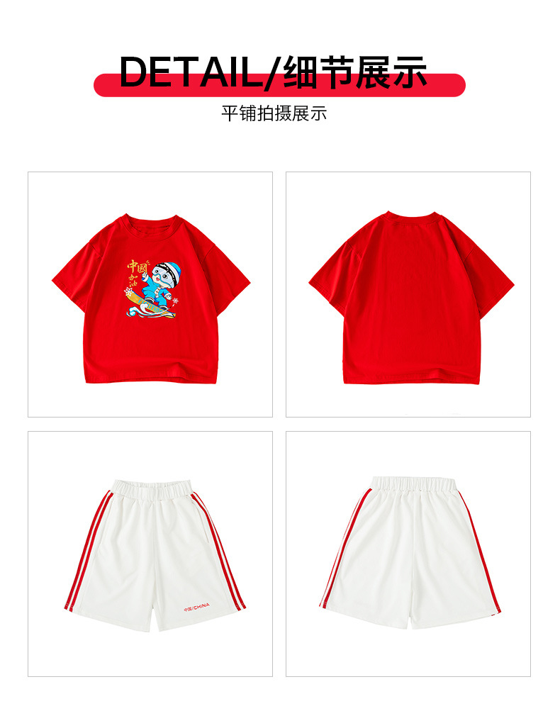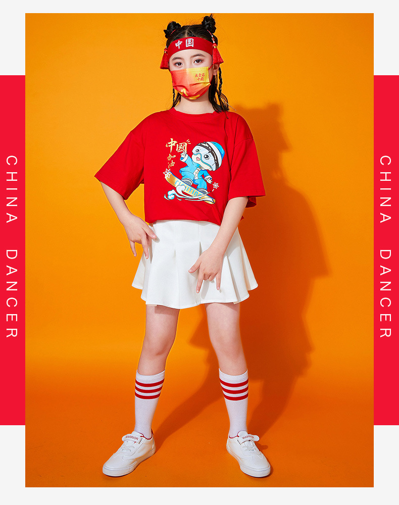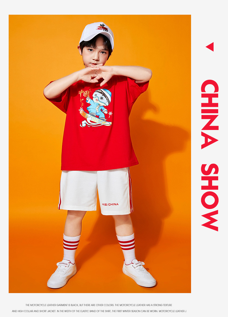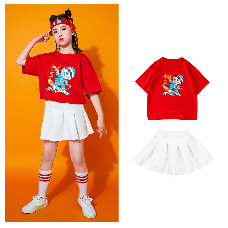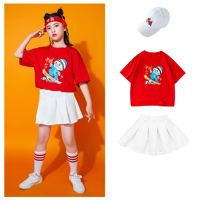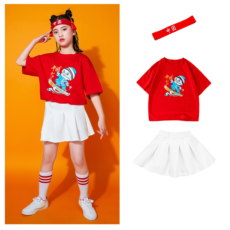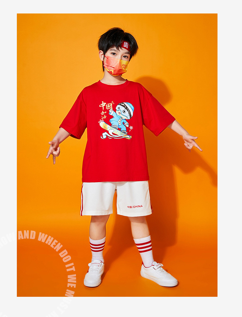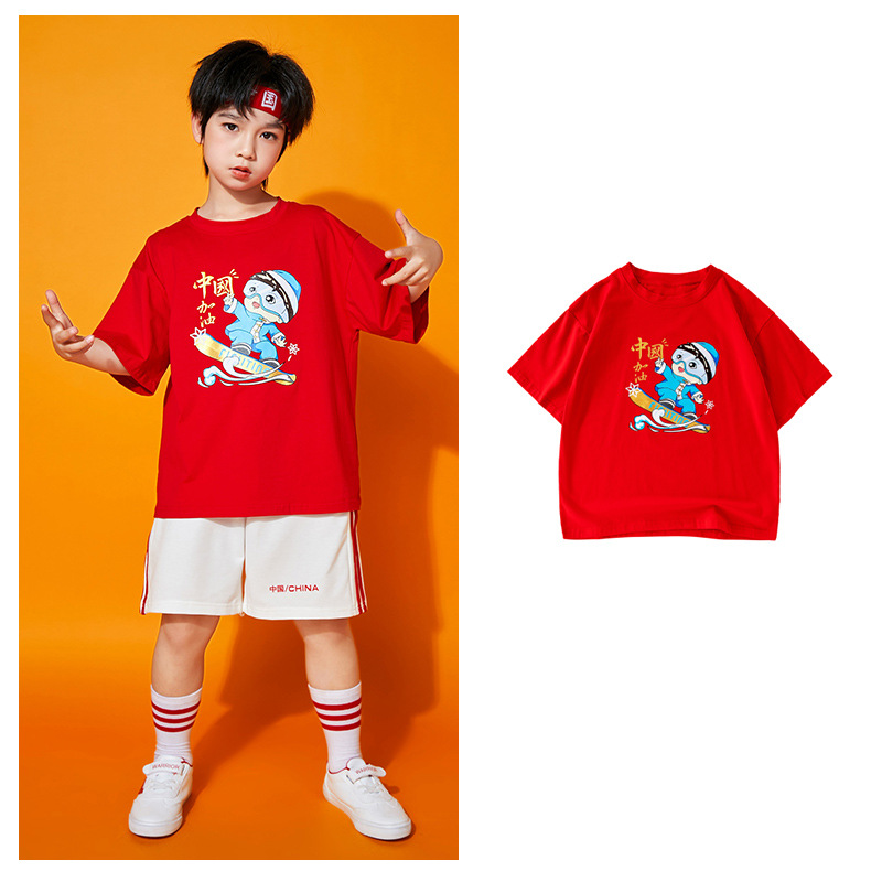 어린이 치어리딩 팀 합창 의상 중국 급유 빨간 반팔 세트 초등학생 게임 의상