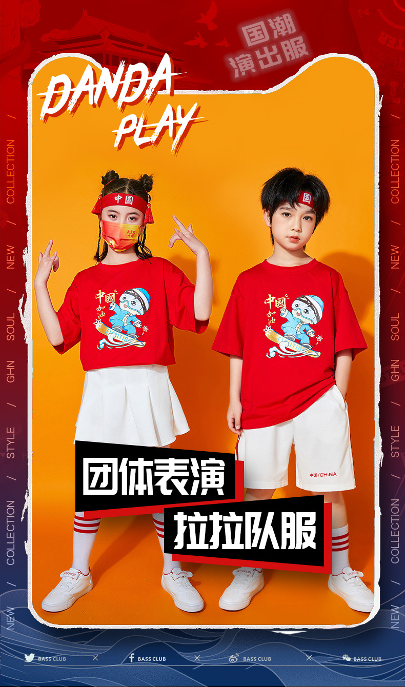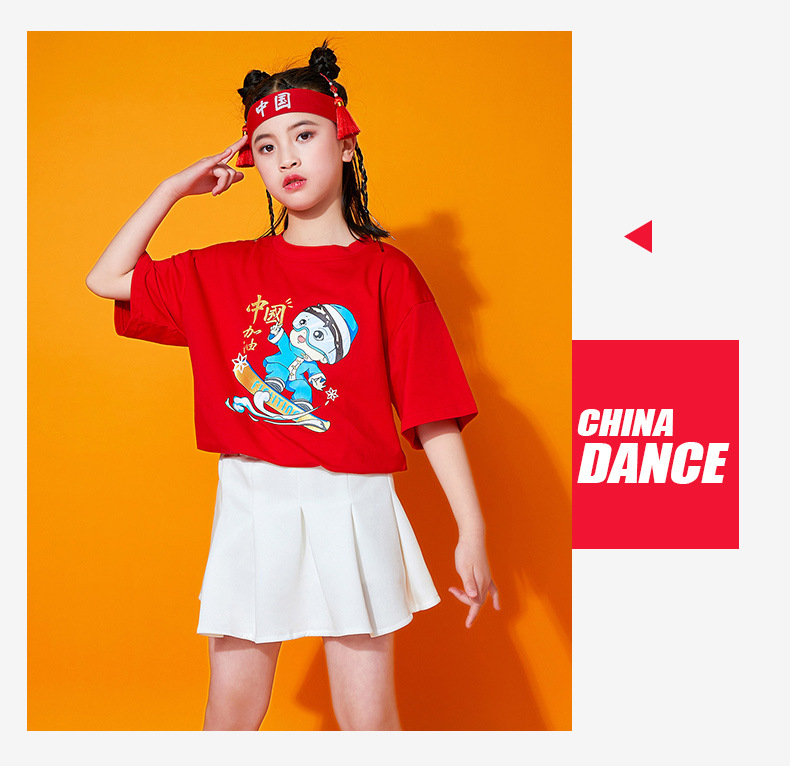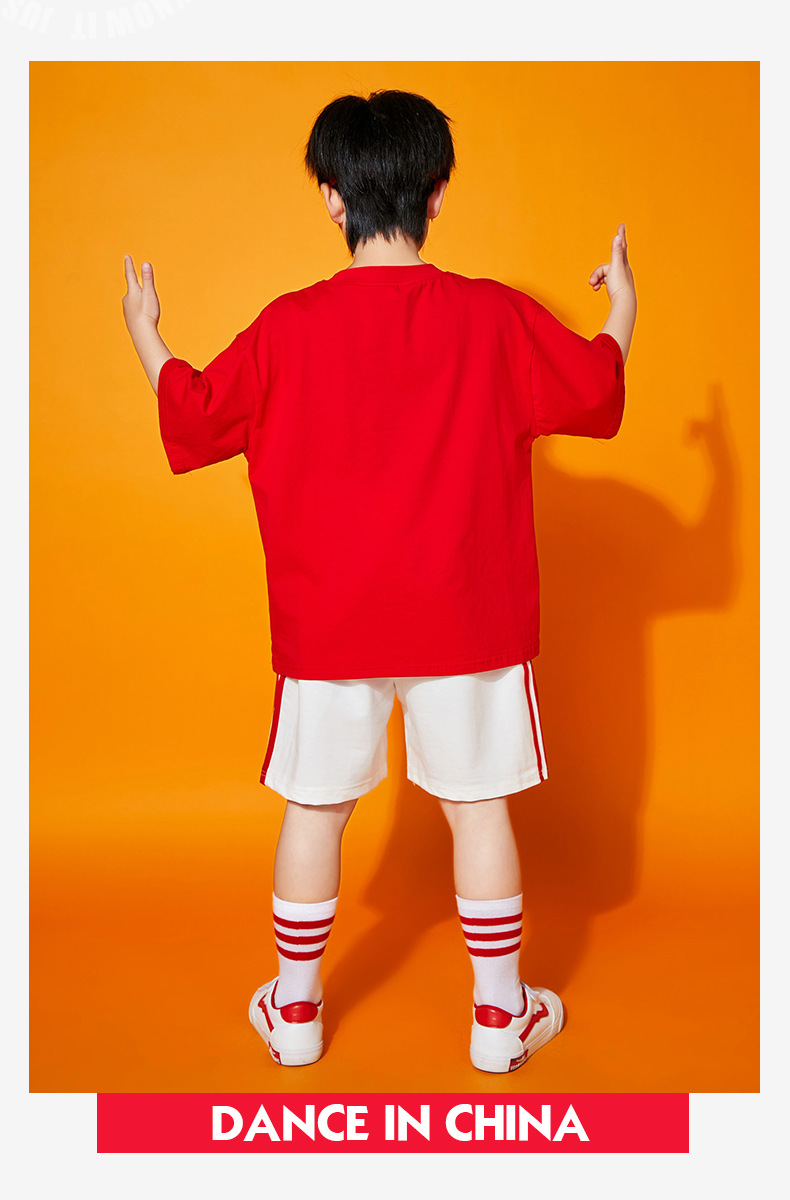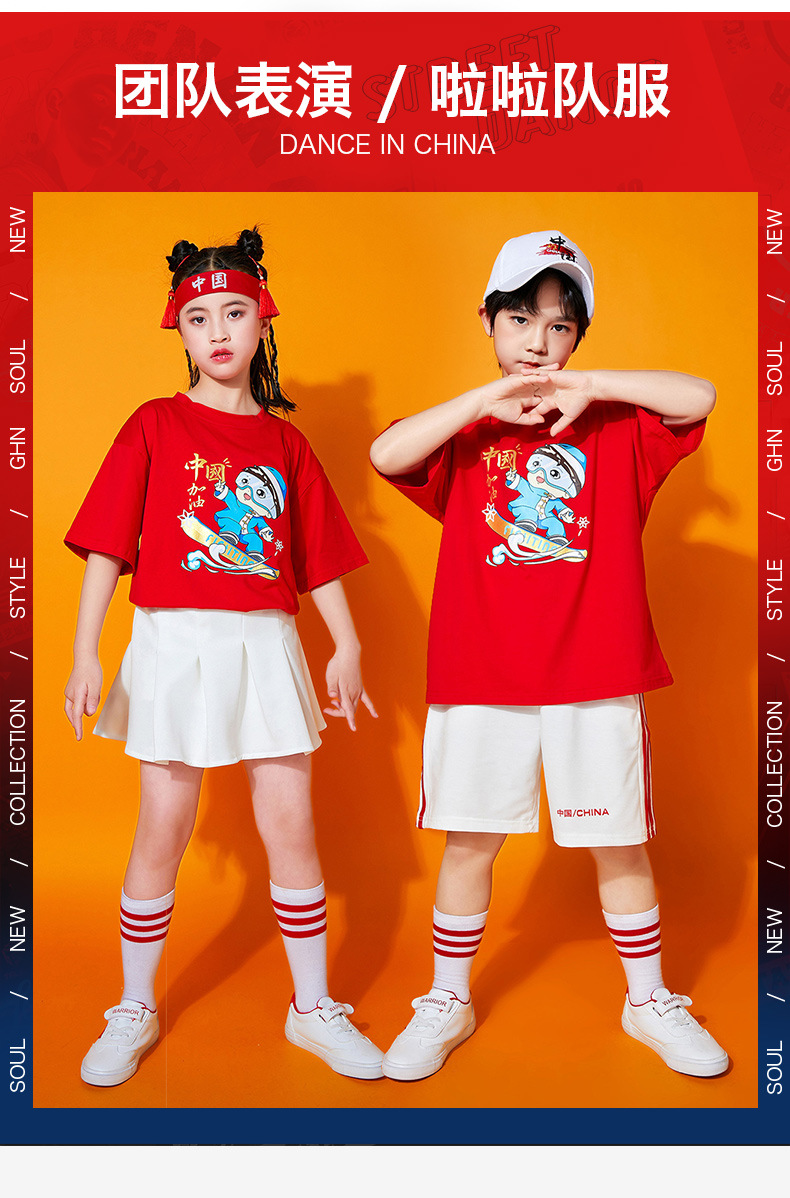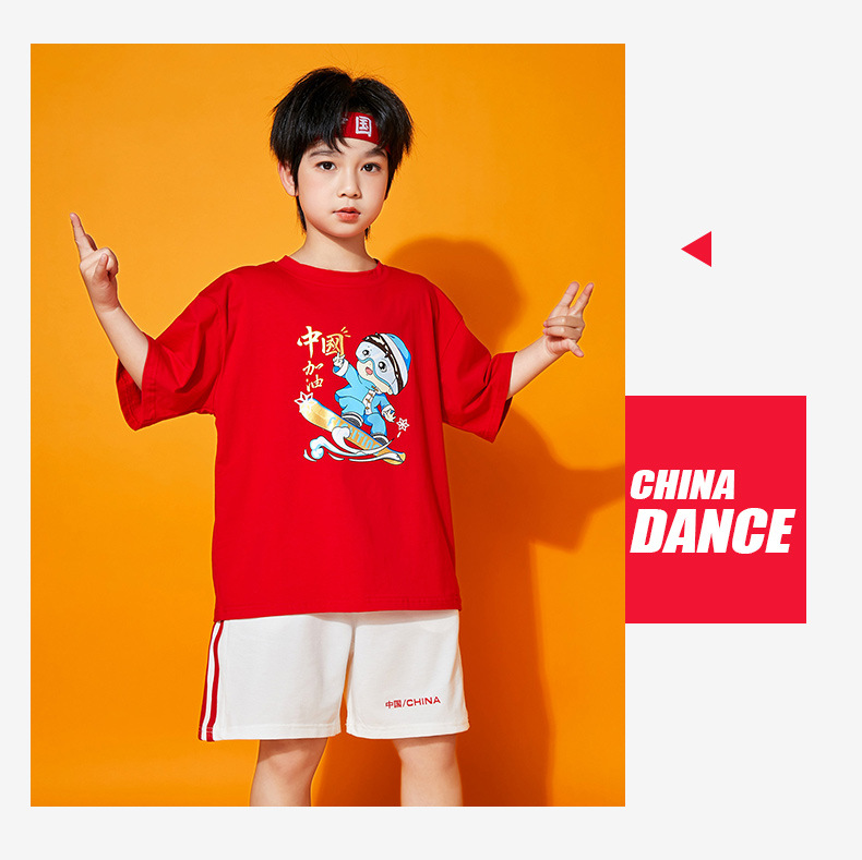 어린이 치어리딩 팀 합창 의상 중국 급유 빨간 반팔 세트 초등학생 게임 의상스토어 가기