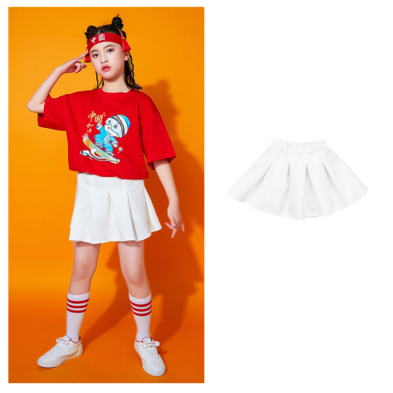• 8808 레드 중국 급유 반팔 + 화이트 스커트