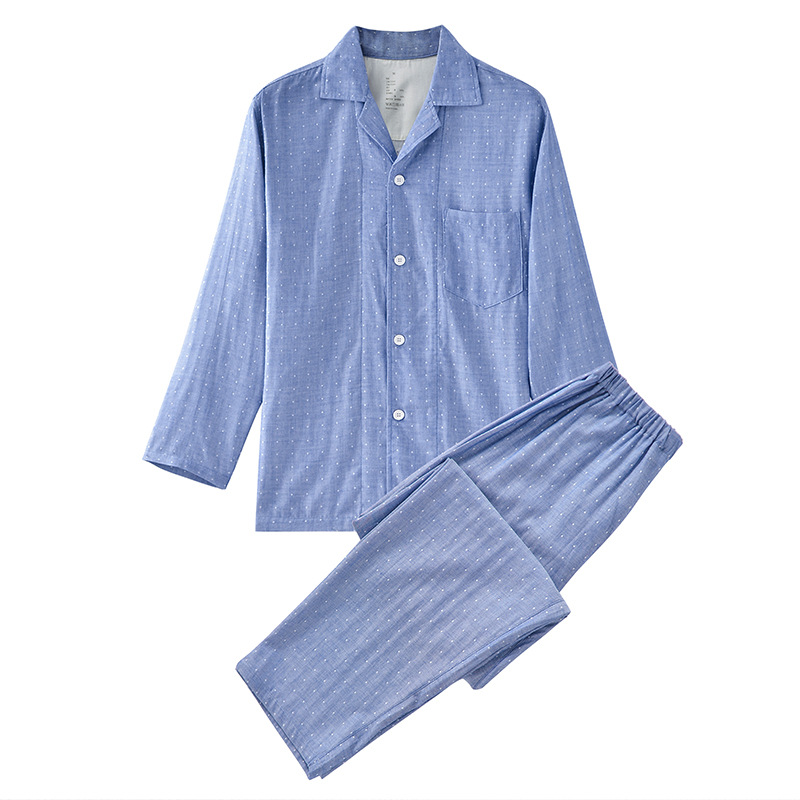 일본식 인쇄 가정 옷 남성과 여성을 위한 좋은 더블 레이어 원사 올면 잠옷 사이드 솔기가없는 캐주얼 웨어러블 아우터 웨어러블 격자 무늬