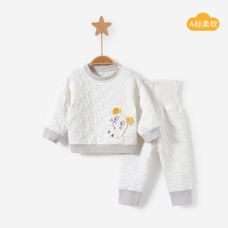가을과 겨울 세트 아기의 가을 옷과 바지 아기의 하이 웨이스트 두꺼운 남아 및 여아베이스 분할 어린이 열 속옷스토어 가기