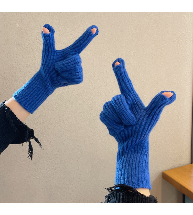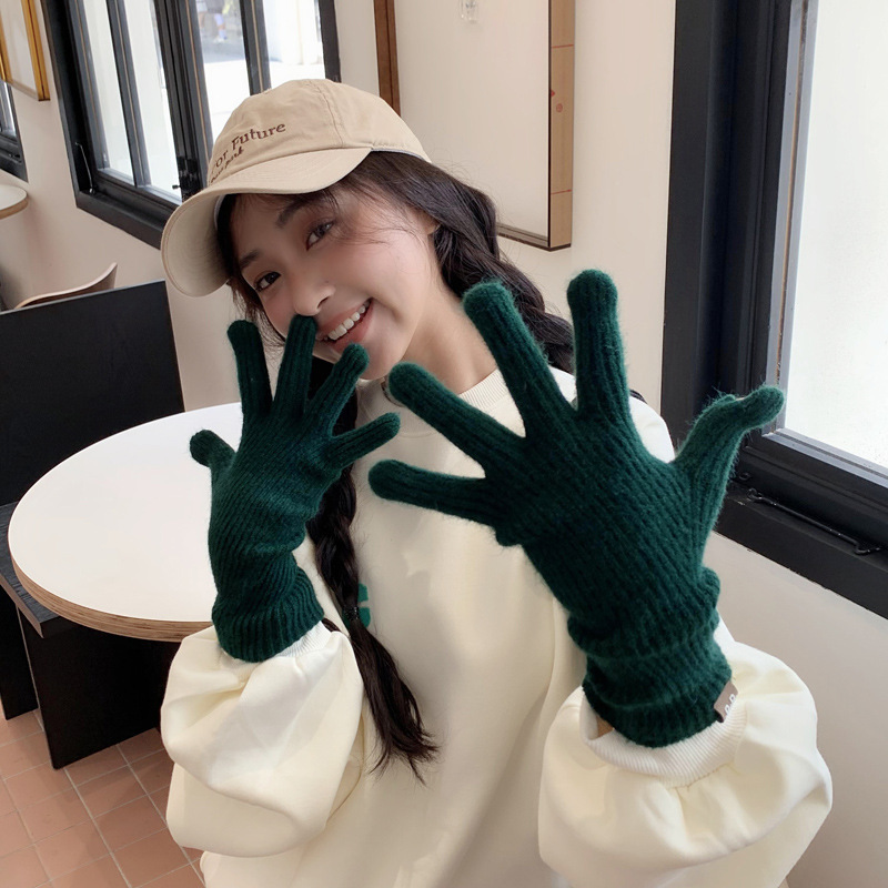 단색 니트 장갑 여성 겨울 학생 누출 손가락 터치 스크린 재생 휴대 전화 양모 따뜻한 긴 손목 사이클링 감기 보호스토어 가기