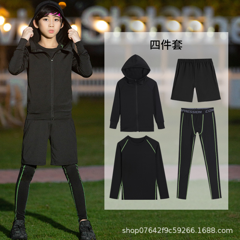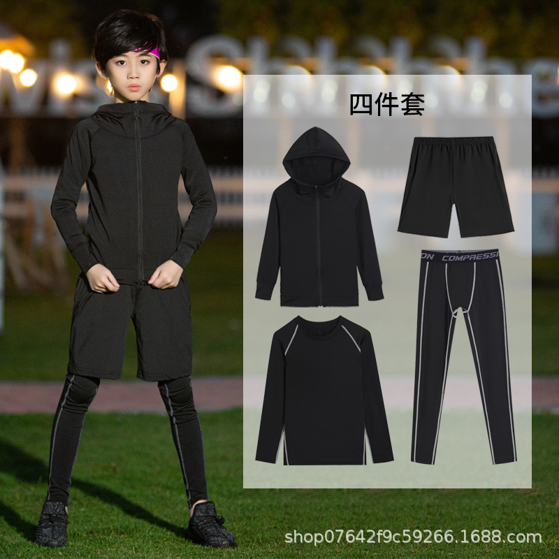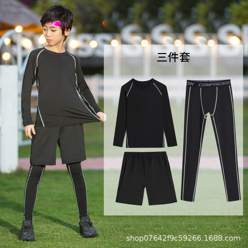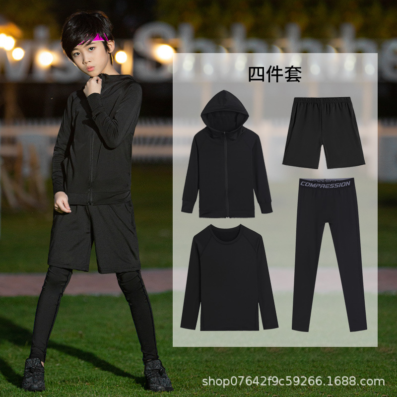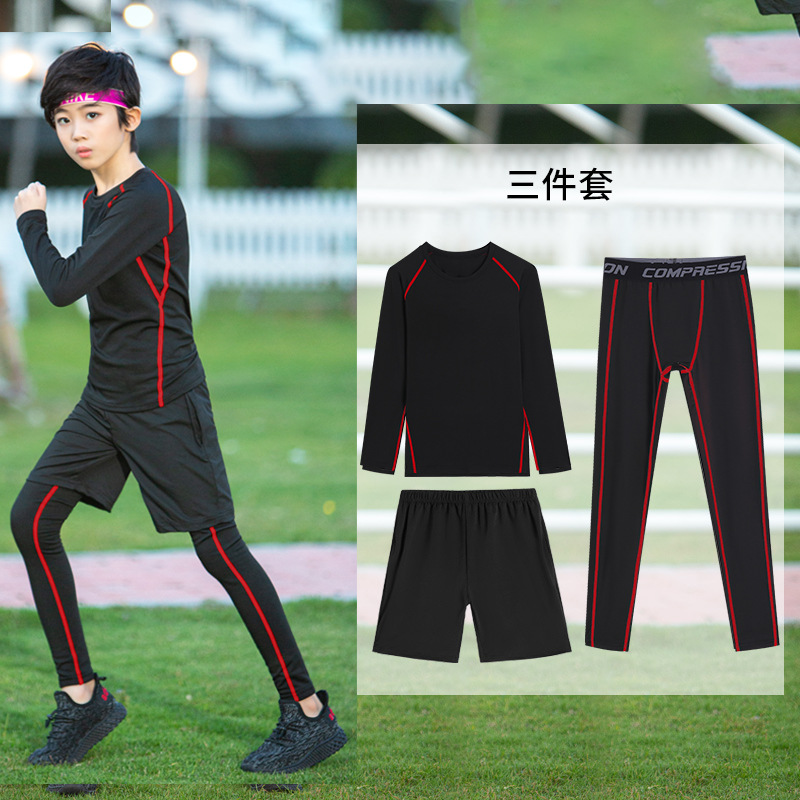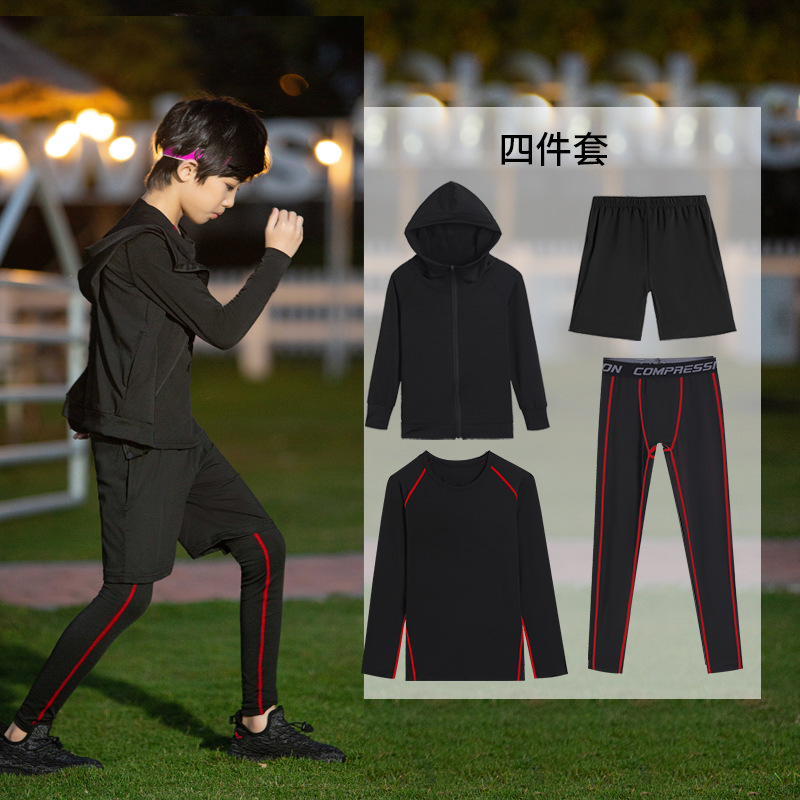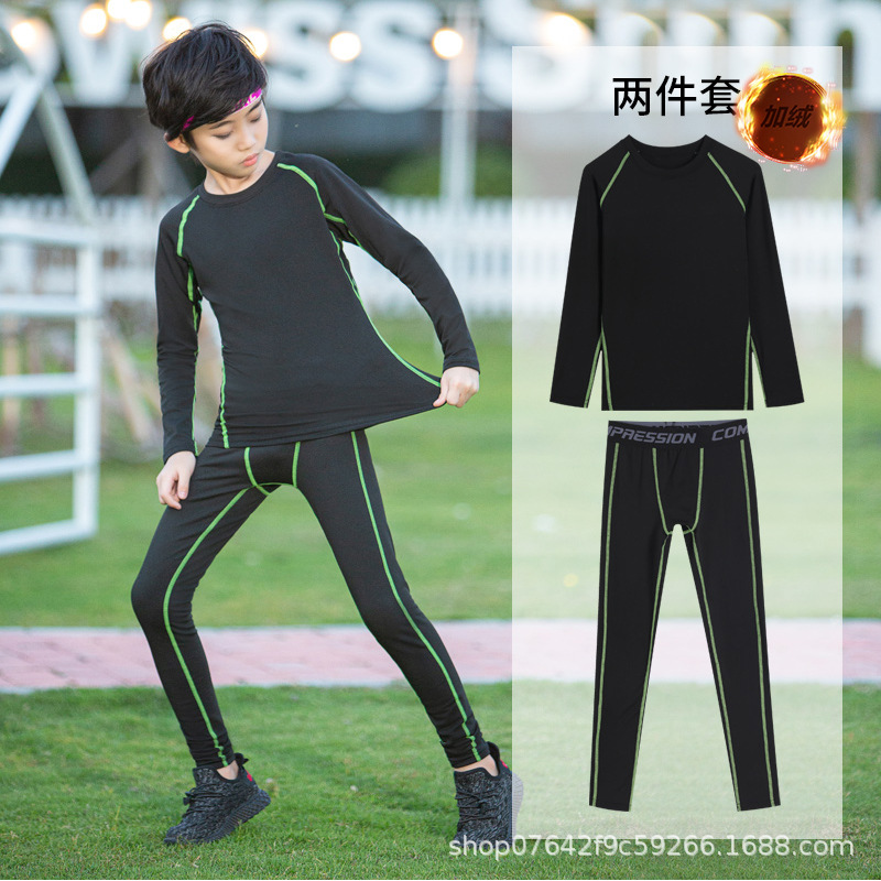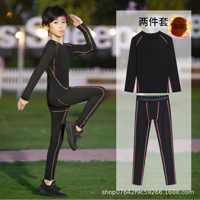 어린이 스타킹 트레이닝 의류 가을과 겨울 농구 축구 실행 긴 소매베이스 통기성 속건 피트니스 세트