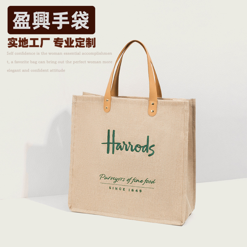 소스 공장 면 린넨 핸드백 패션 거친 린넨 쇼핑 핸드백 코팅 방수 린넨 숄더 백 여성스토어 가기