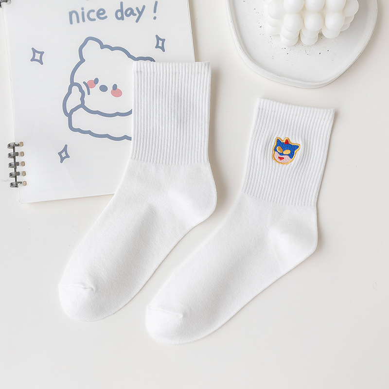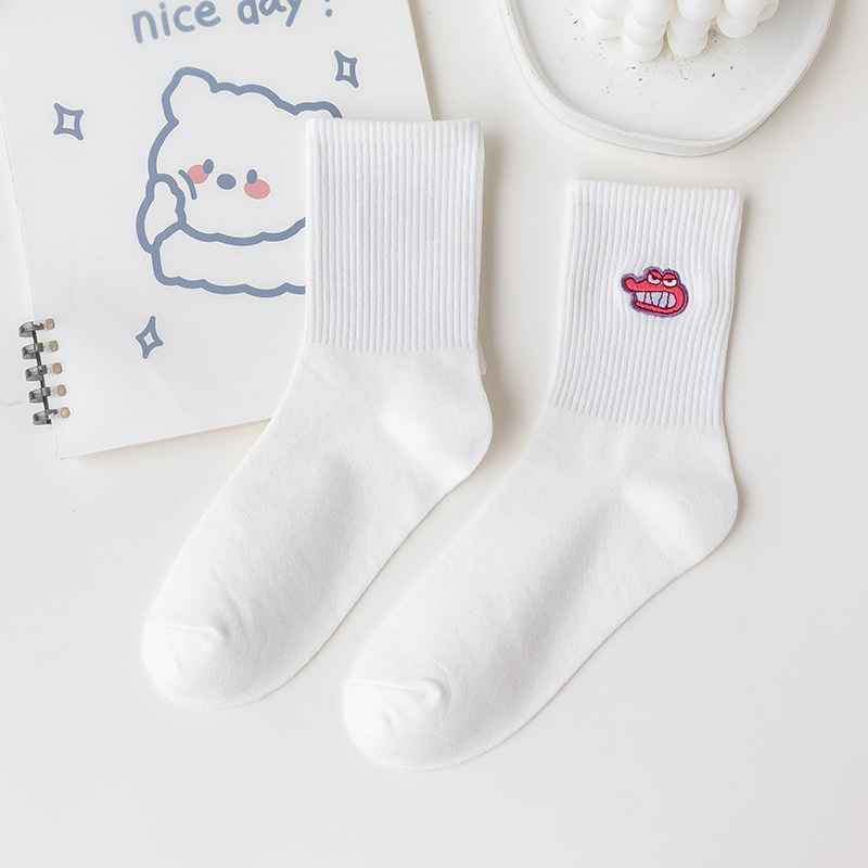 화이트 귀여운 예하라 수 놓은 여우 악어 중간 양말 여성 가을과 겨울 만화 애니메이션 스포츠 양말 면