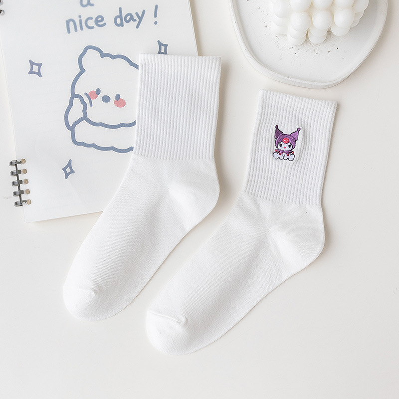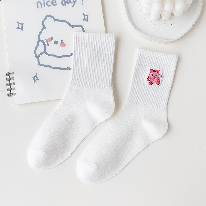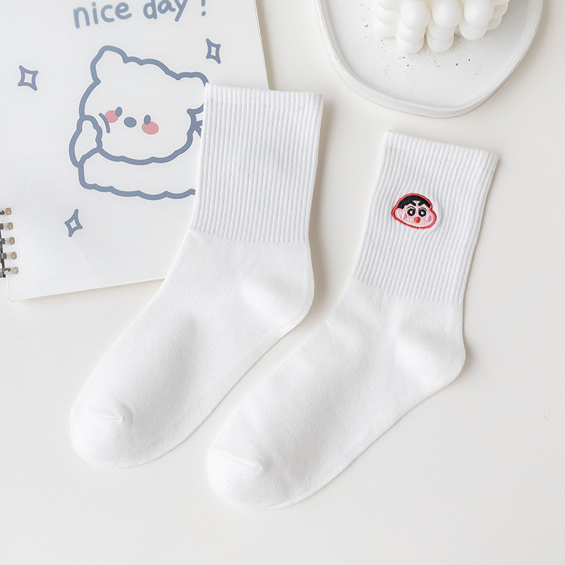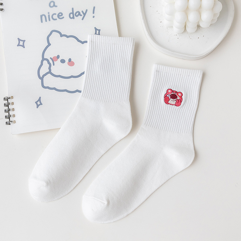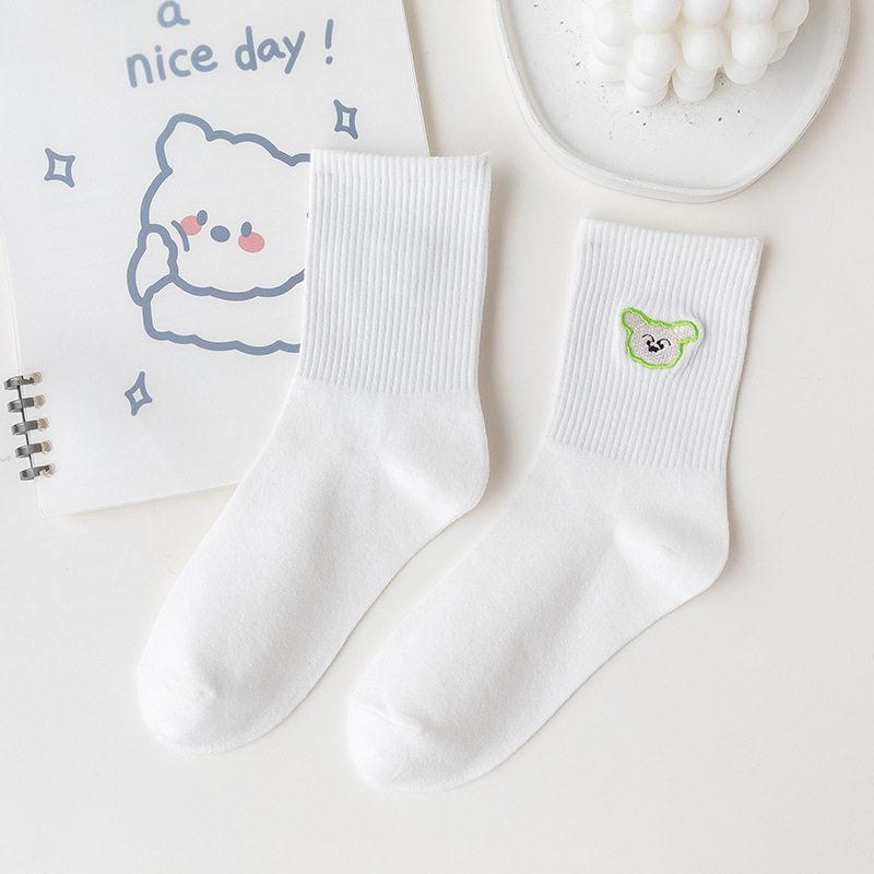 화이트 귀여운 예하라 수 놓은 여우 악어 중간 양말 여성 가을과 겨울 만화 애니메이션 스포츠 양말 면스토어 가기