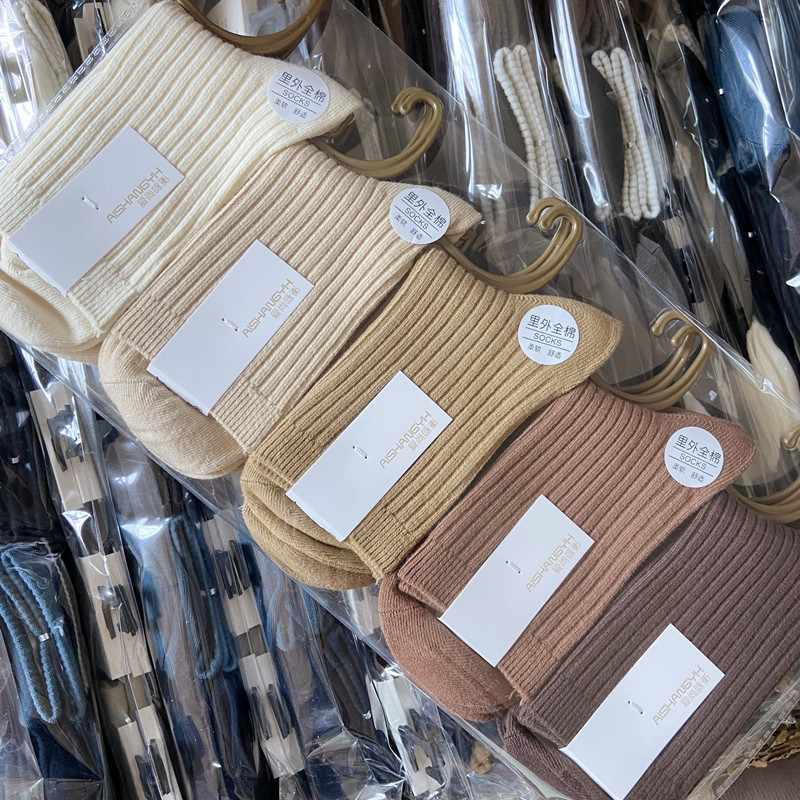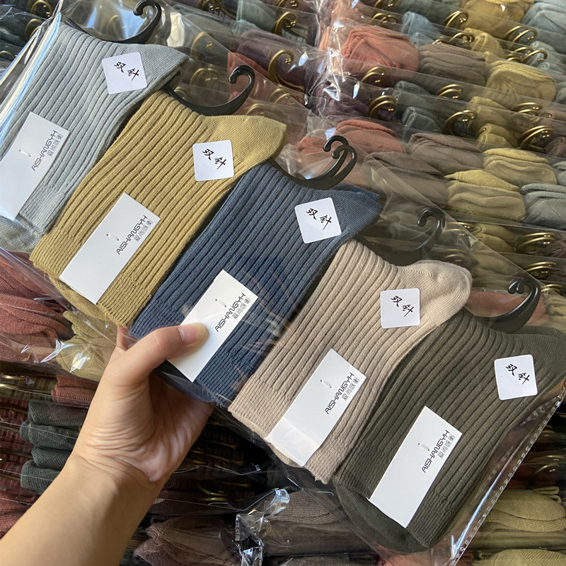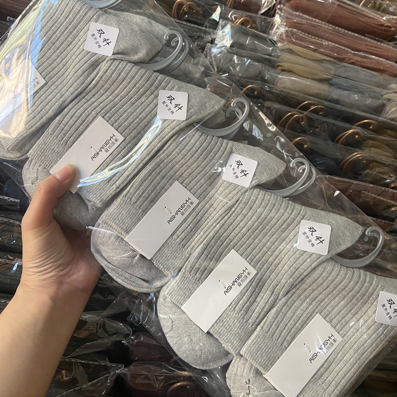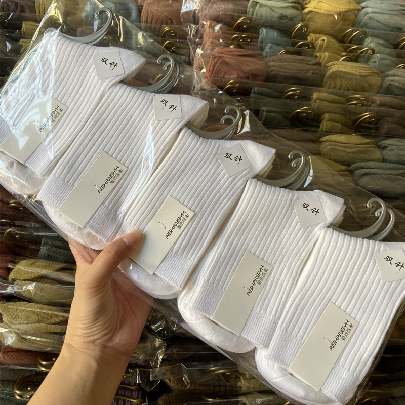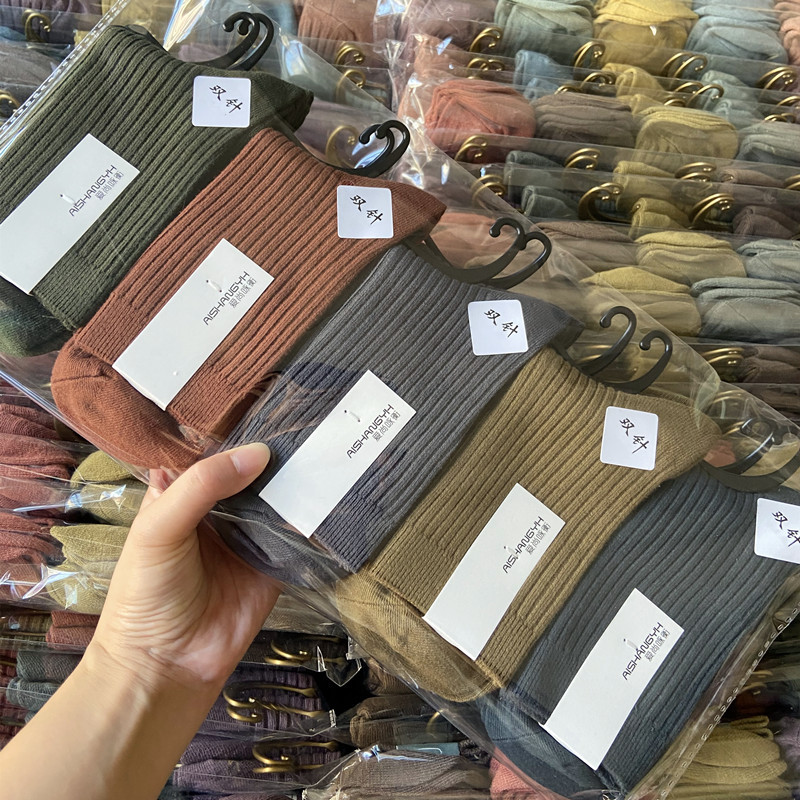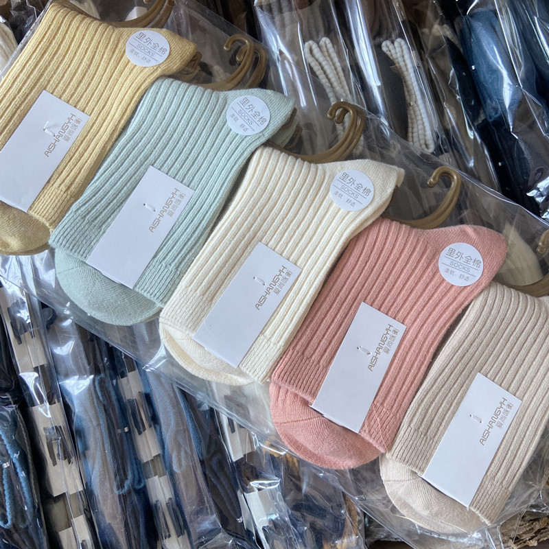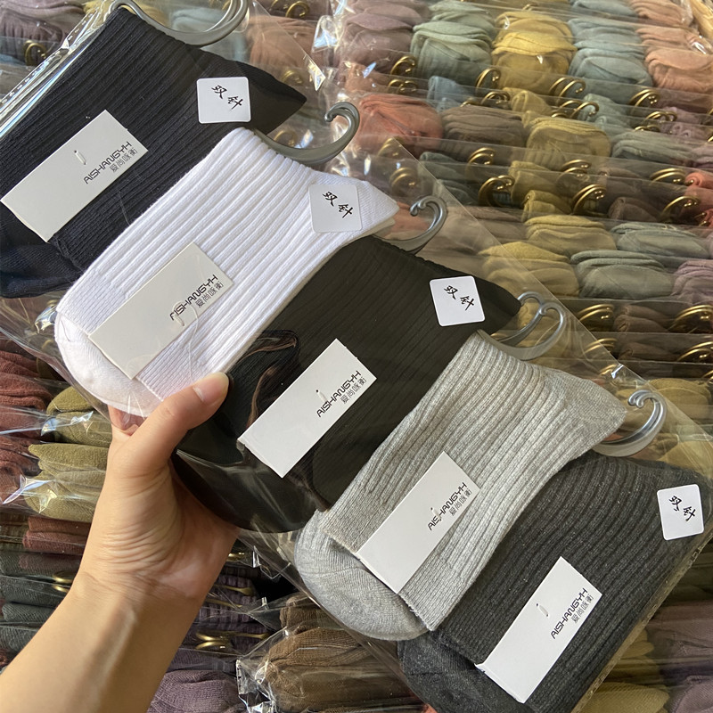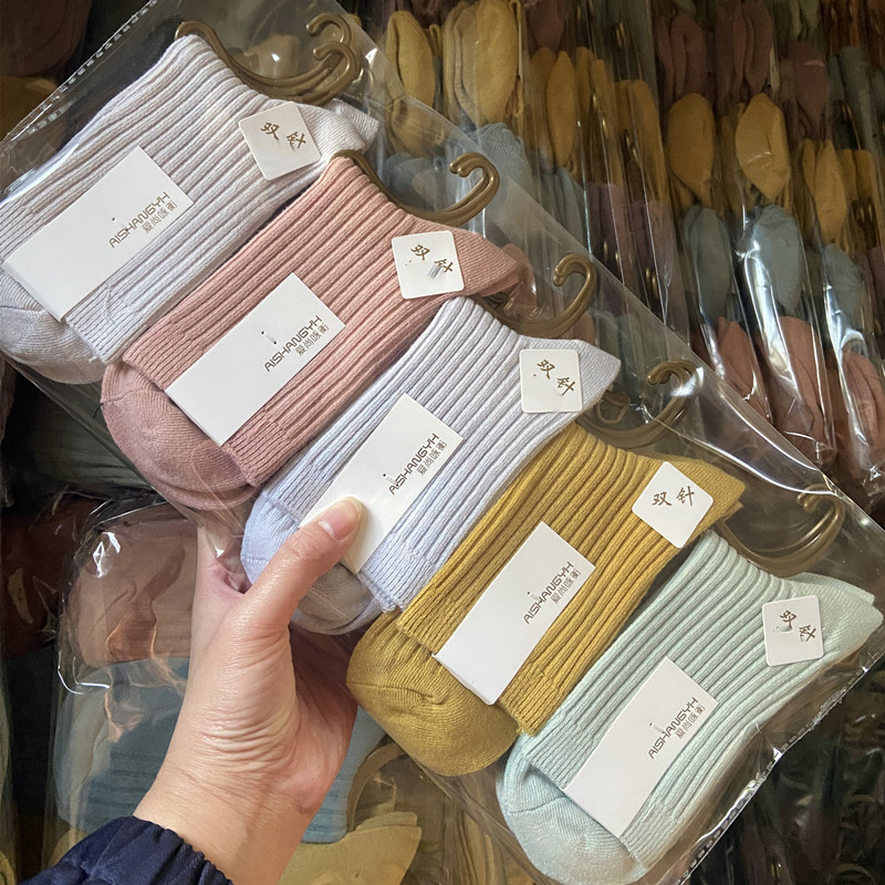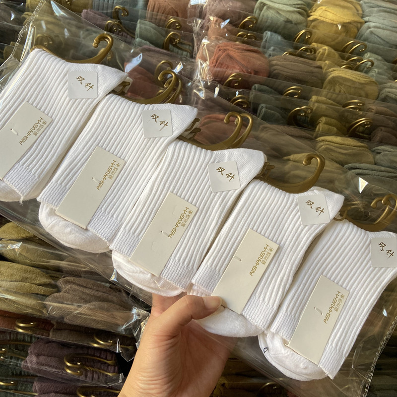 [내외는 모두 면] Liaoyuan 더블 니들 양말 아동 얇은 단색 두꺼운 숙녀 면 양말 도매스토어 가기