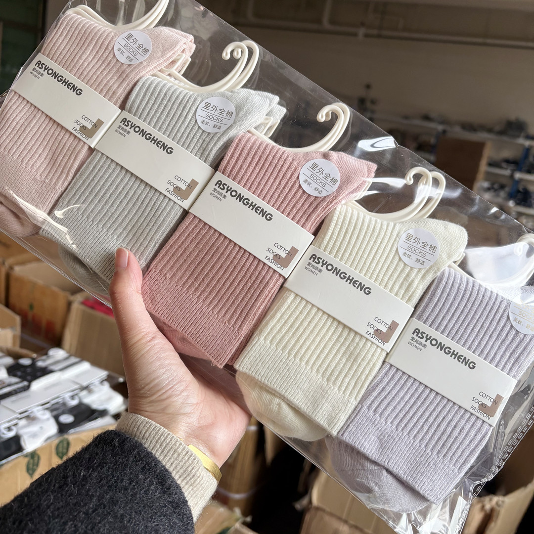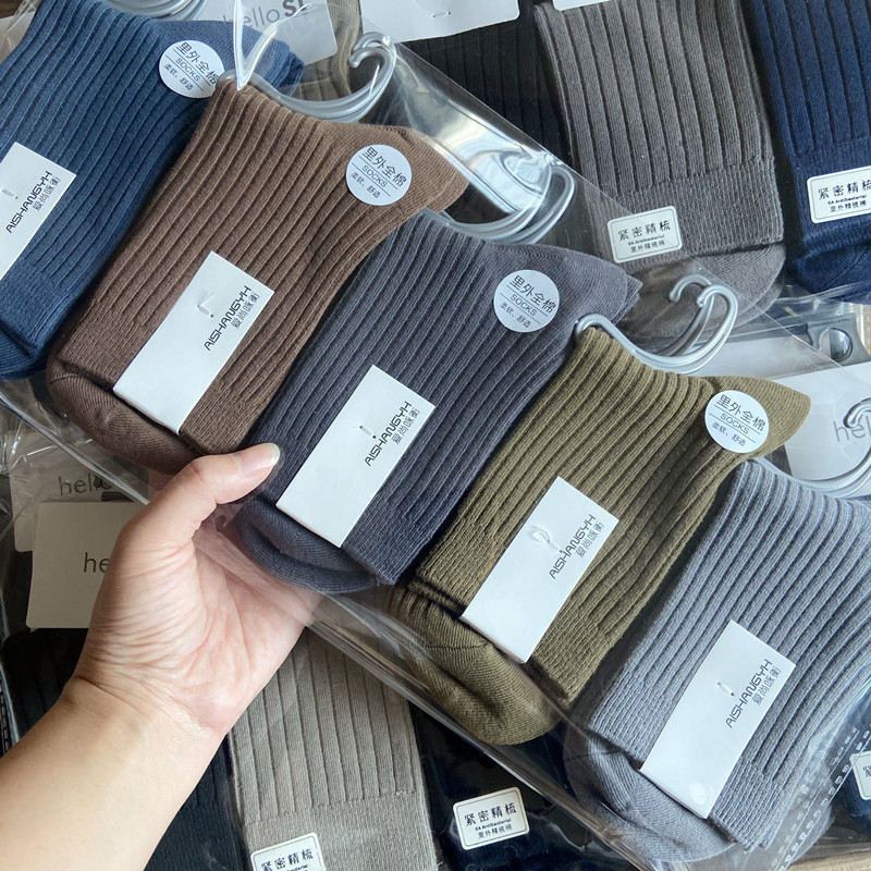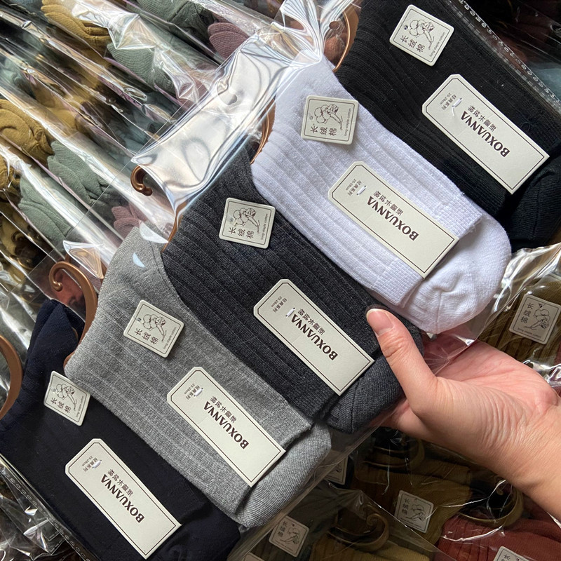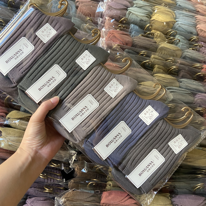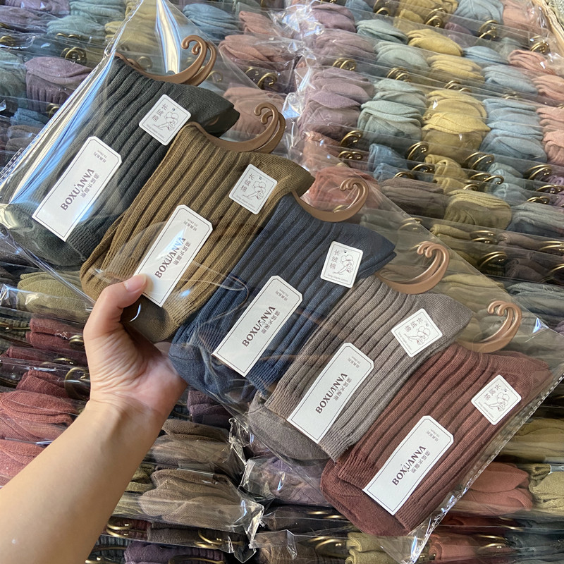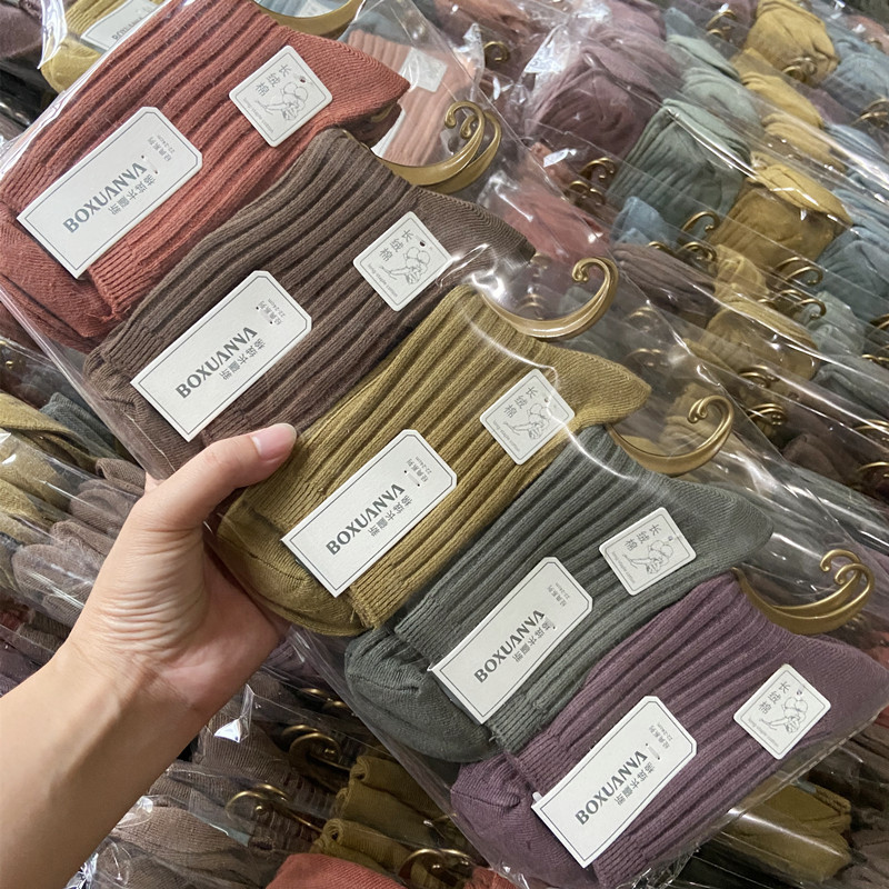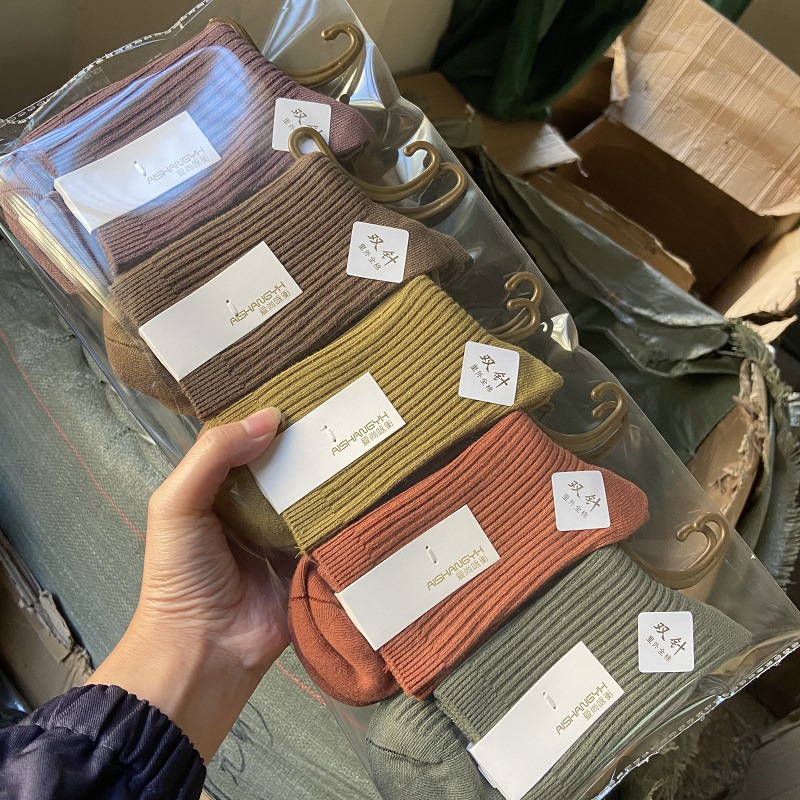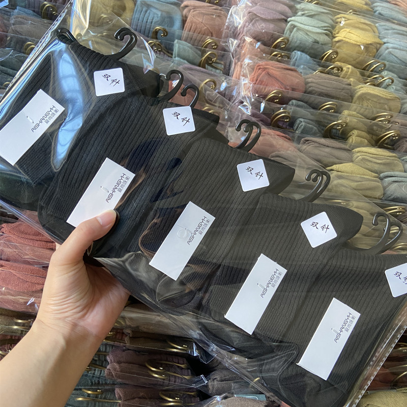 [내외는 모두 면] Liaoyuan 더블 니들 양말 아동 얇은 단색 두꺼운 숙녀 면 양말 도매스토어 가기