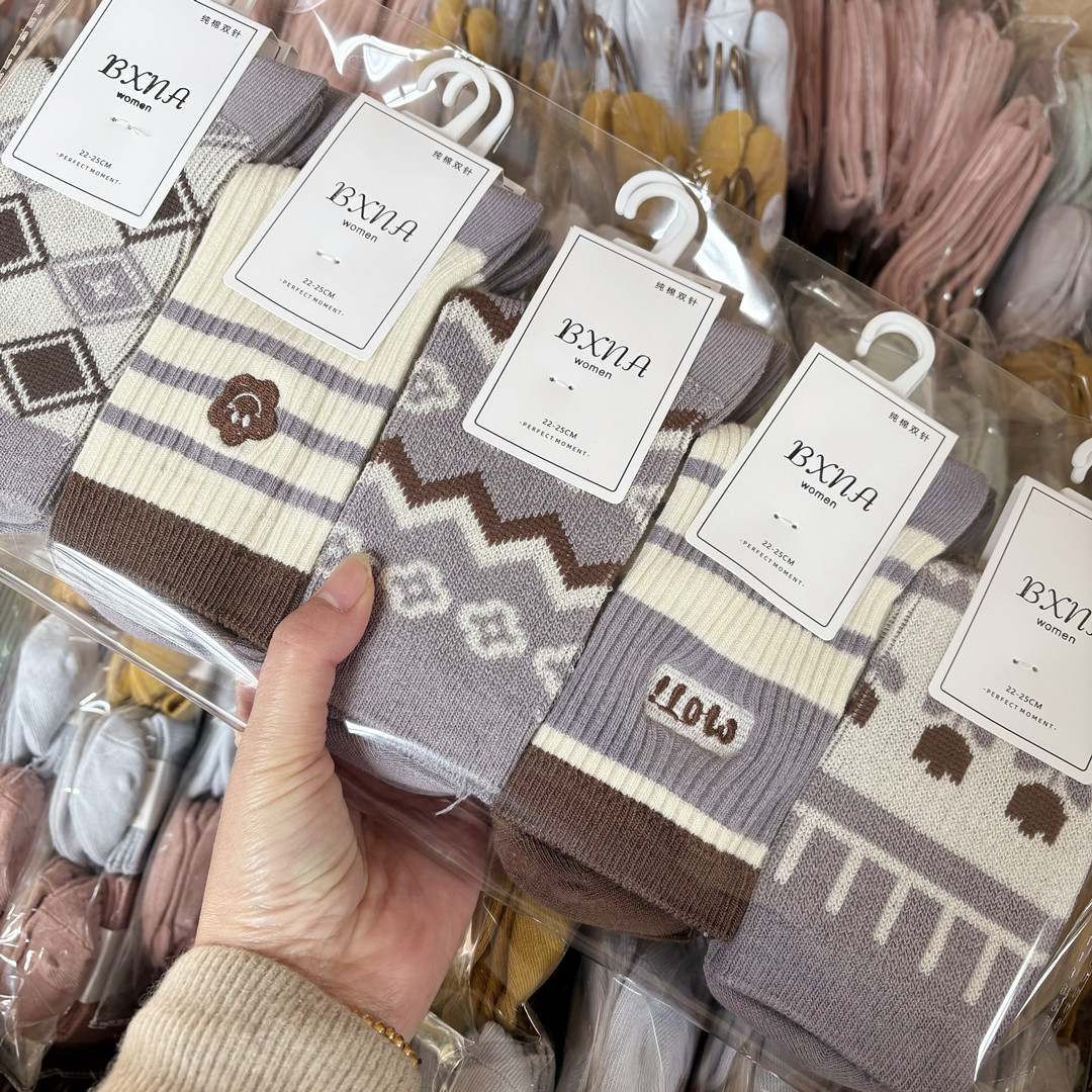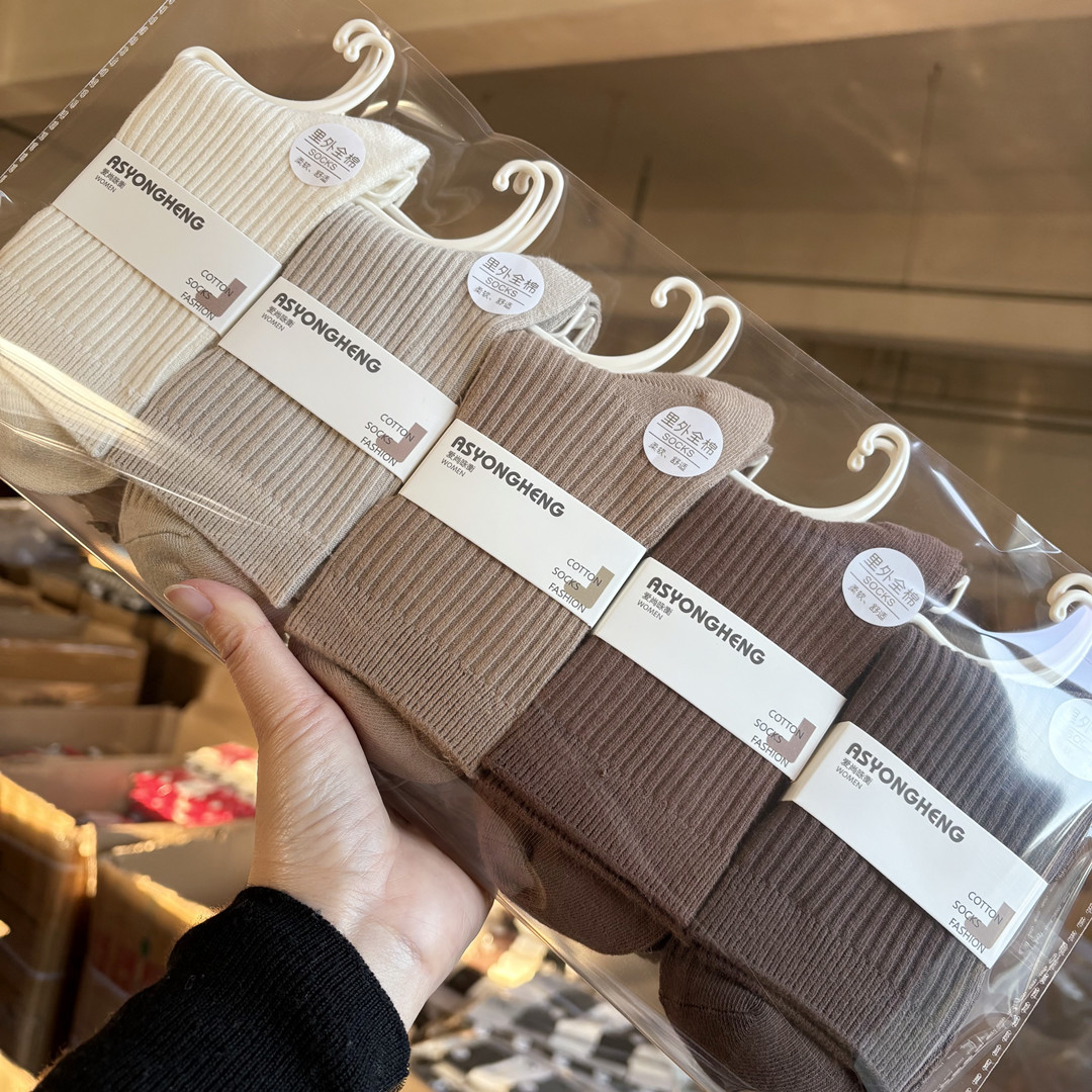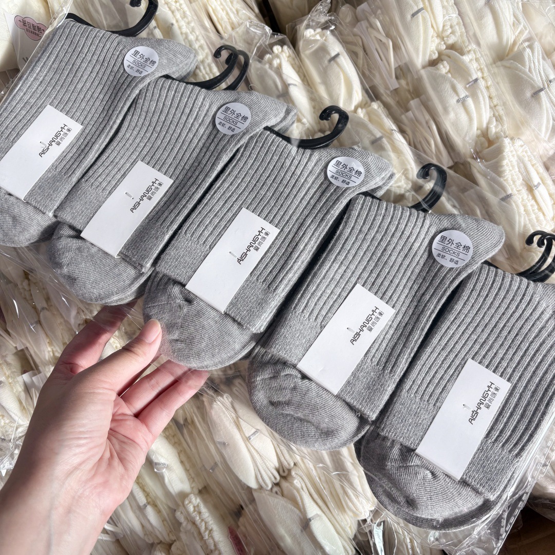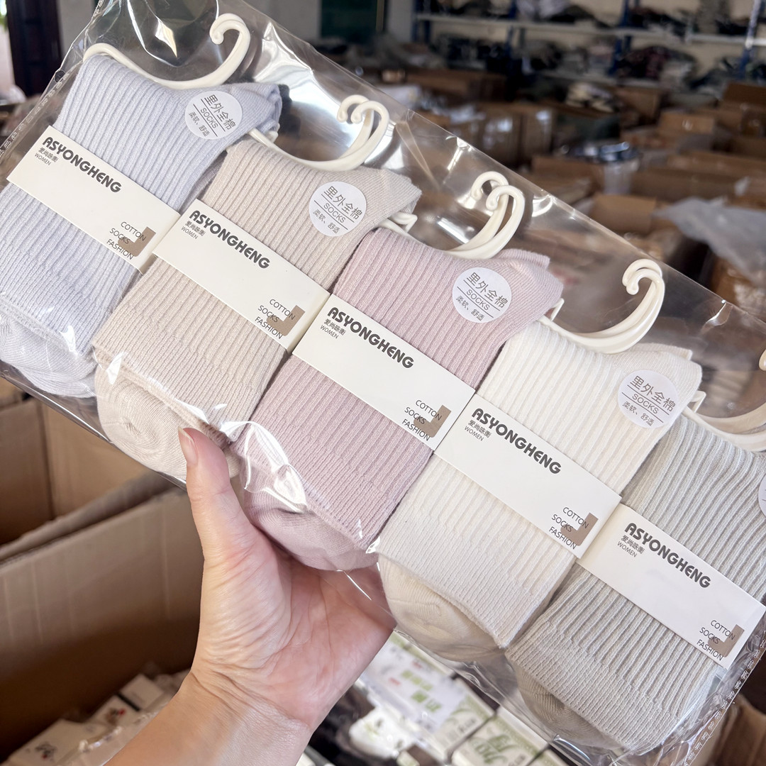 [내외는 모두 면] Liaoyuan 더블 니들 양말 아동 얇은 단색 두꺼운 숙녀 면 양말 도매스토어 가기