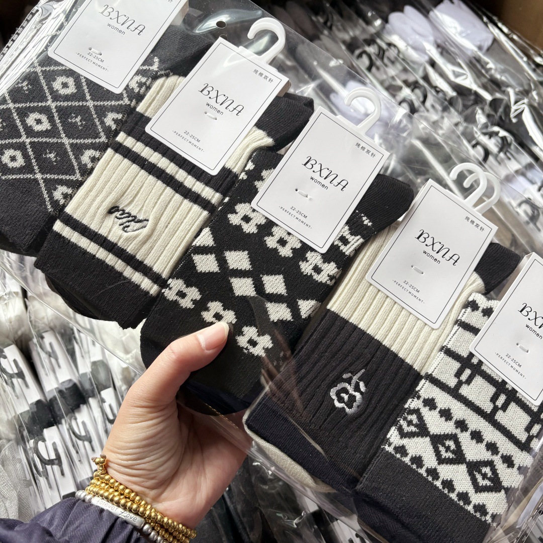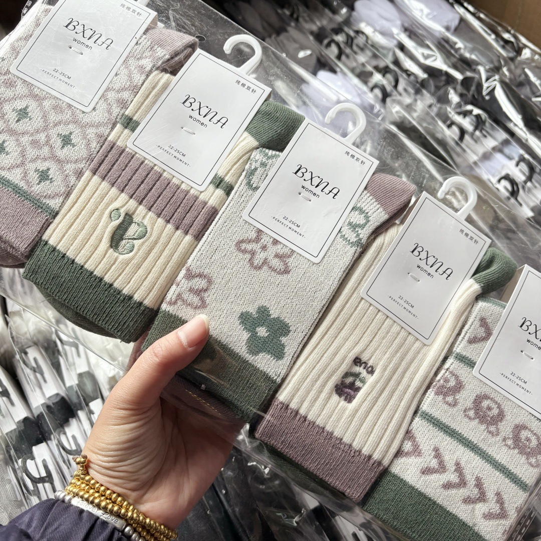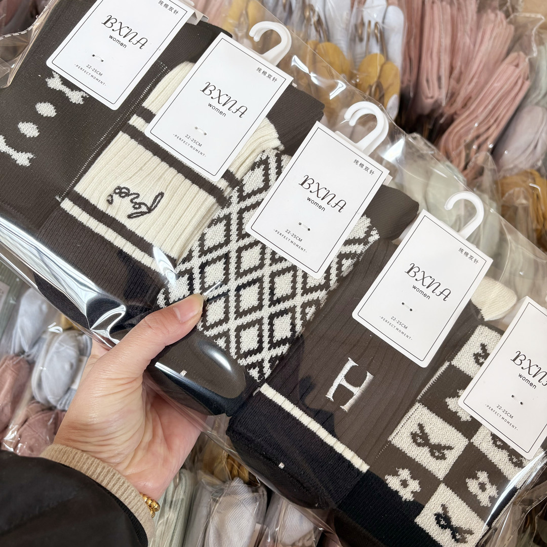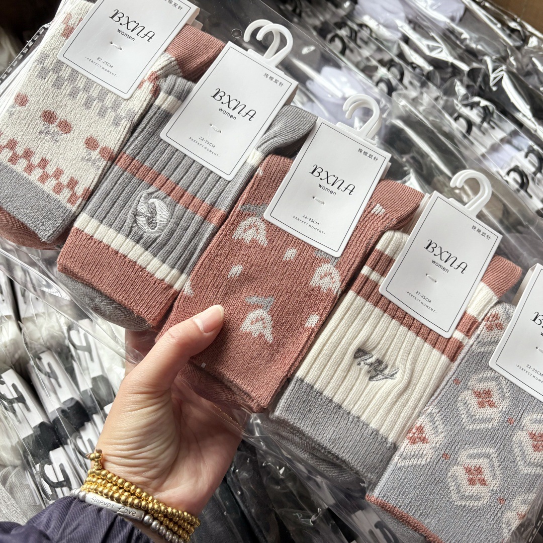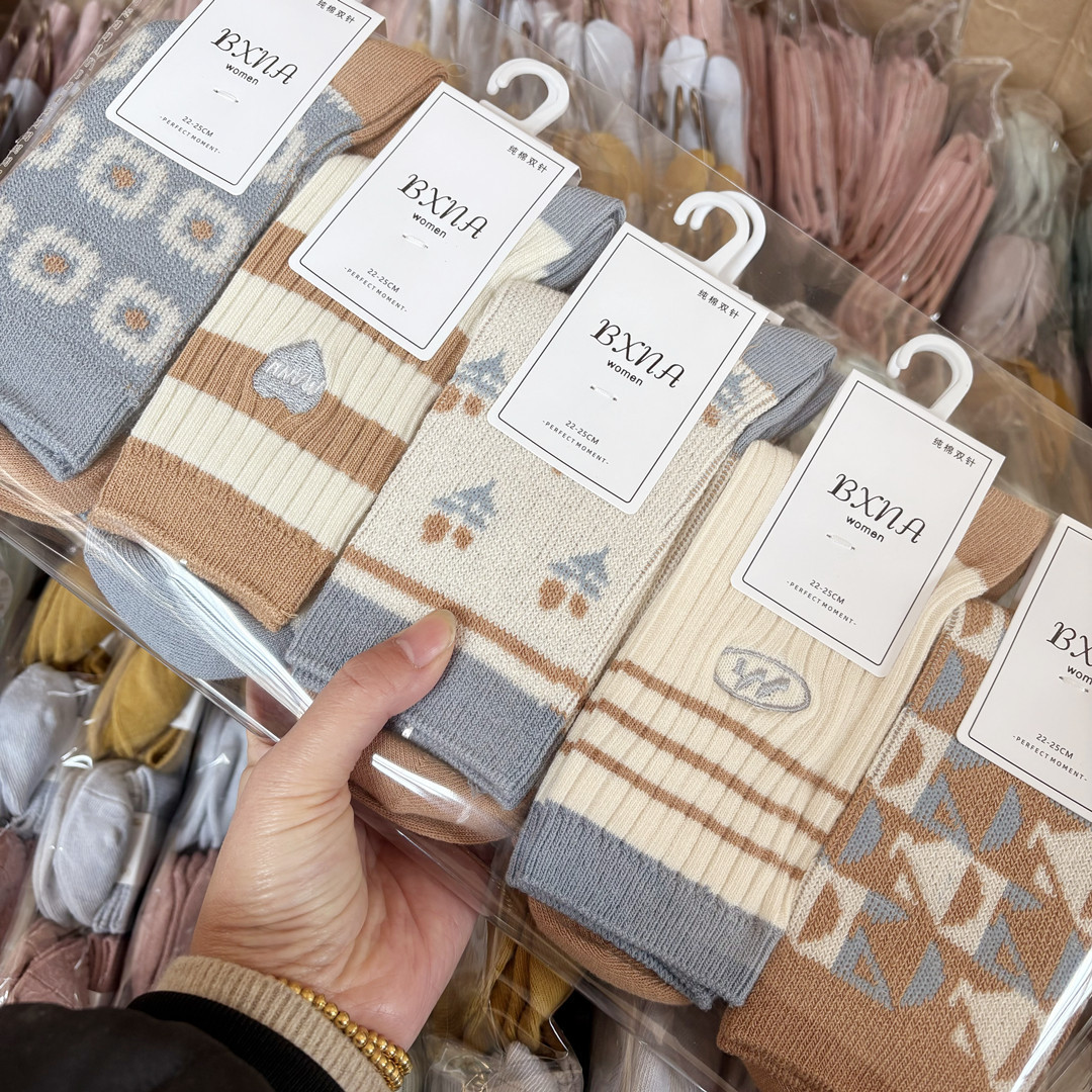 [내외는 모두 면] Liaoyuan 더블 니들 양말 아동 얇은 단색 두꺼운 숙녀 면 양말 도매스토어 가기