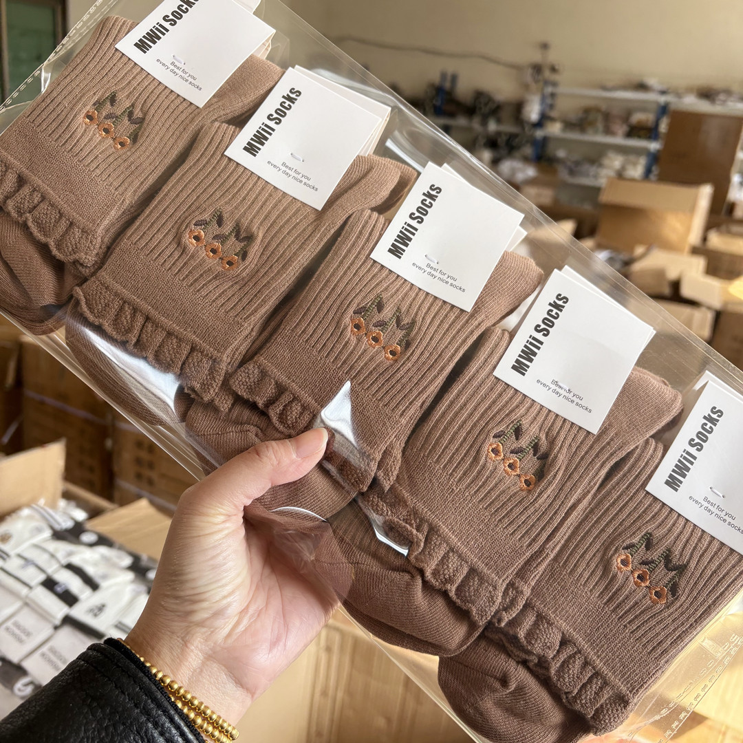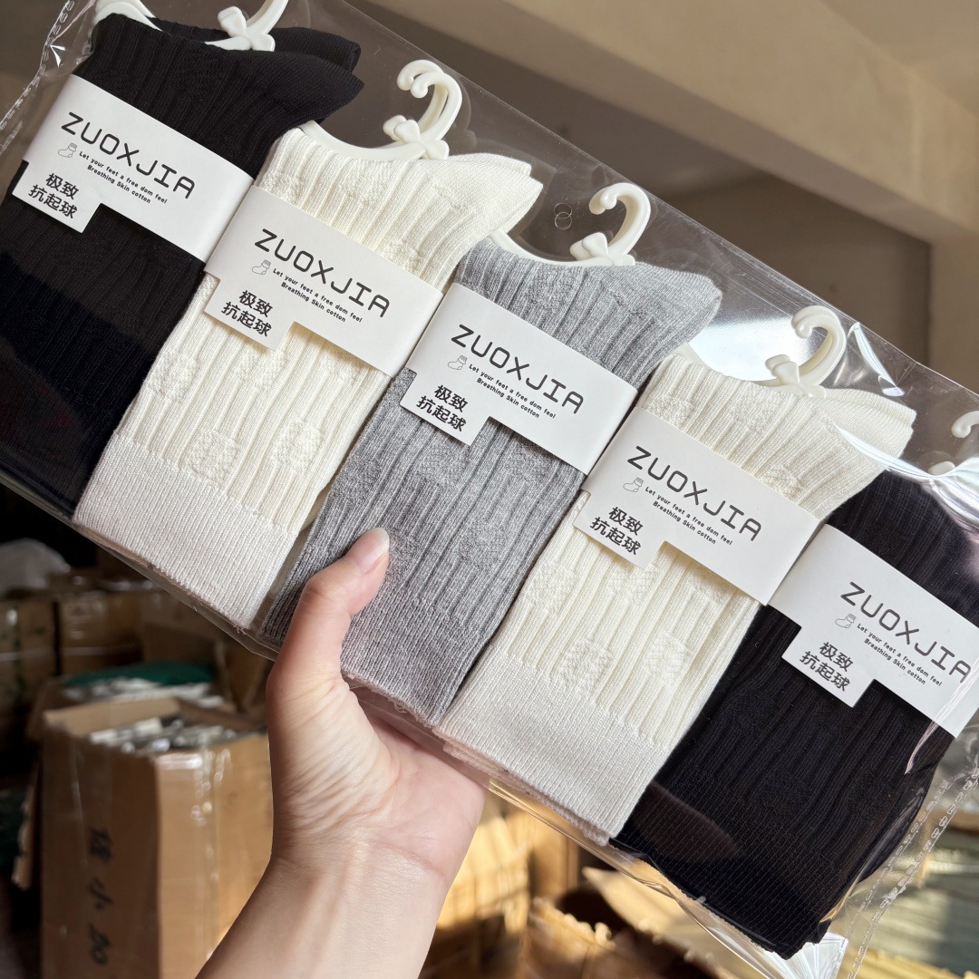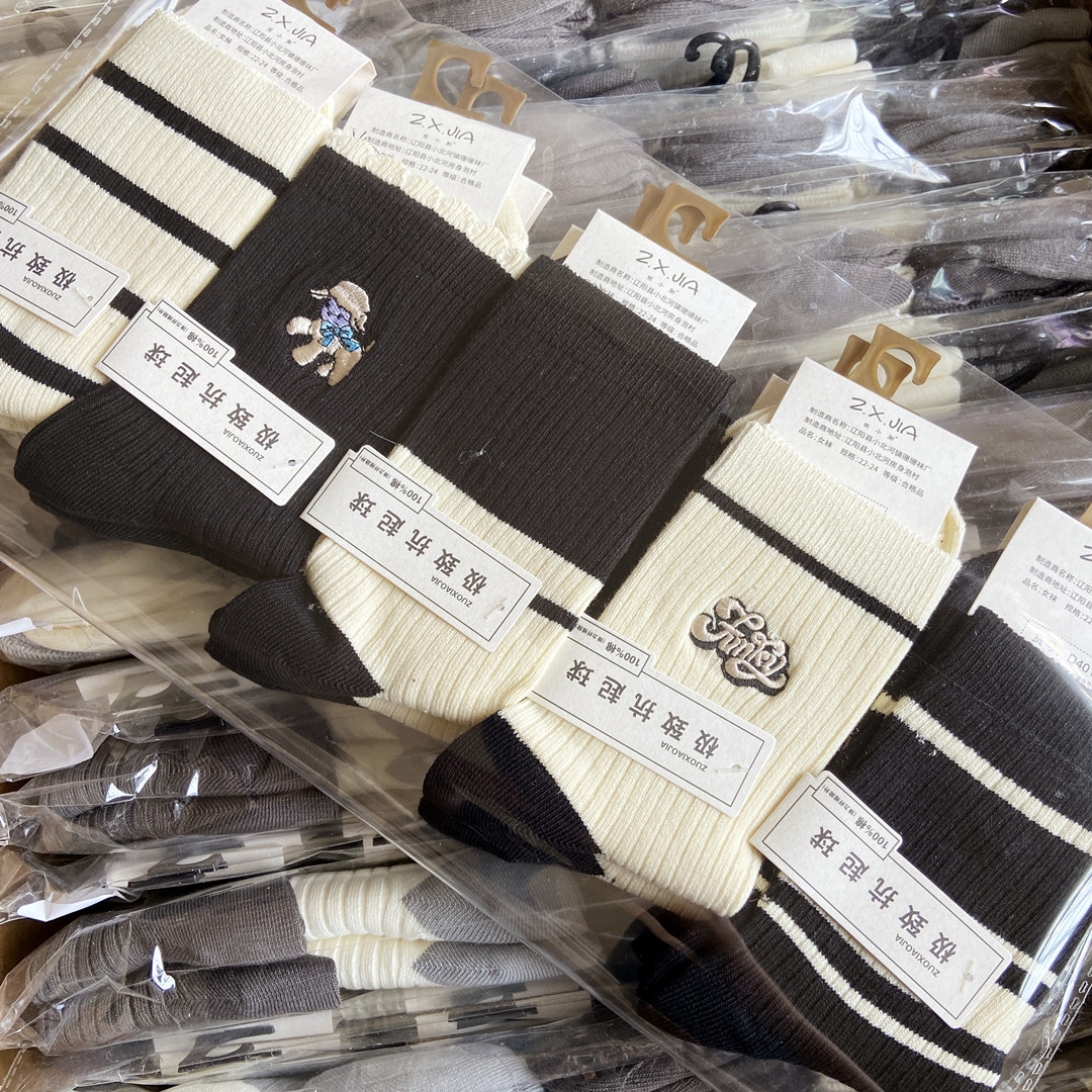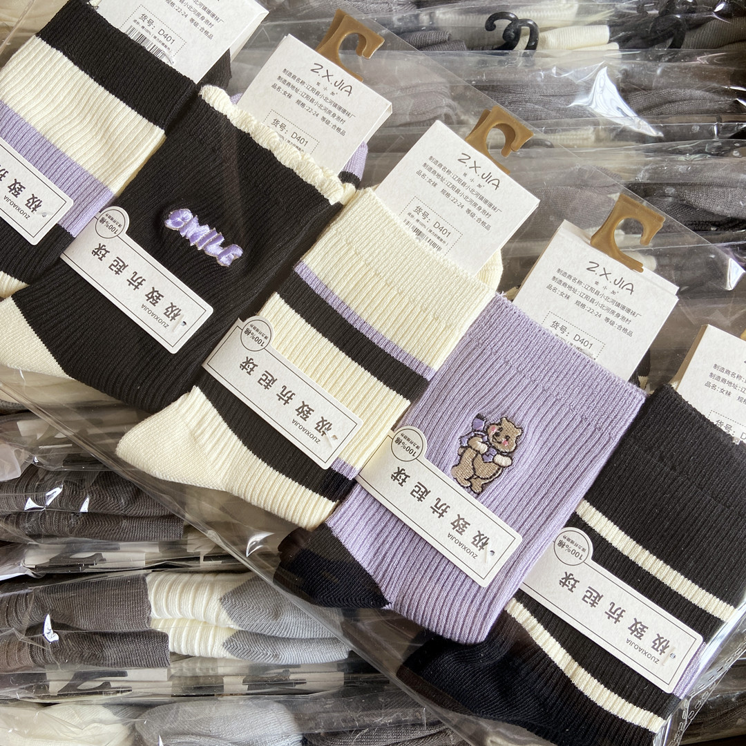 [내외는 모두 면] Liaoyuan 더블 니들 양말 아동 얇은 단색 두꺼운 숙녀 면 양말 도매
