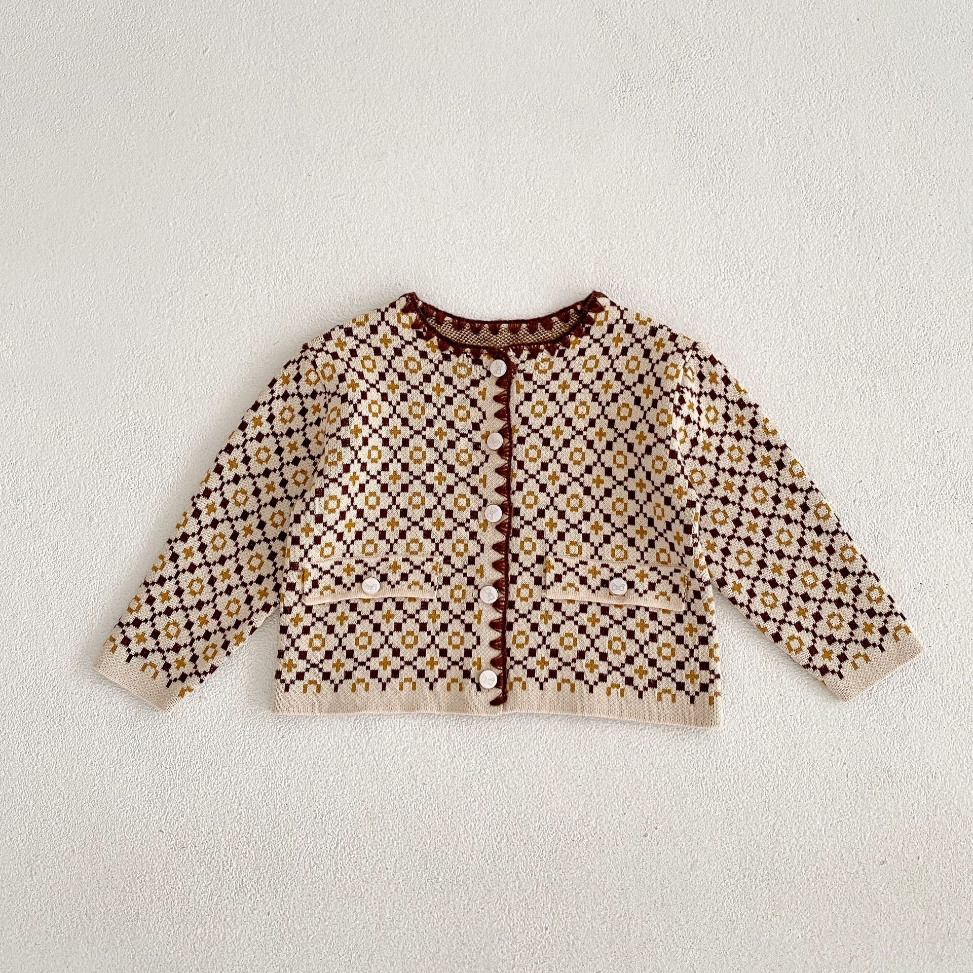 2025 봄, 가을 의류 유아 및 어린이 소녀 베이비 니트 스웨터 재킷 + 패턴 바지 정장스토어 가기