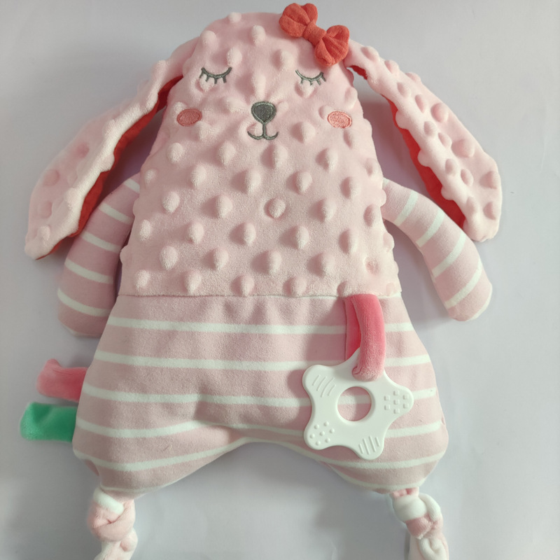 婴儿安抚巾豆豆标签可入口哄睡玩偶宝宝早教安抚公仔卡通玩偶批发