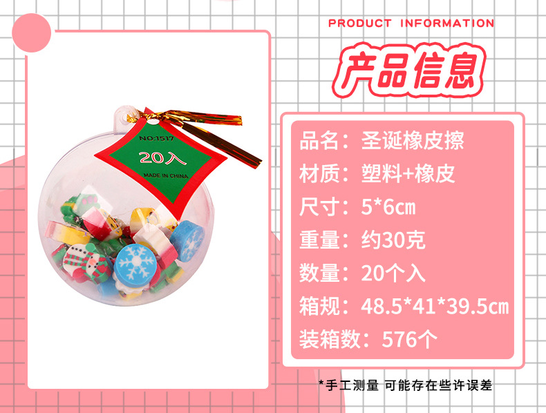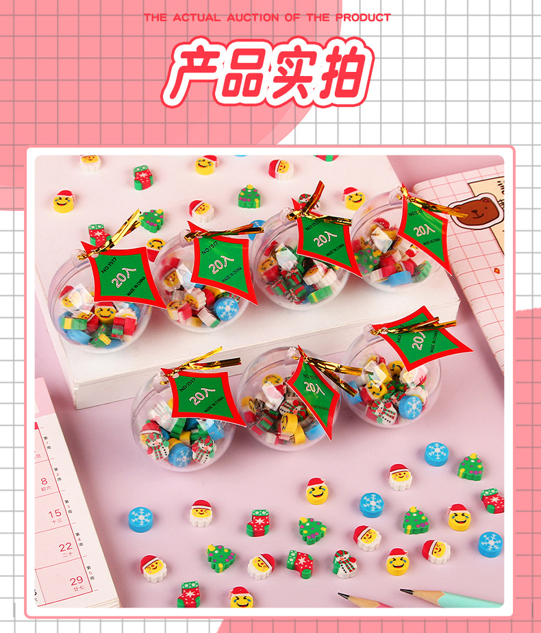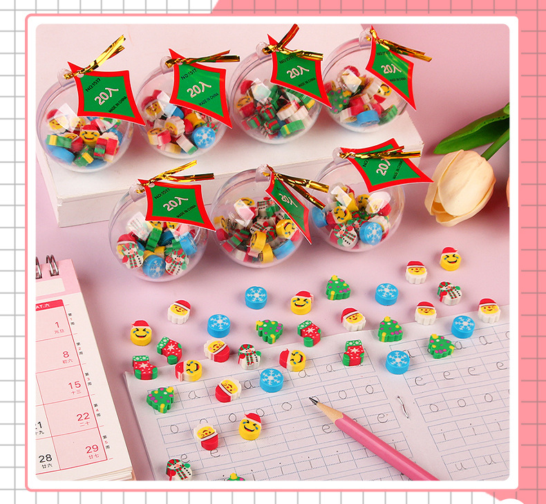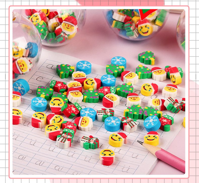 만화 귀여운 크리스마스 고무 공 크리스마스 트리 크리스탈 지우개 장식 학생 크리스마스 선물 상품 도매스토어 가기